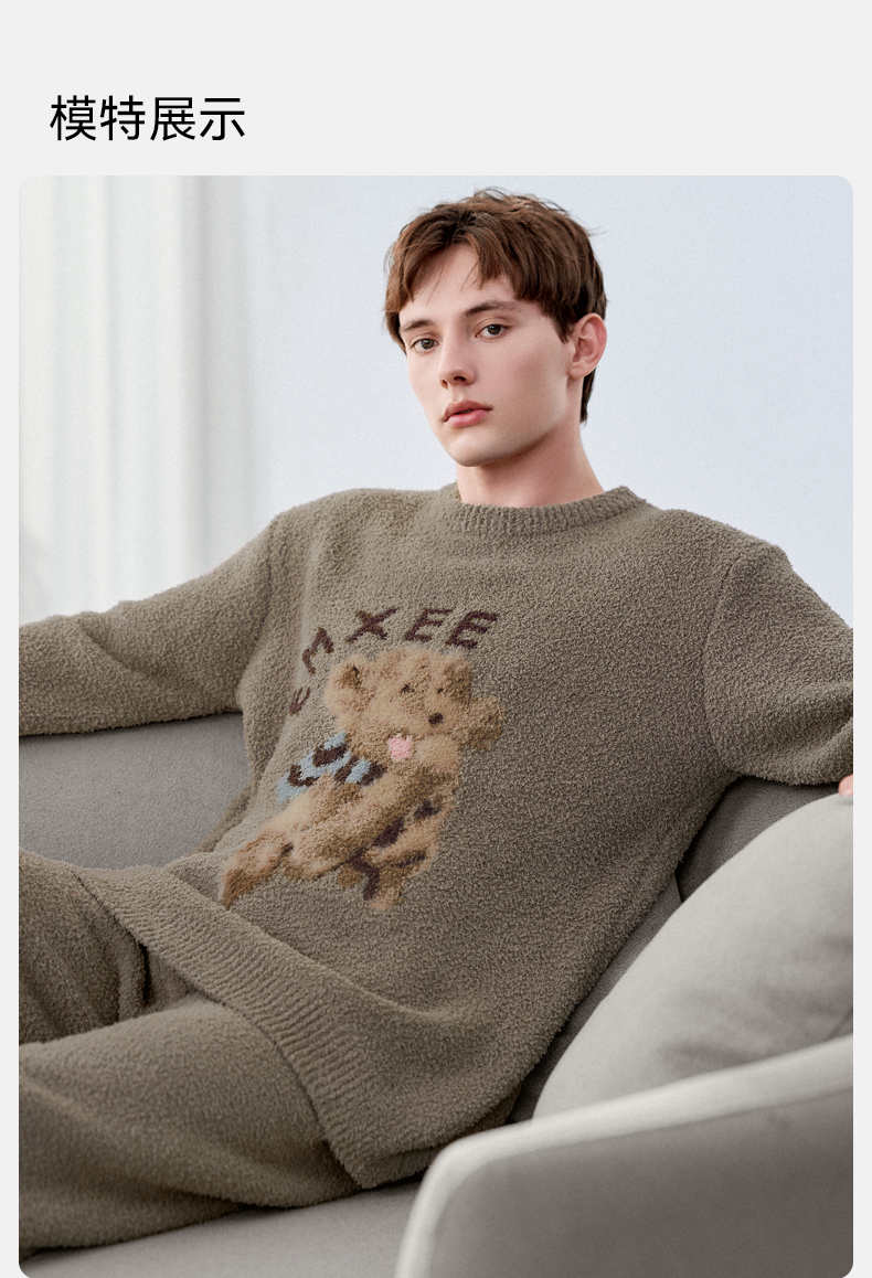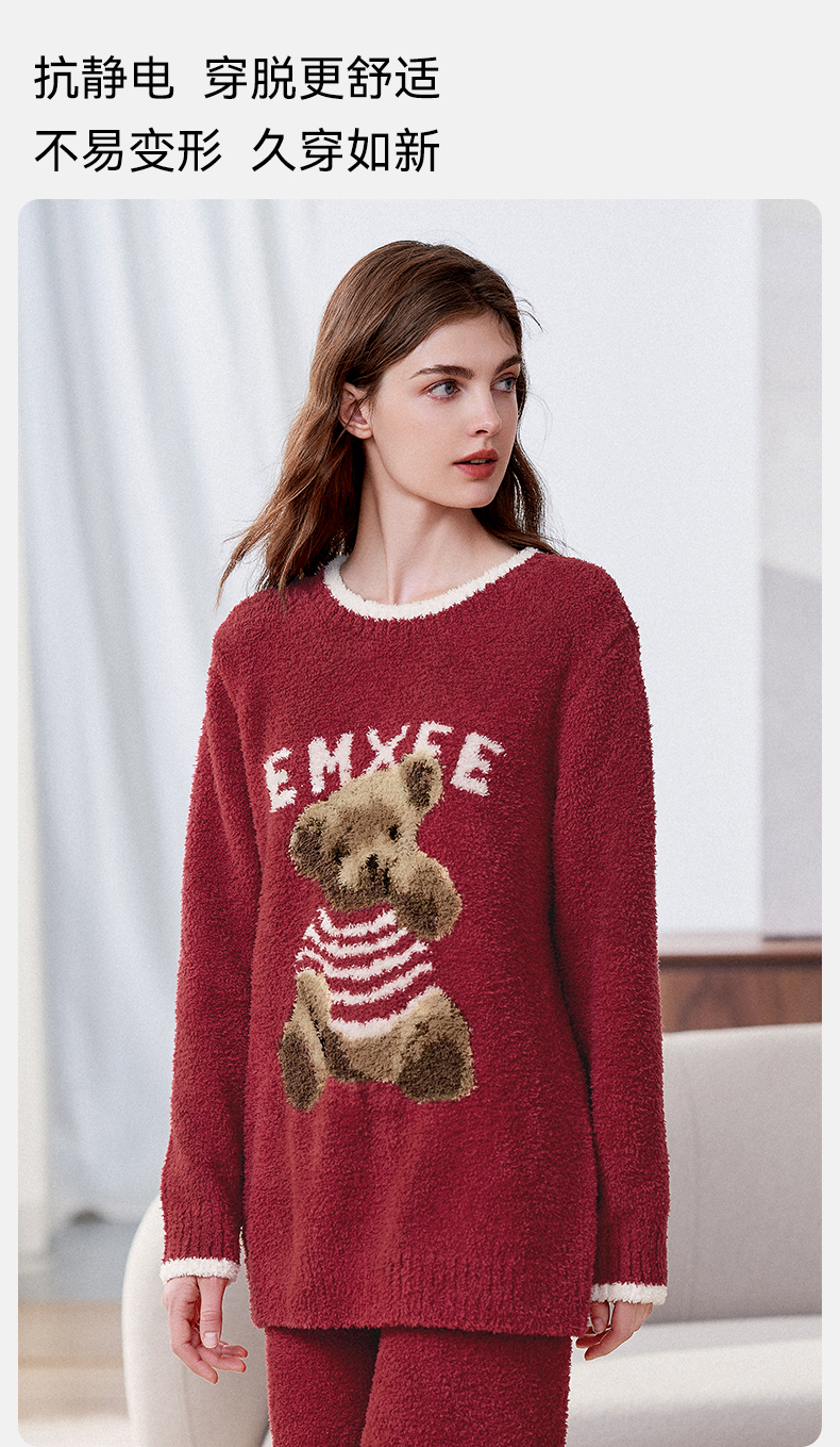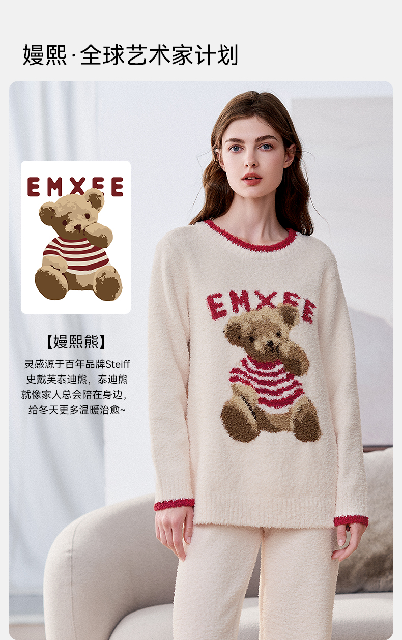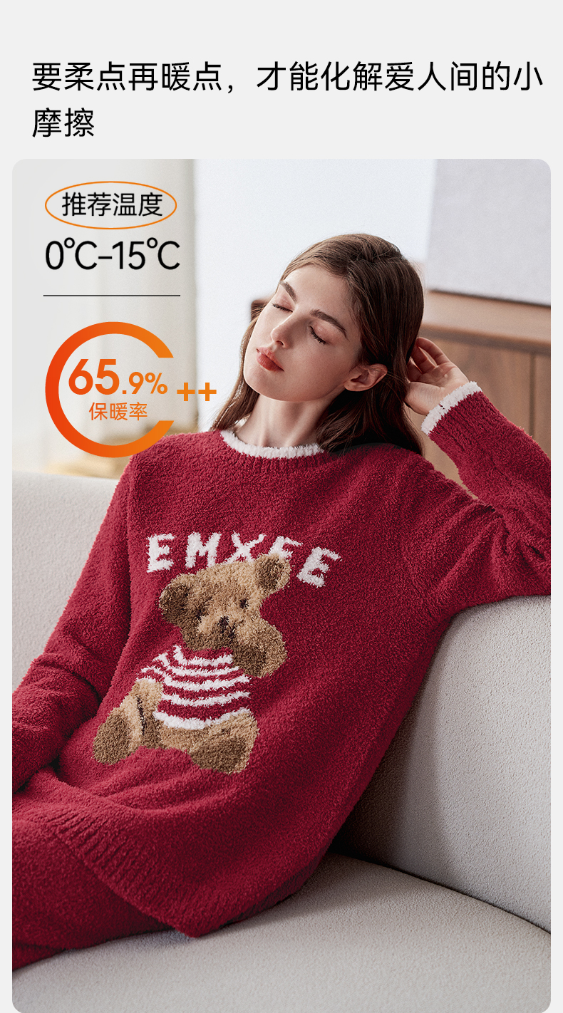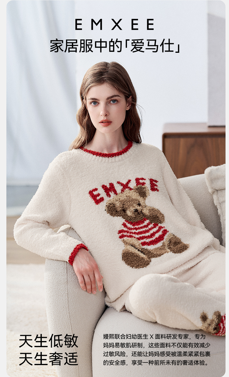 【家居服专场】嫚熙秋冬季小熊半边绒女士睡衣小羊绒女款加厚加绒家居服2024新款