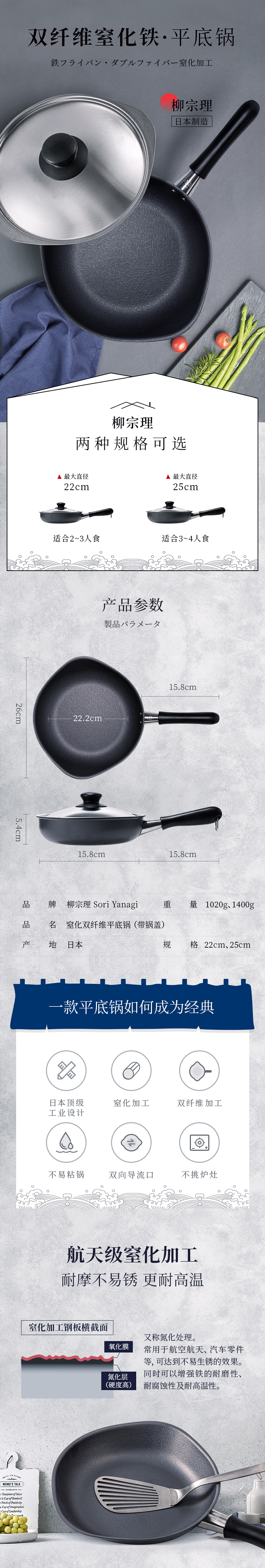 【样品清仓特惠,无货退款】柳宗理日本进口窒化双纤维铁锅平底锅熟铁锅