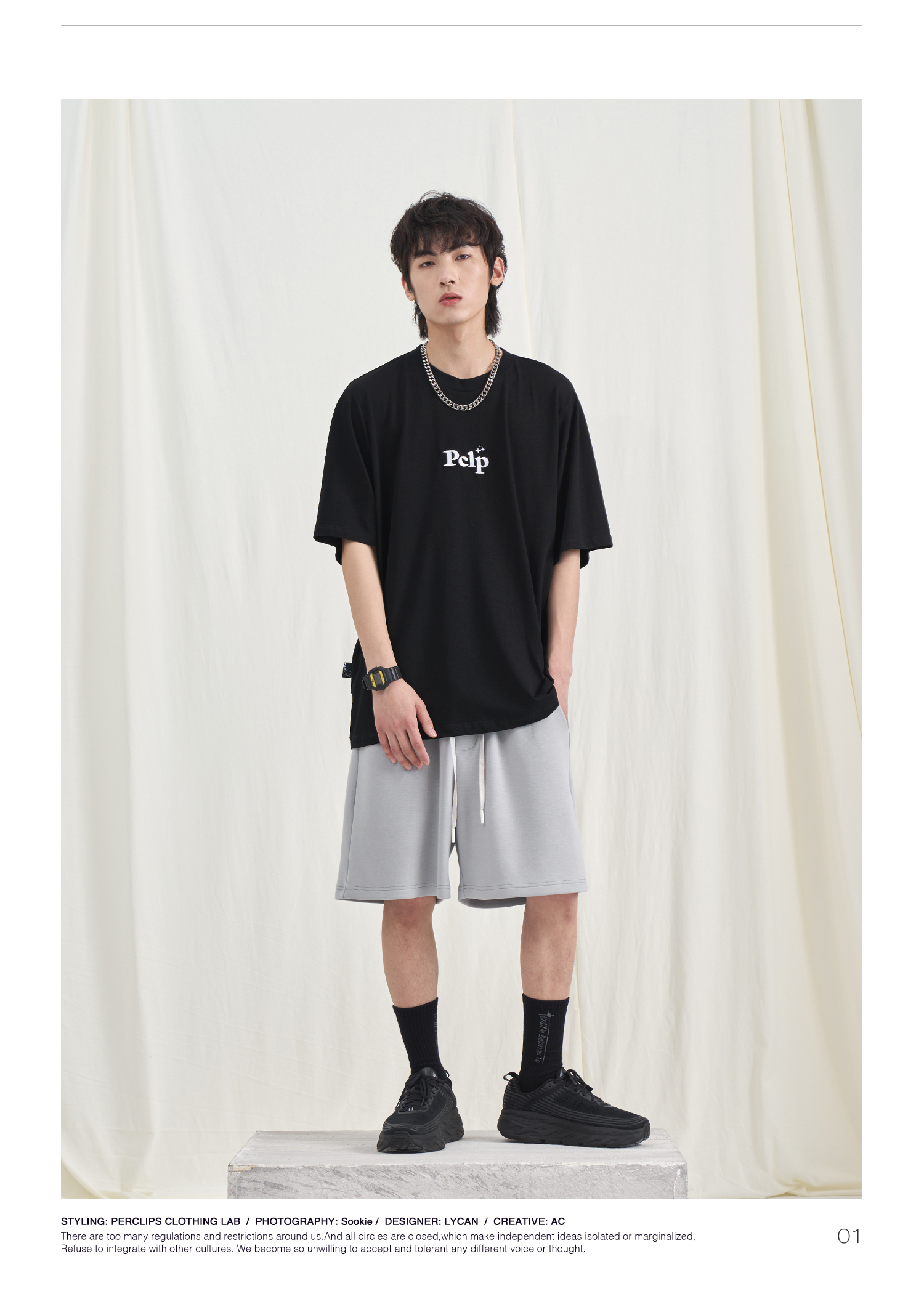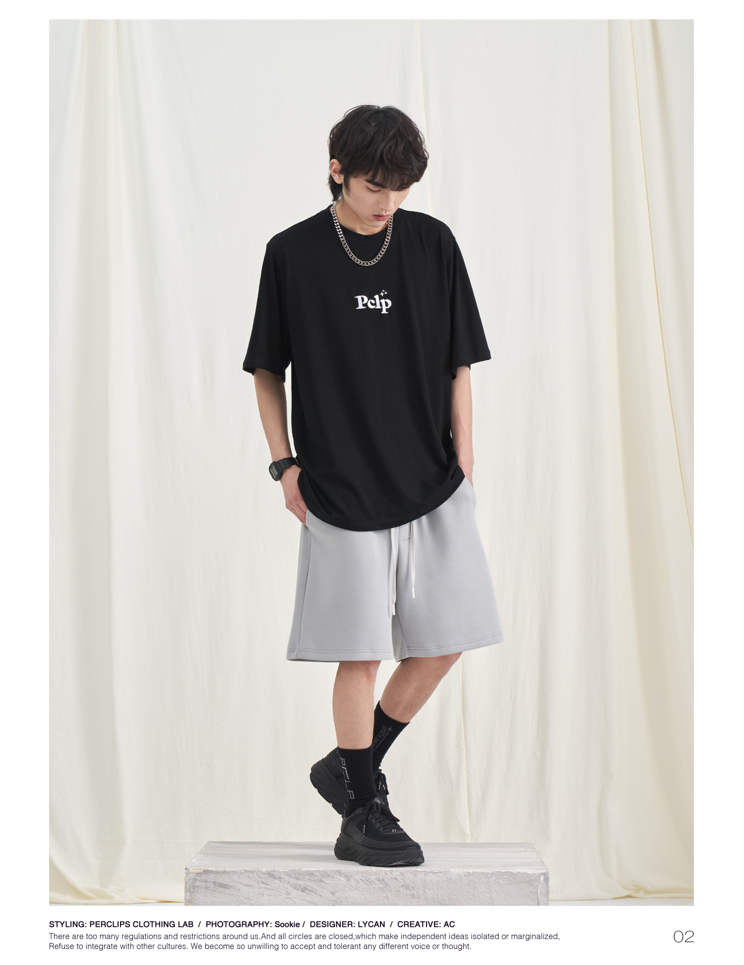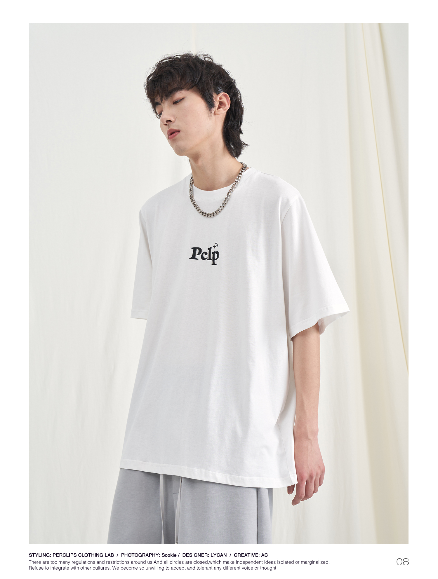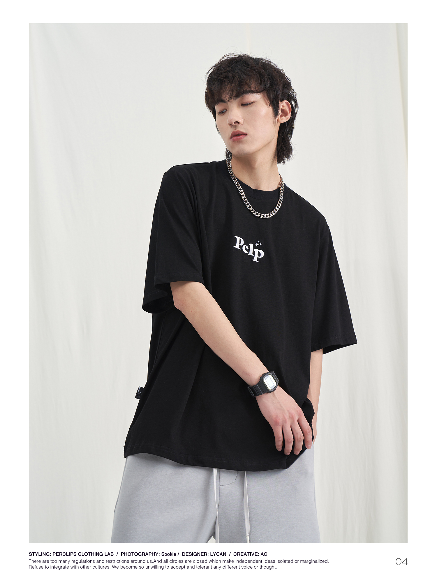 PCLP(PERCLIPS) 夏季圆领短袖t恤男简约百搭国潮牌宽松纯色半袖黑
