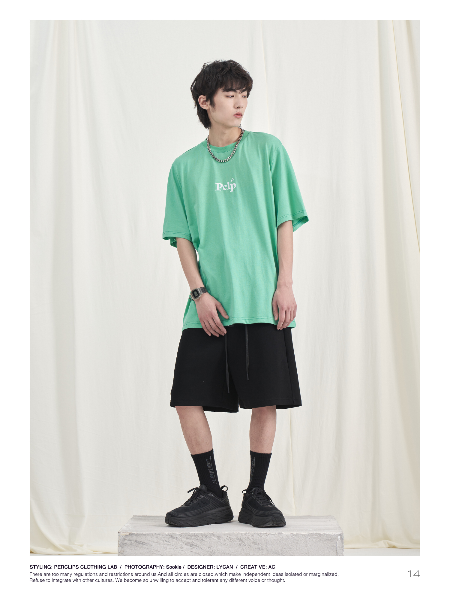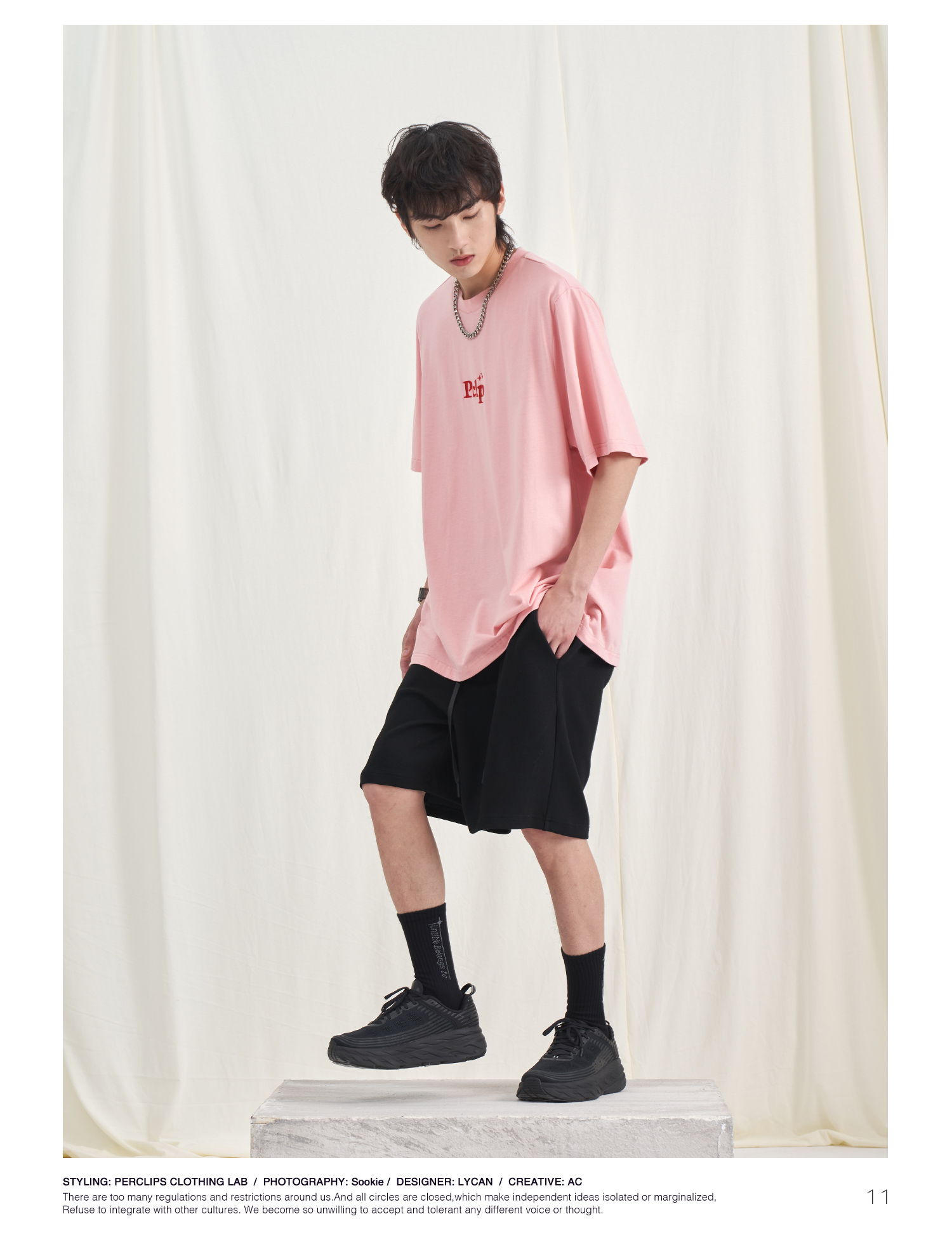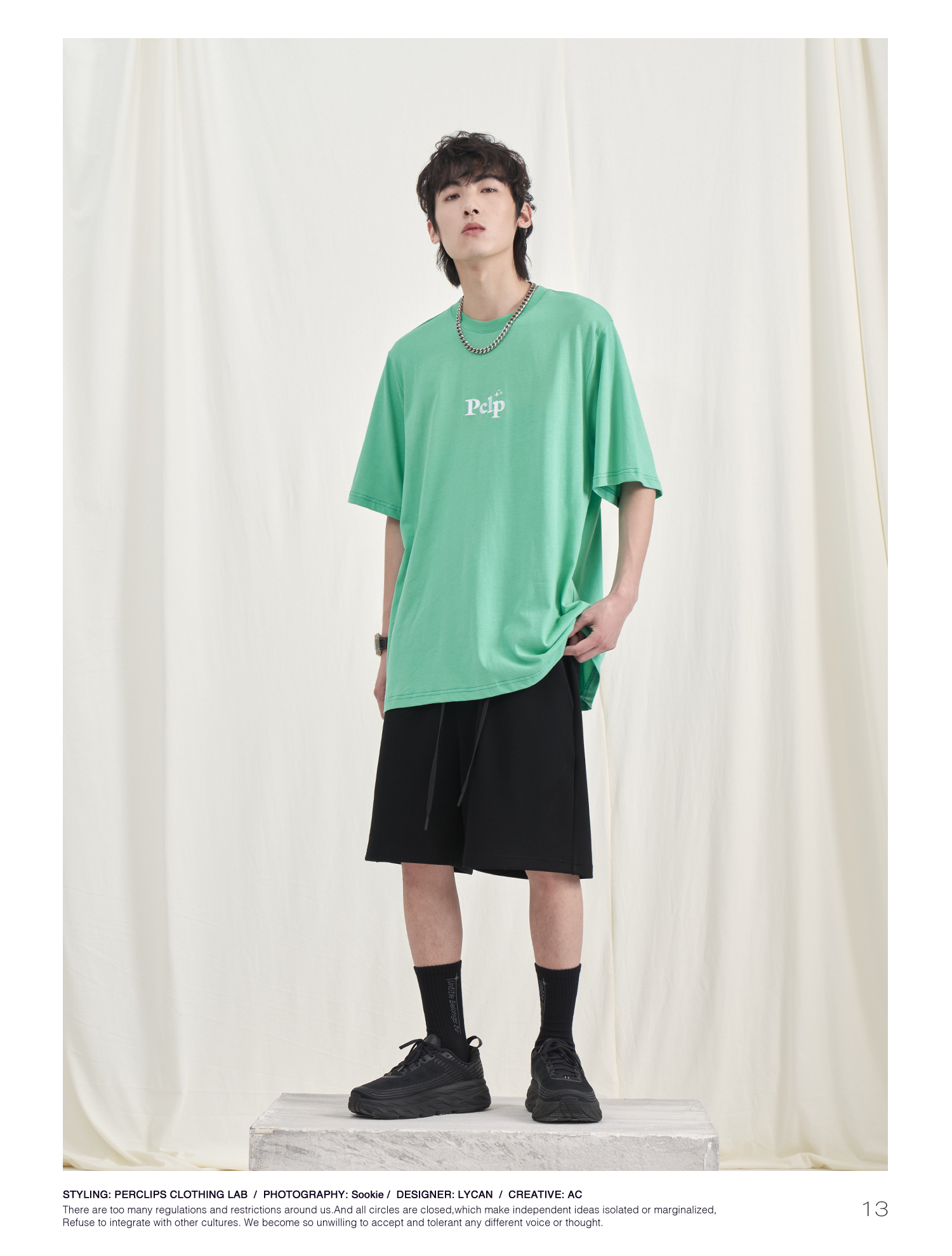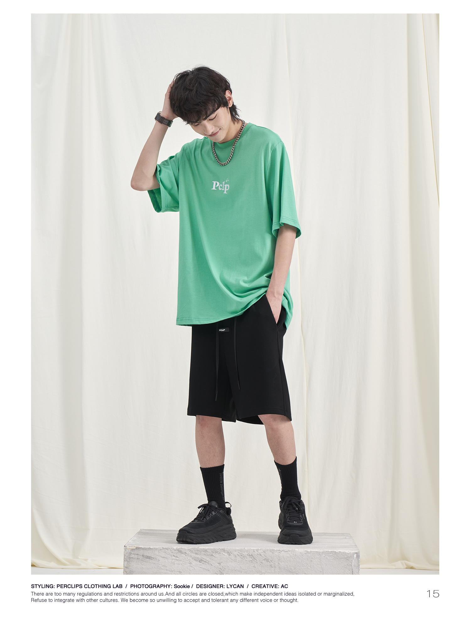 PCLP(PERCLIPS) 夏季圆领短袖t恤男简约百搭国潮牌宽松纯色半袖黑