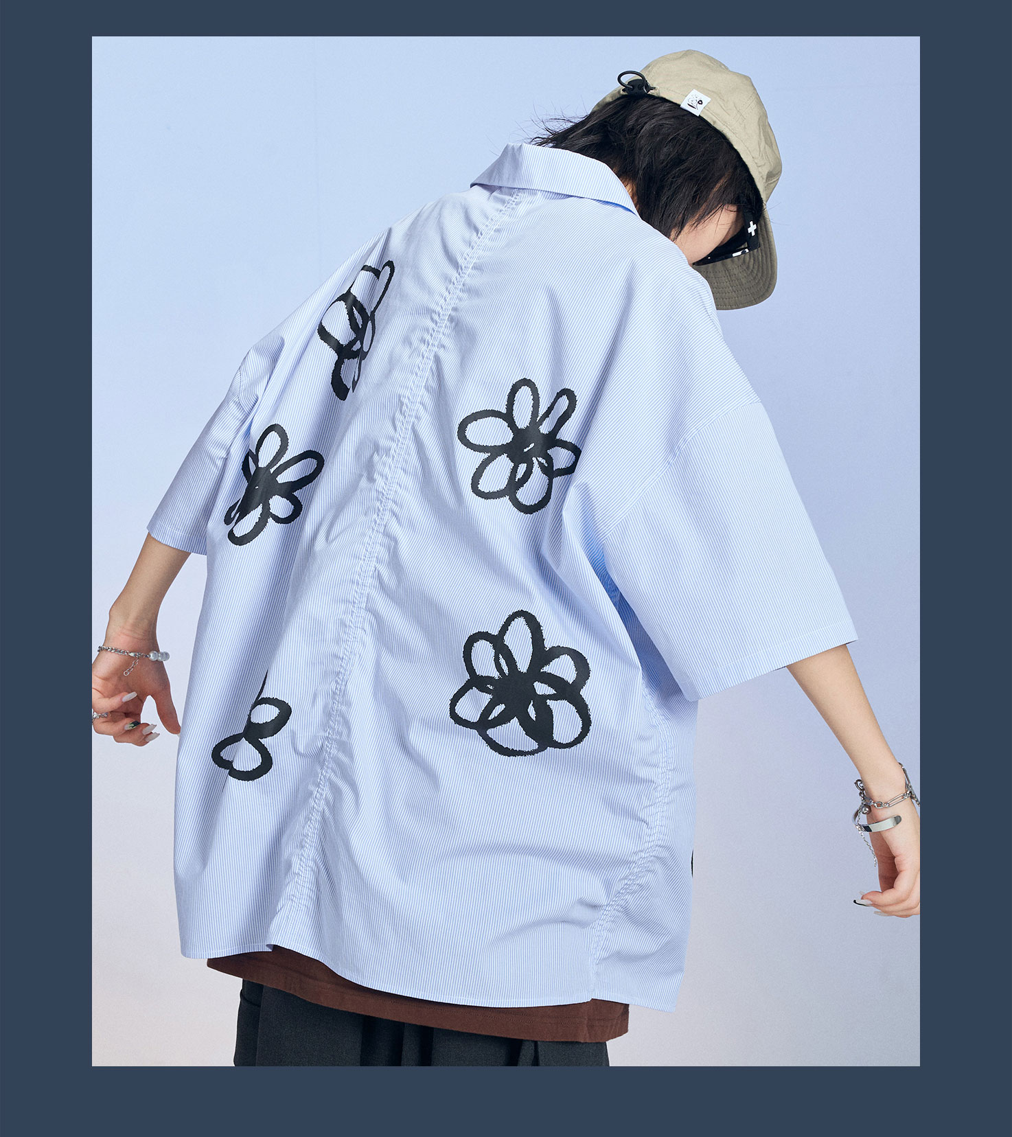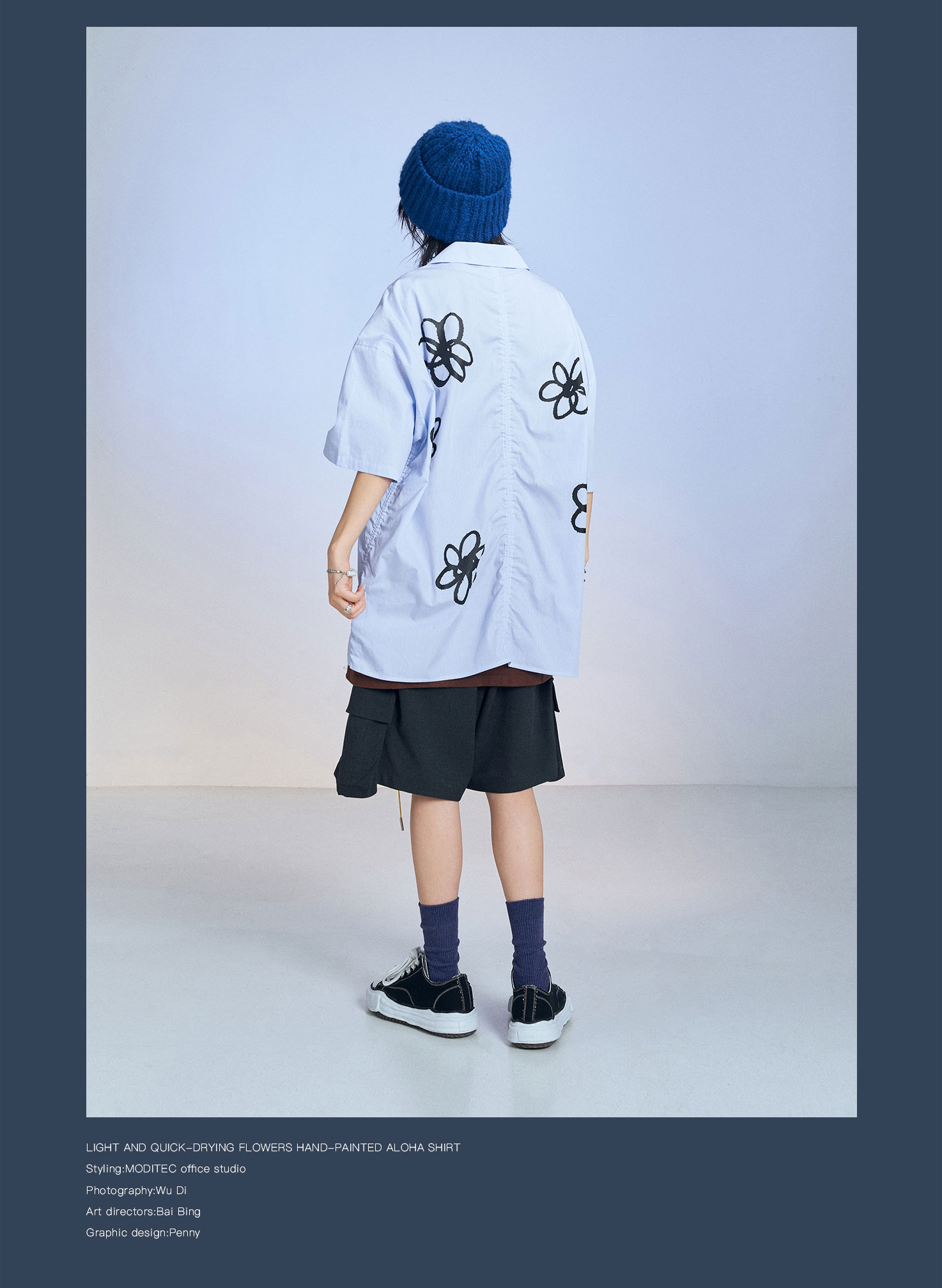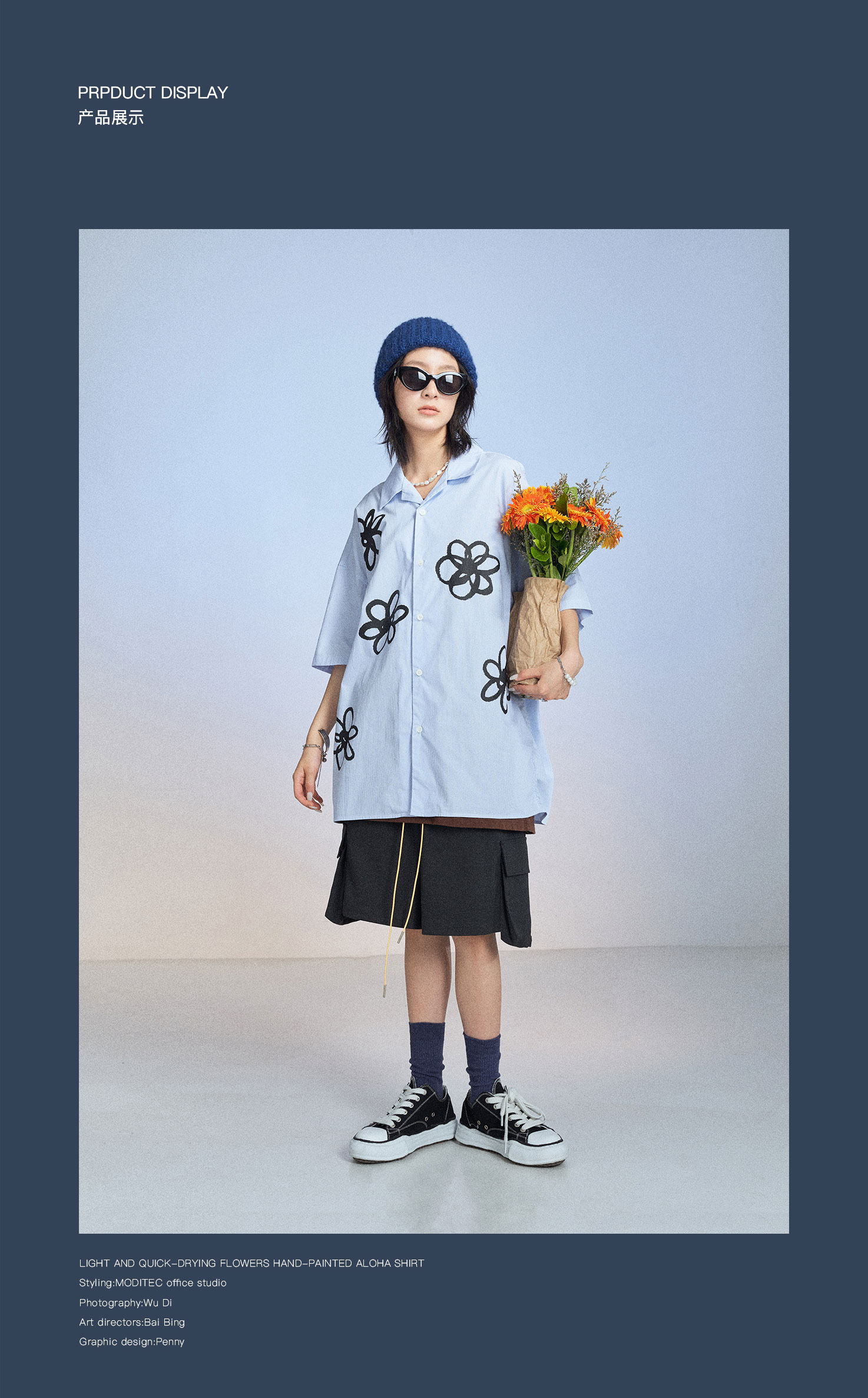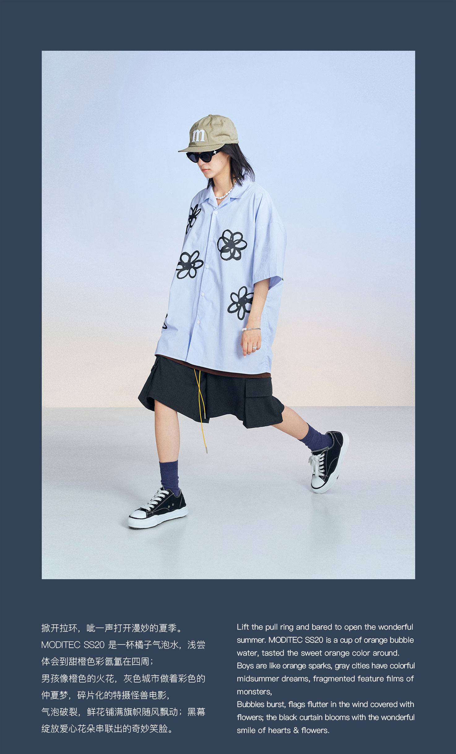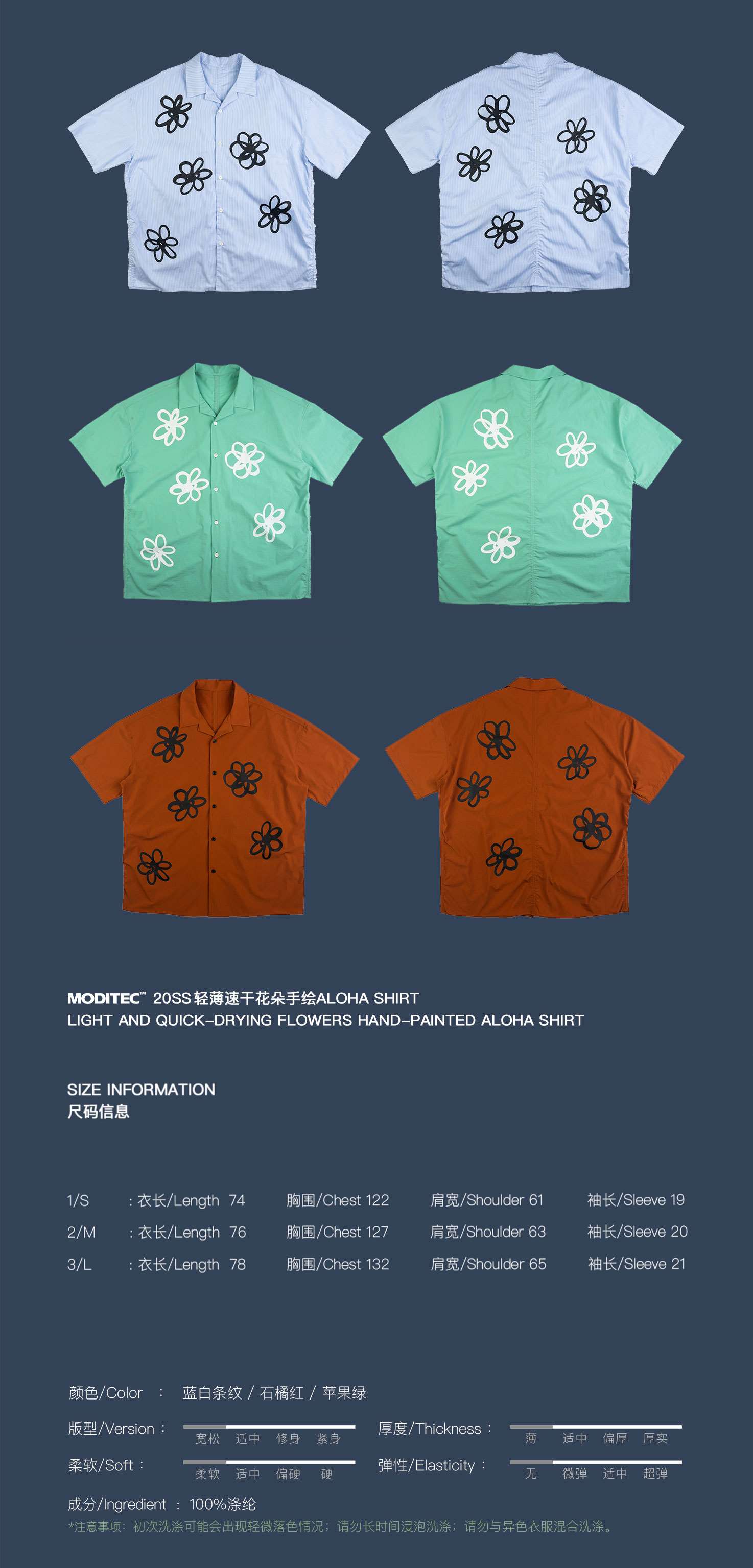 MODITEC 20SS花朵手绘印花短袖条纹宽松衬衫男女款ALOHA古巴衬衣
