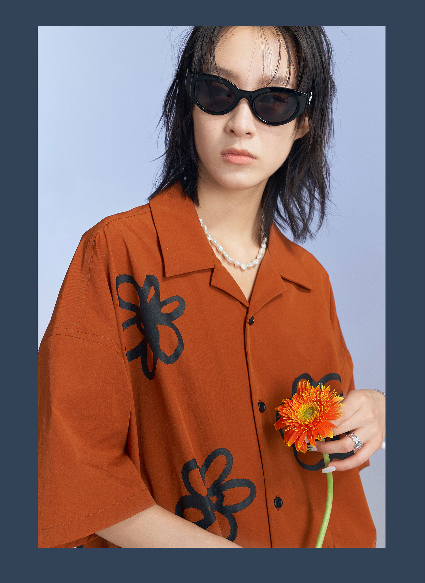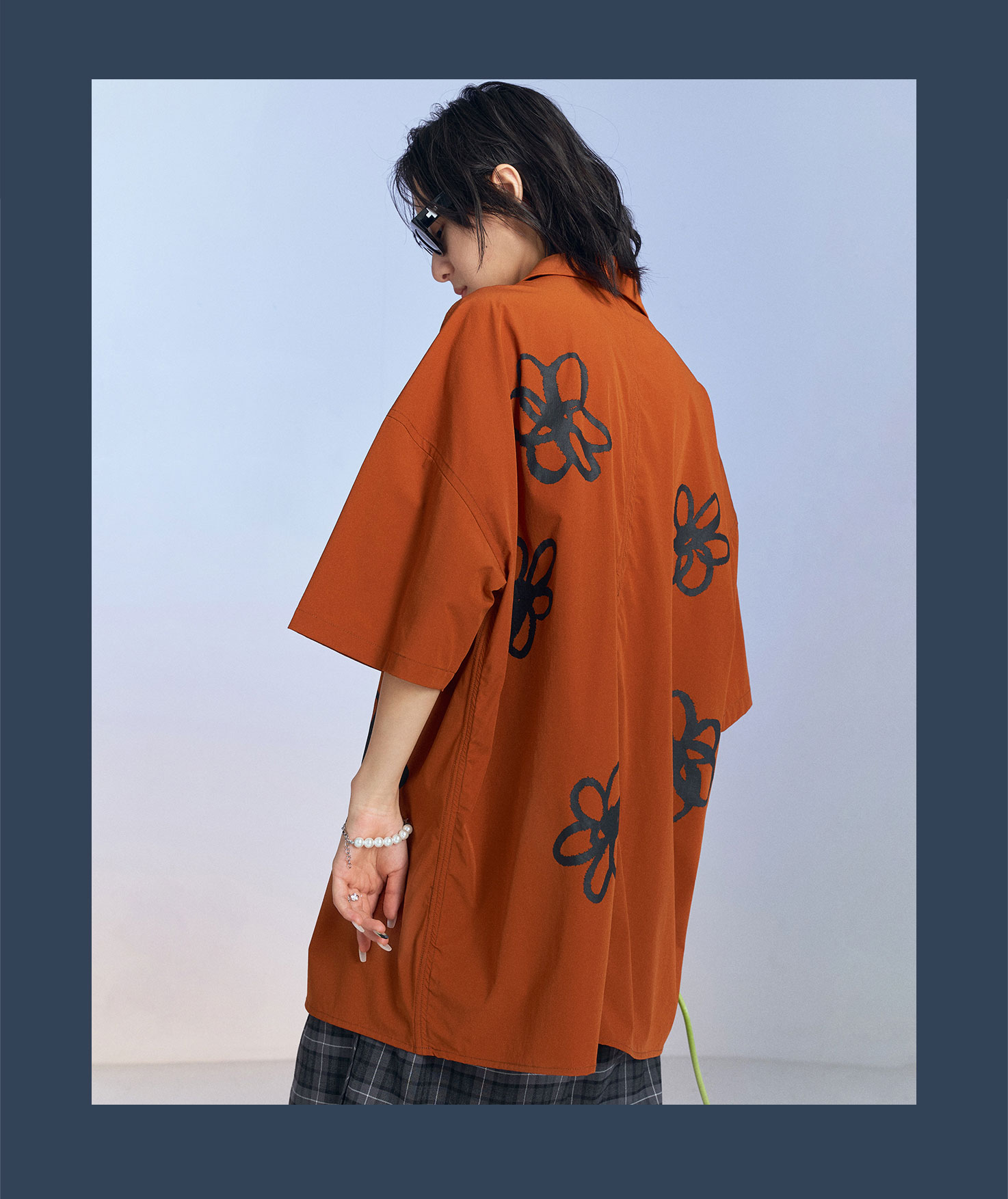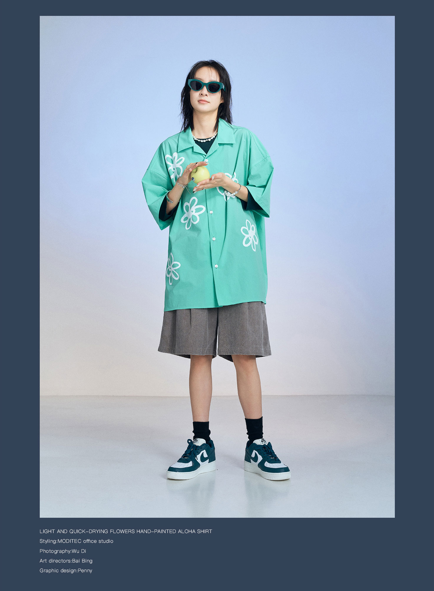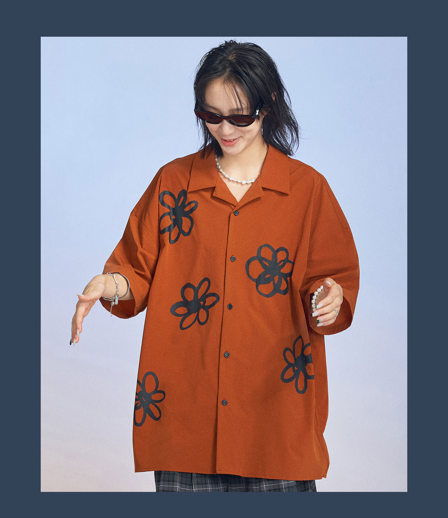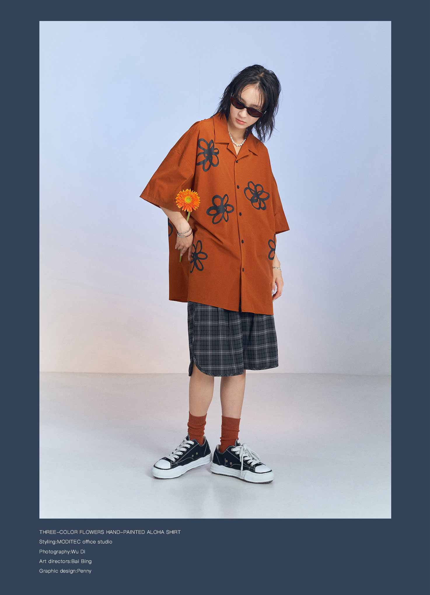 MODITEC 20SS花朵手绘印花短袖条纹宽松衬衫男女款ALOHA古巴衬衣