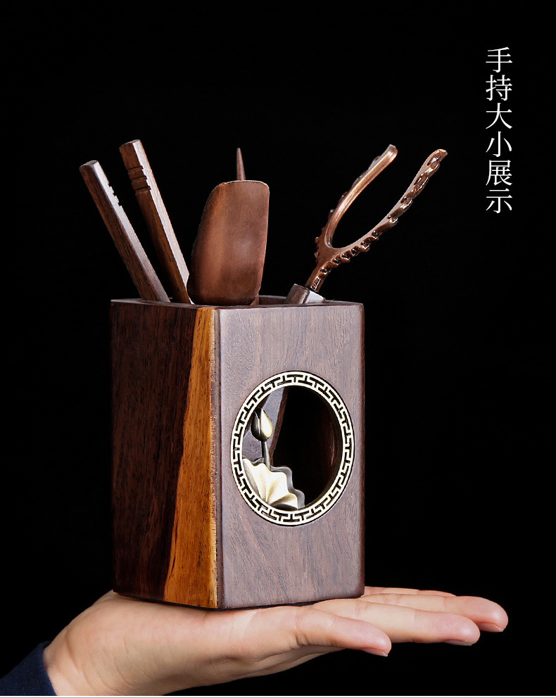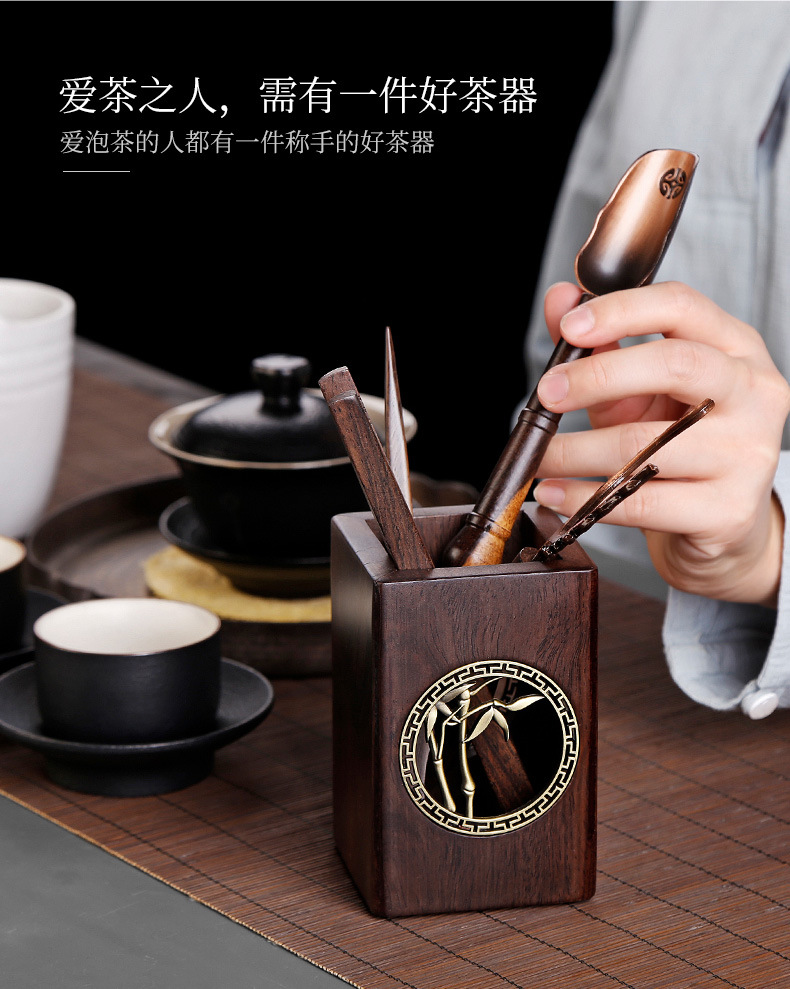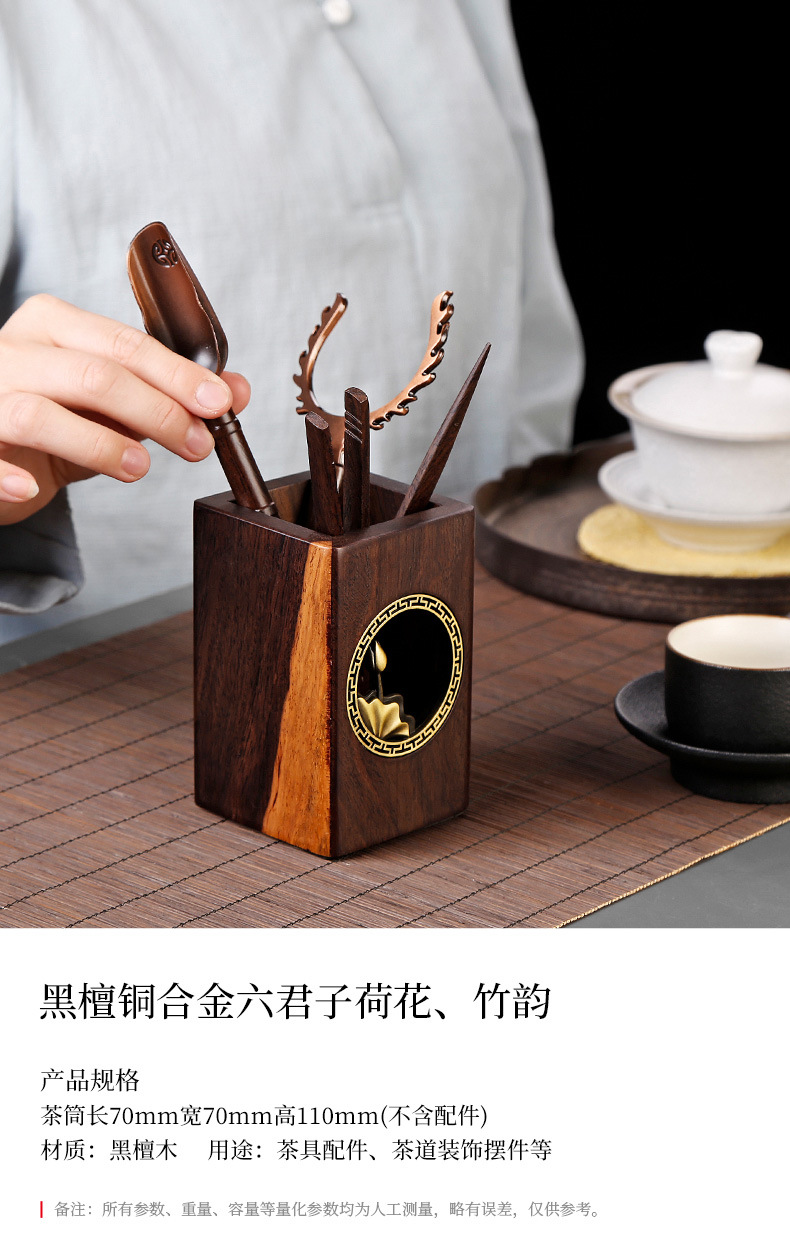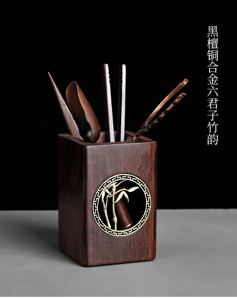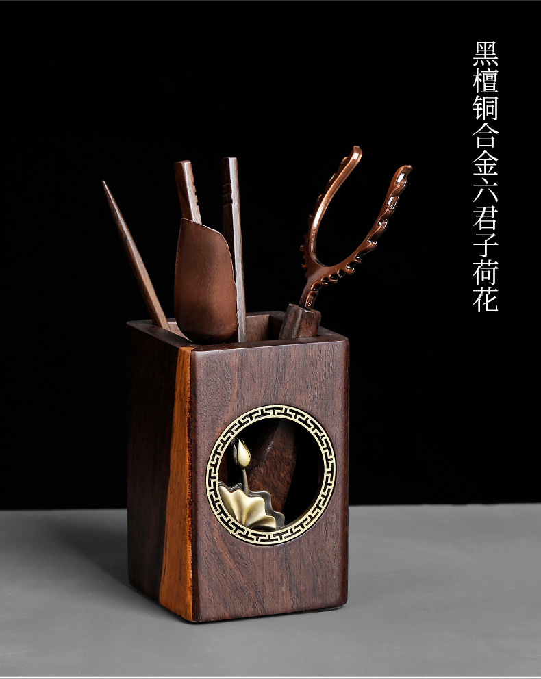 道六君子整套装黑檀实木功夫茶具配件禅意铜窗花家用6件套简约