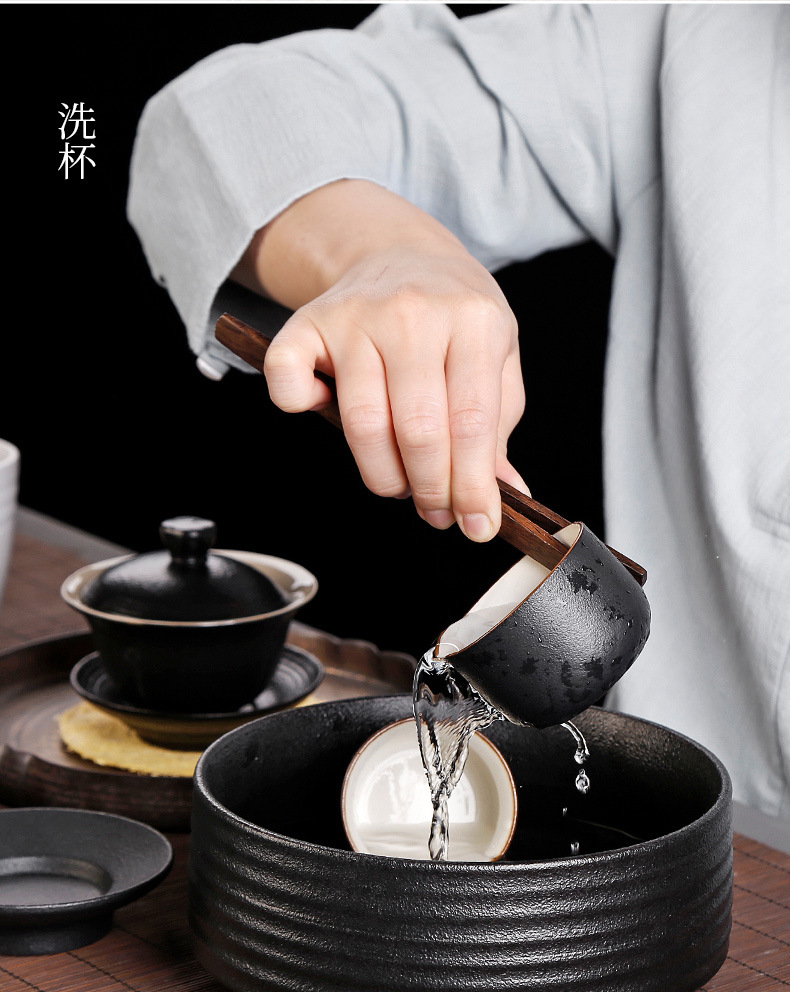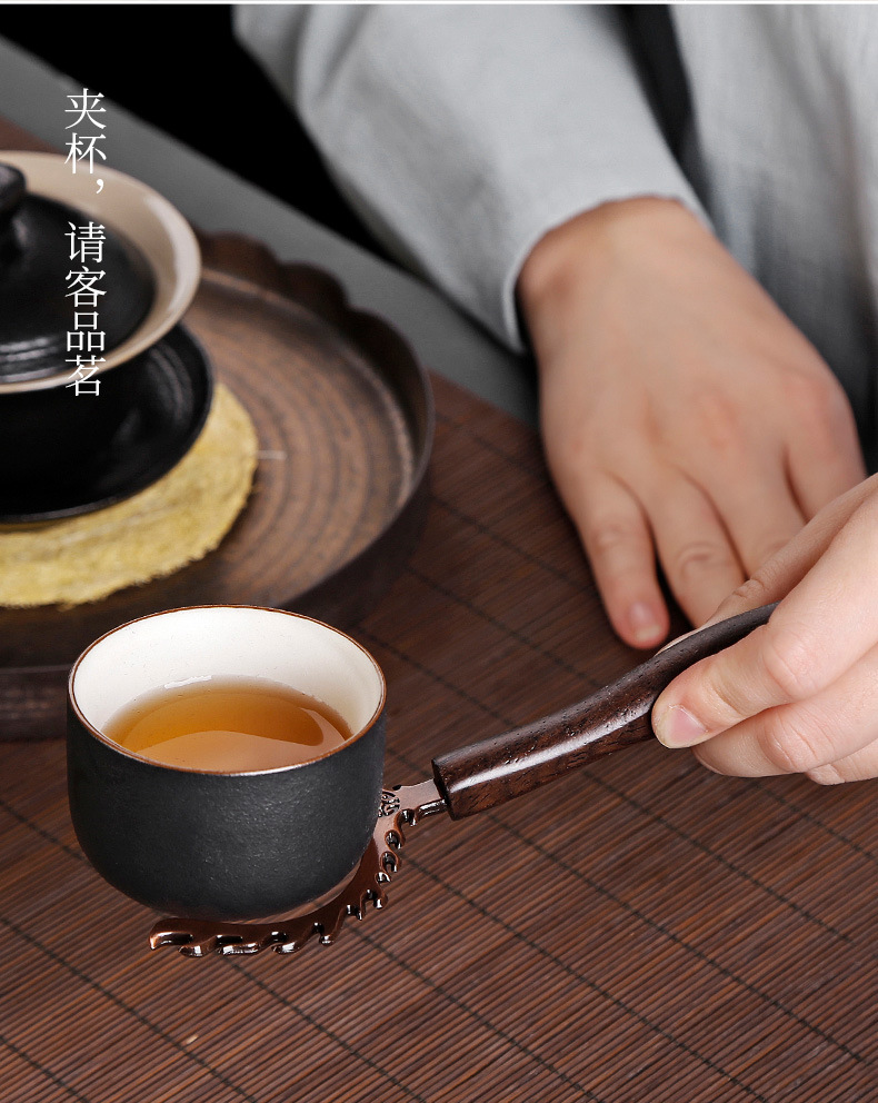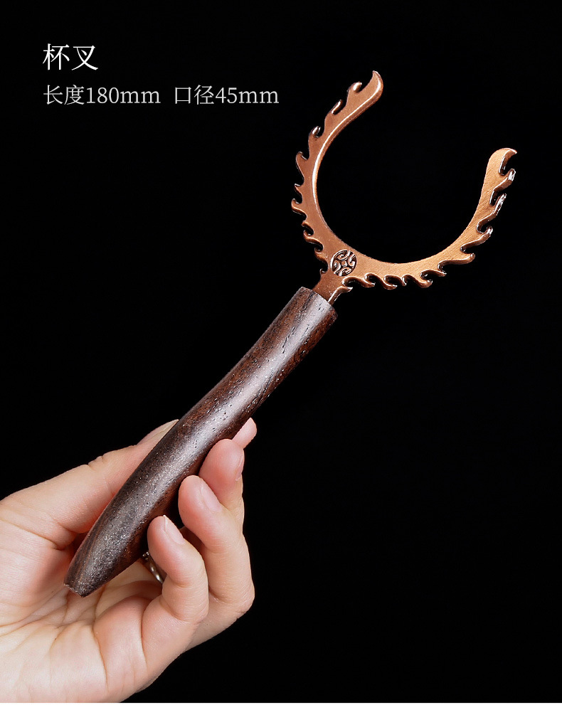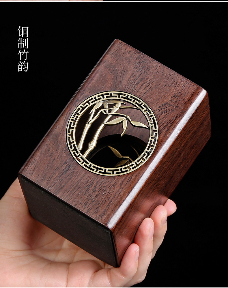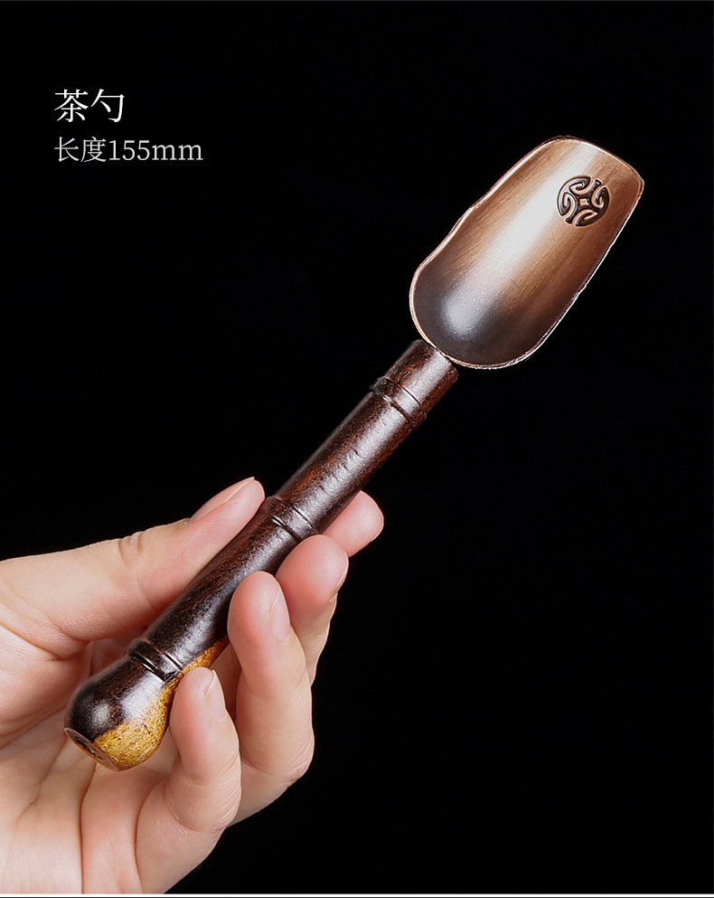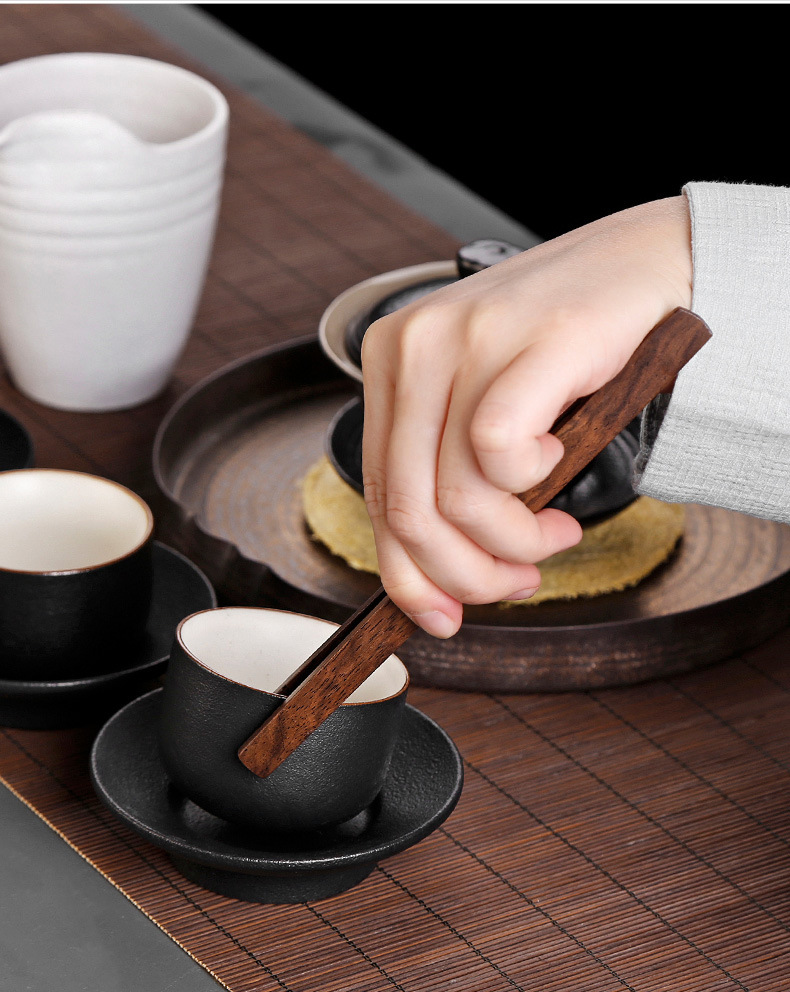道六君子整套装黑檀实木功夫茶具配件禅意铜窗花家用6件套简约