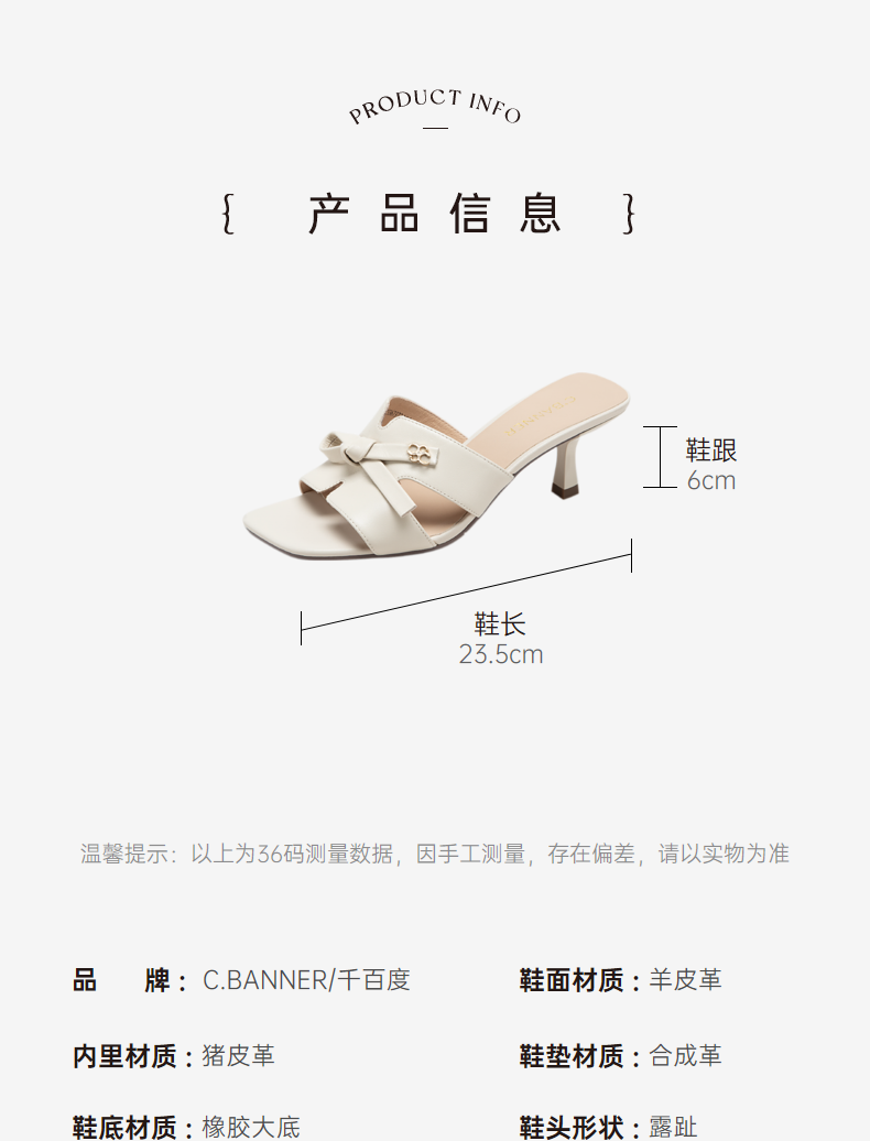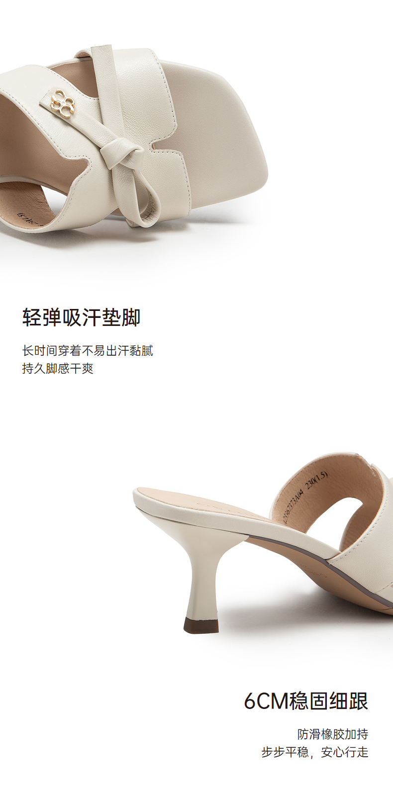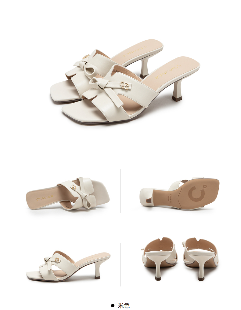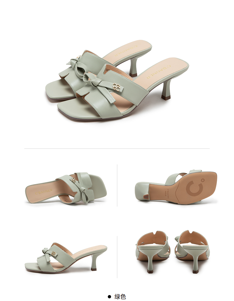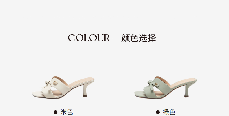 千百度女鞋夏季凉拖鞋百搭羊皮细跟拖高跟鞋踩屎感外穿 A23367373