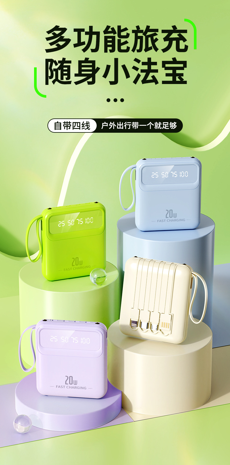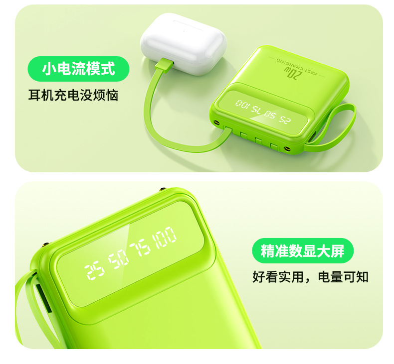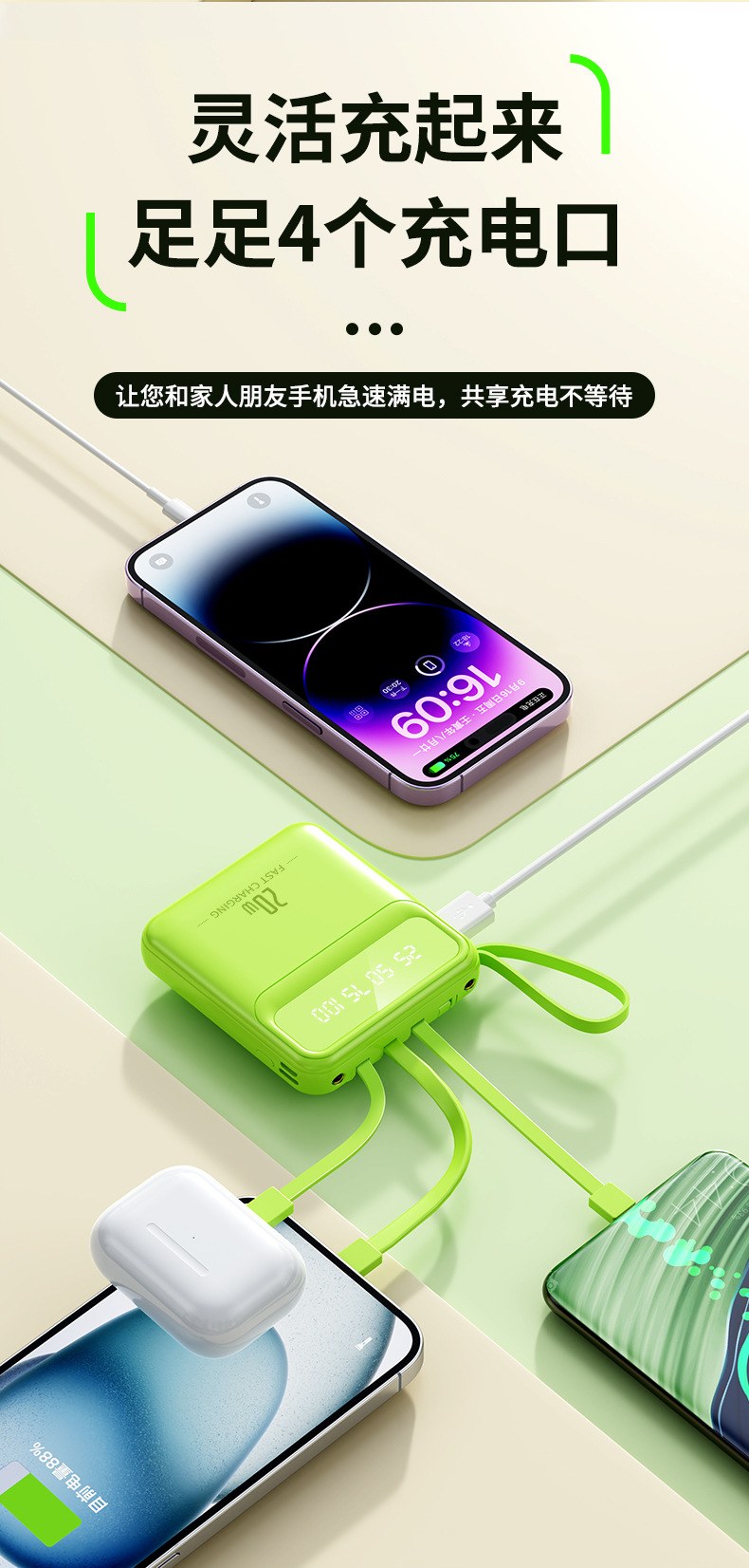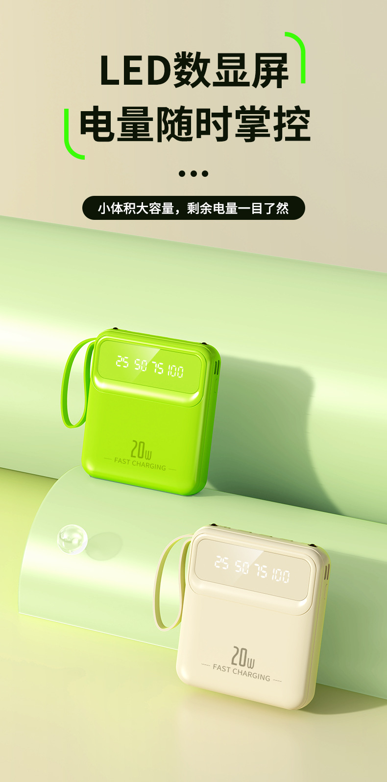 【随身“小法宝”】新款便携自带线充,灯亮常伴你左右。20000mAh大容量,便携挂绳,镜面光芒颜值高。手机保驾护航,旅行必备良伴。