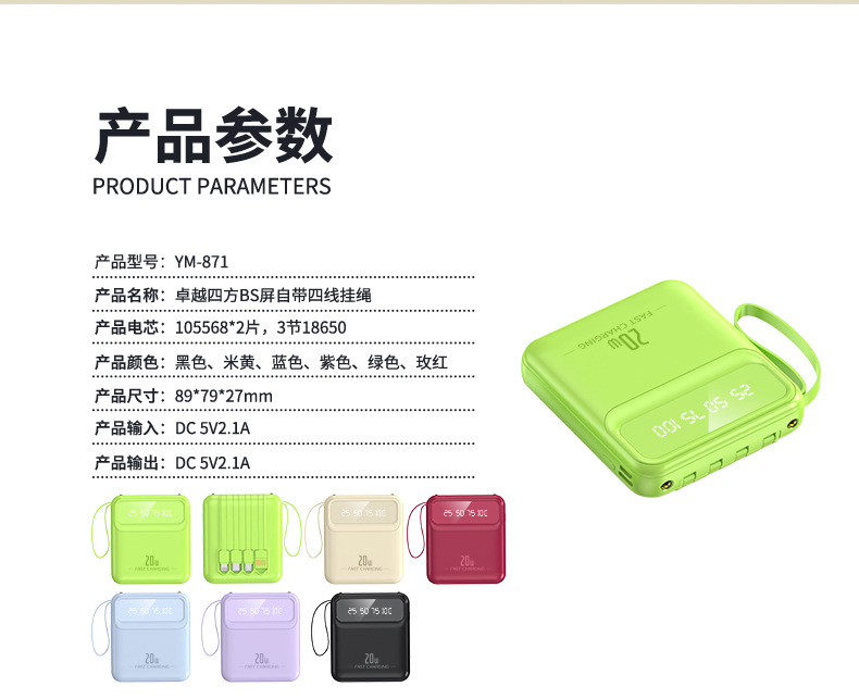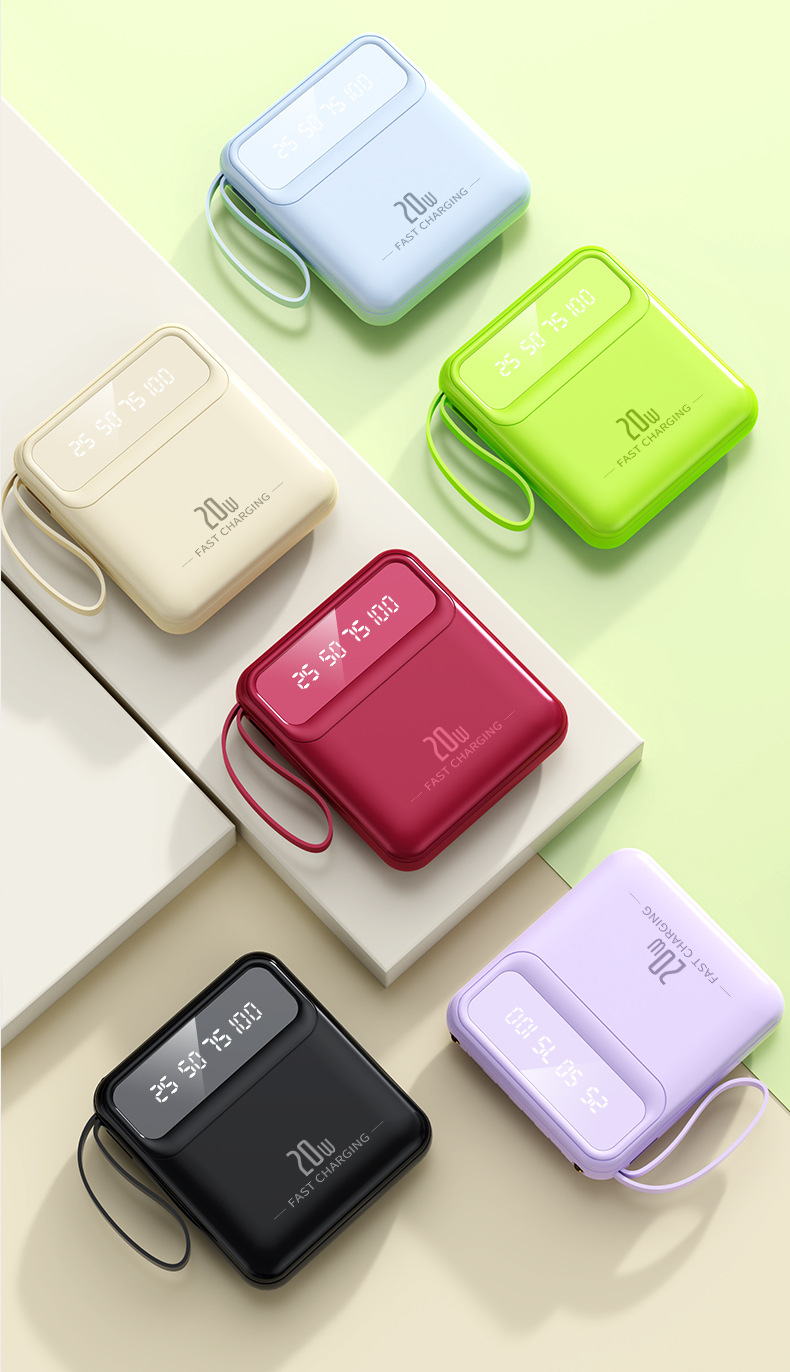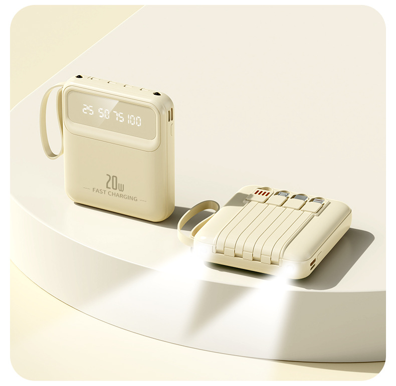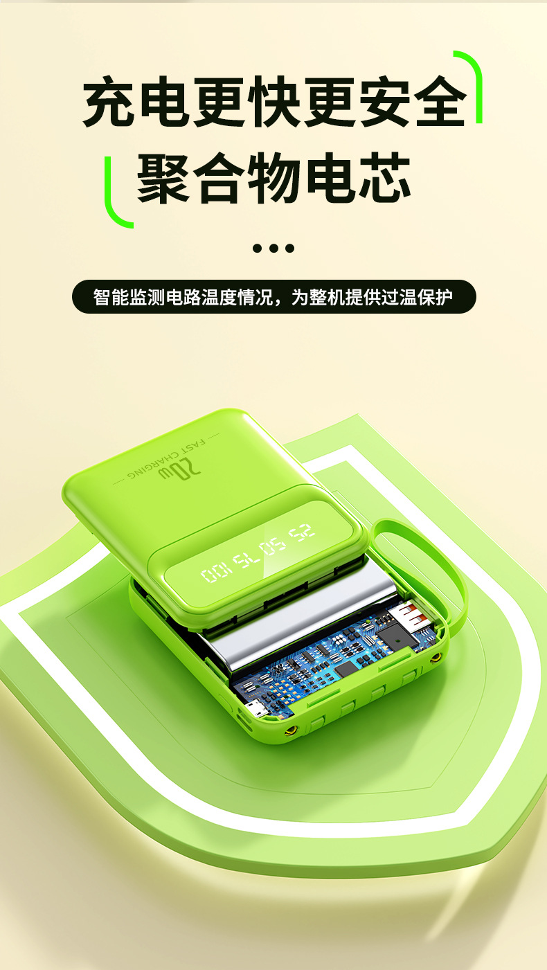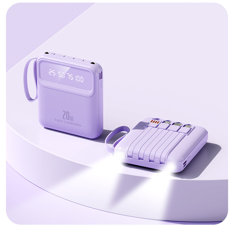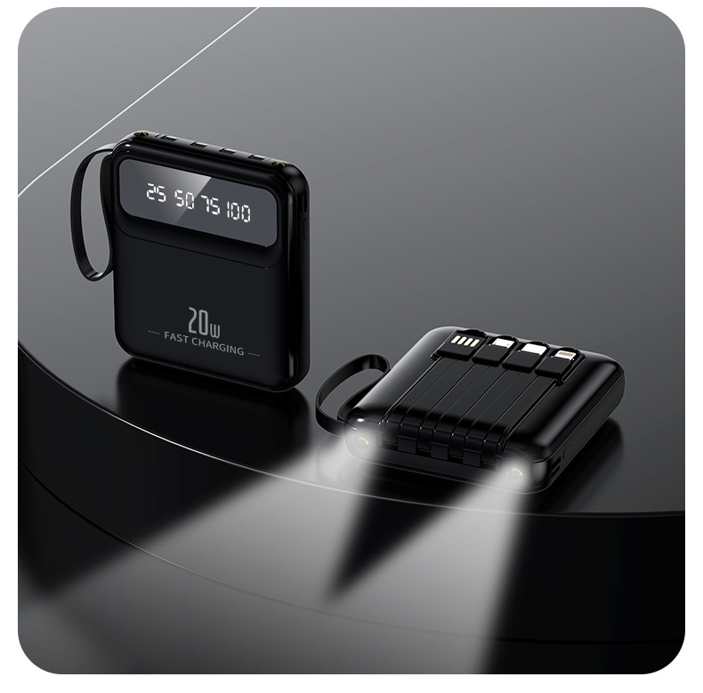 【随身“小法宝”】新款便携自带线充,灯亮常伴你左右。20000mAh大容量,便携挂绳,镜面光芒颜值高。手机保驾护航,旅行必备良伴。