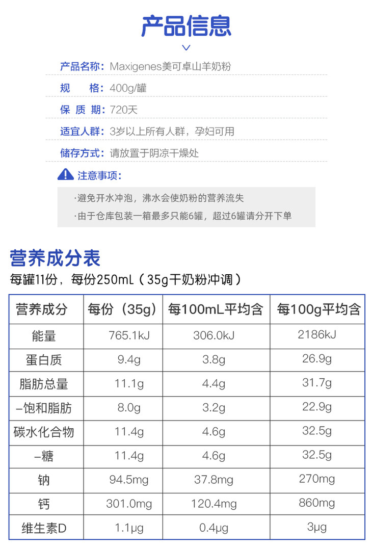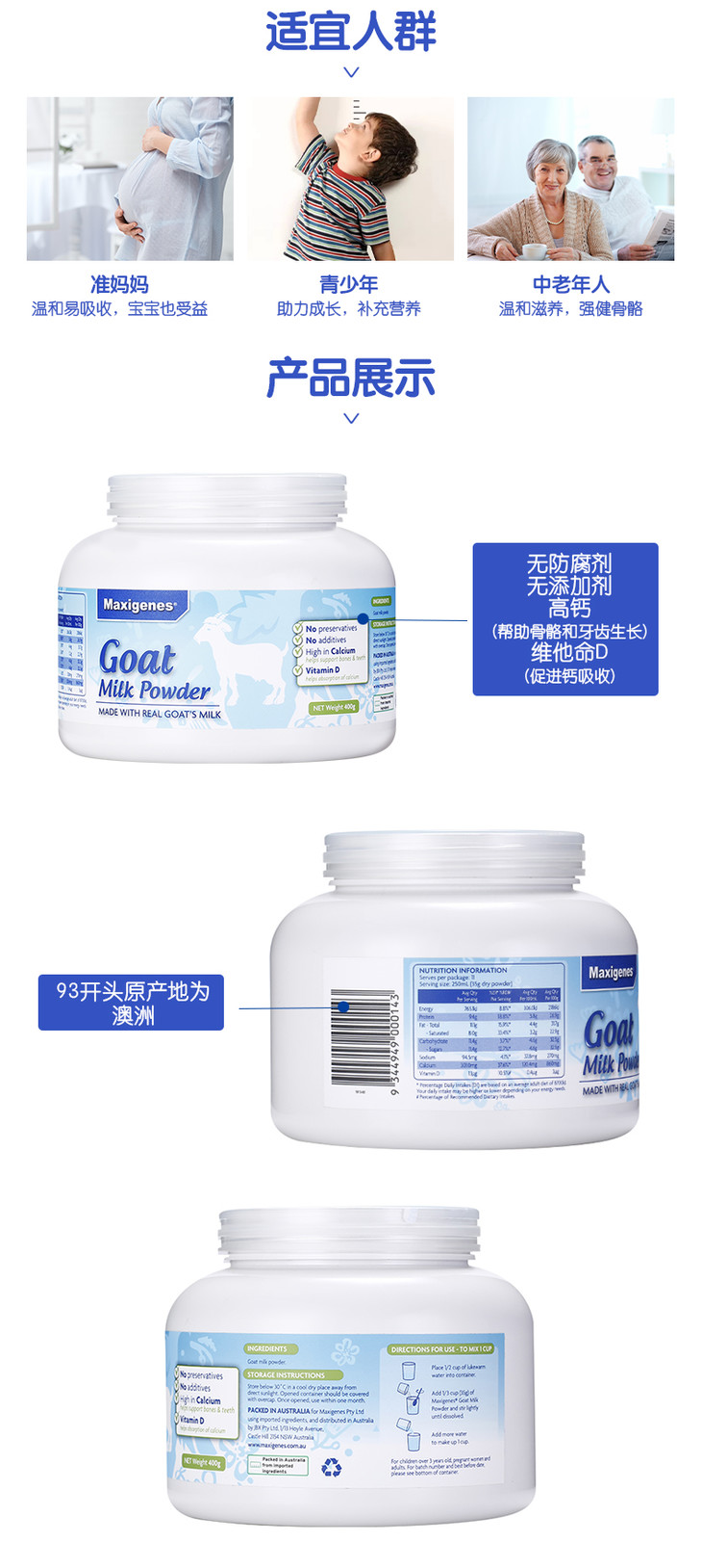 美可卓(Maxigenes) 澳大利亚进口 纯羊奶粉 400g/罐