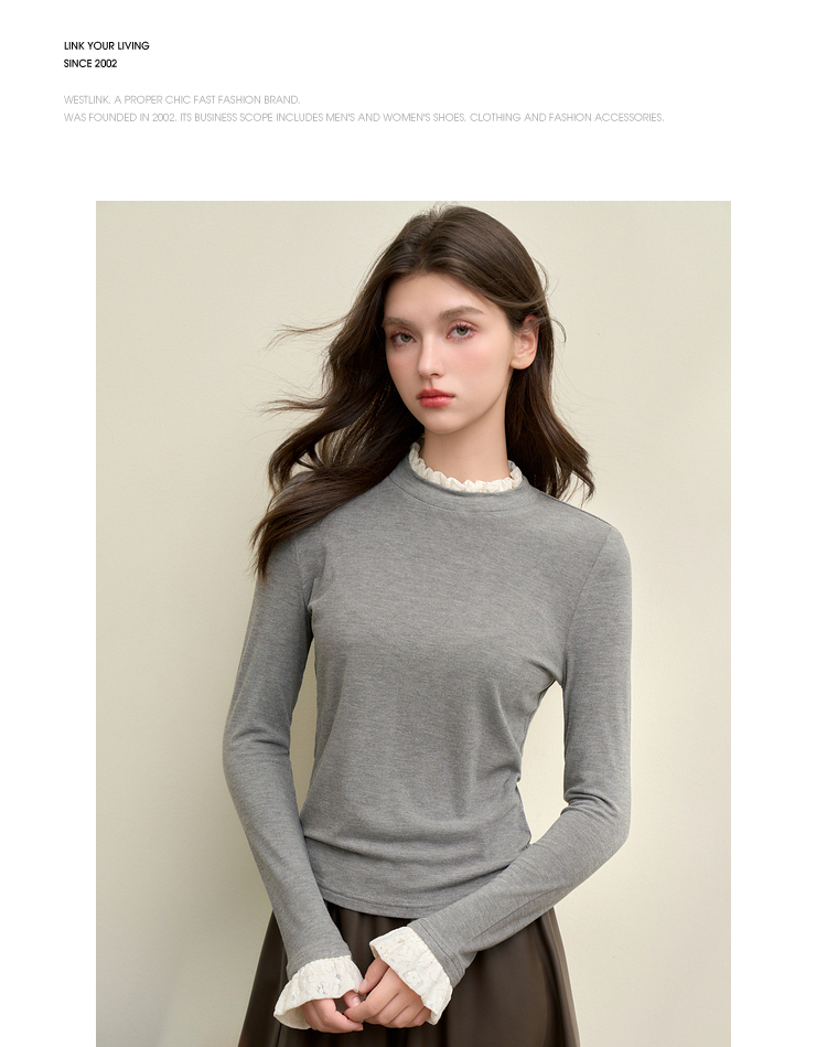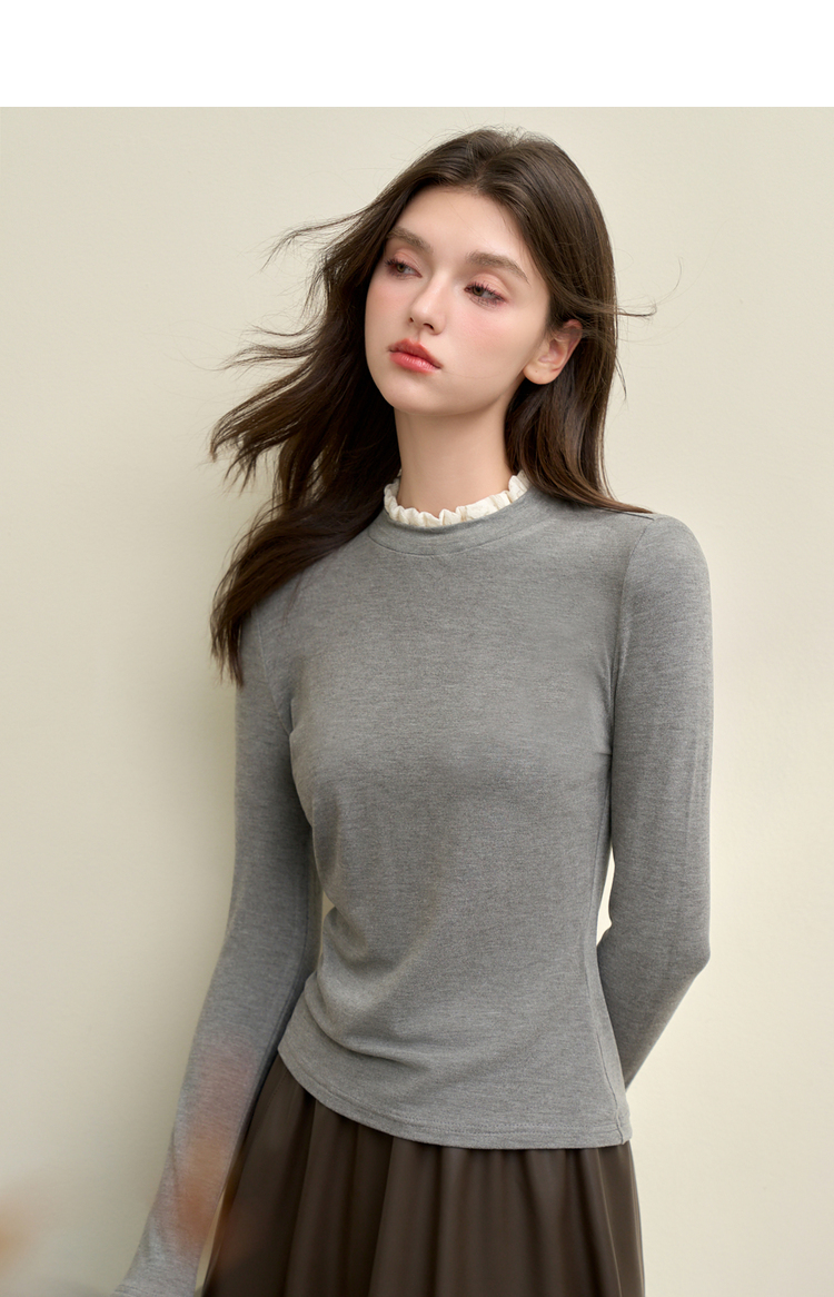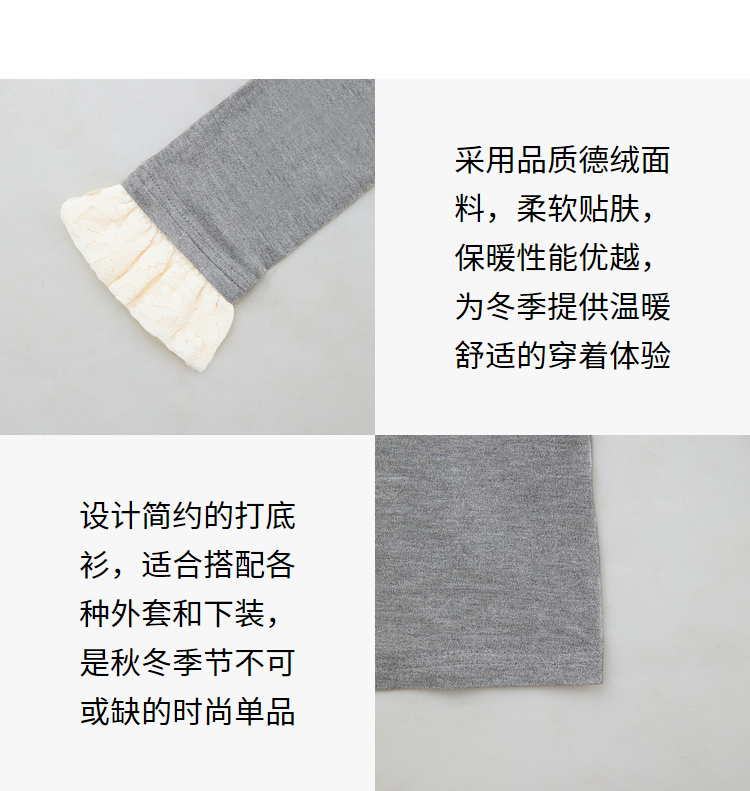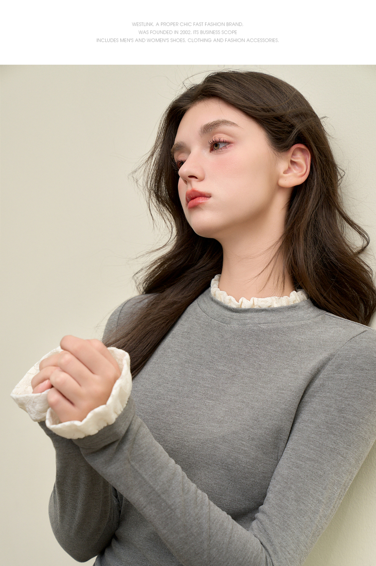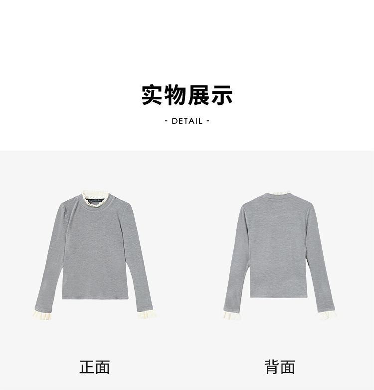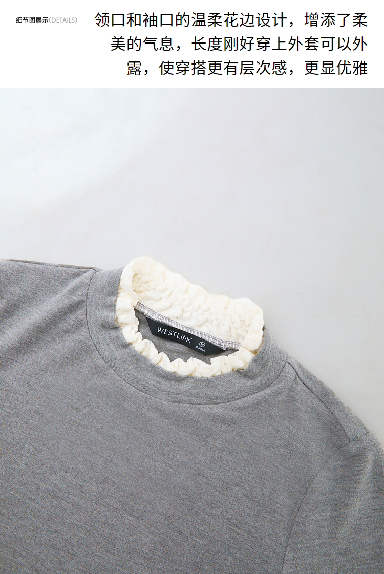 德绒保暖假两件设计简约木耳边长袖T恤女修身打底衫V3942677