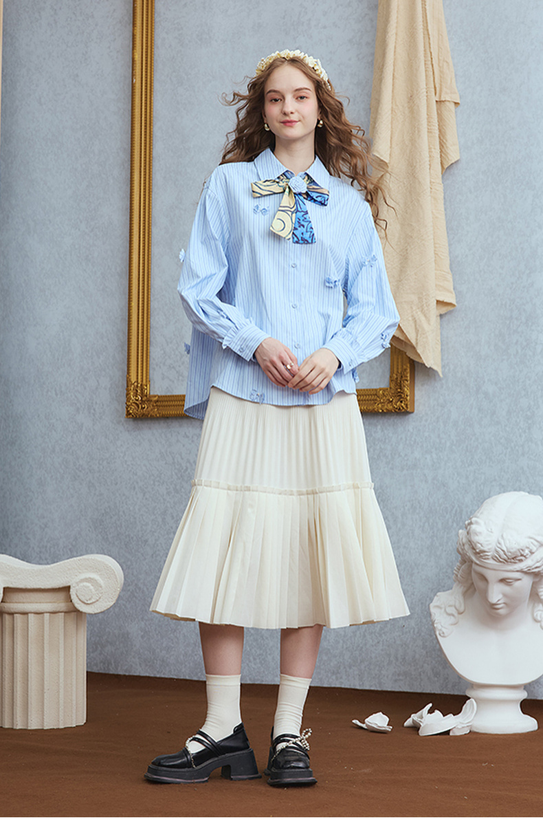 两三事 心情备忘录 2025秋季新款复古印花领带条纹长袖衬衫女