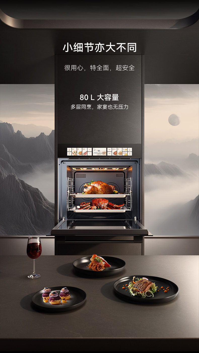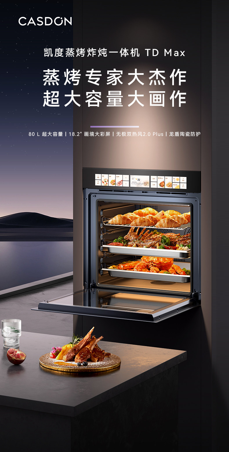 凯度TDMAX彩屏80L大容量蒸烤一体机嵌入式蒸烤箱双热风家用蒸箱