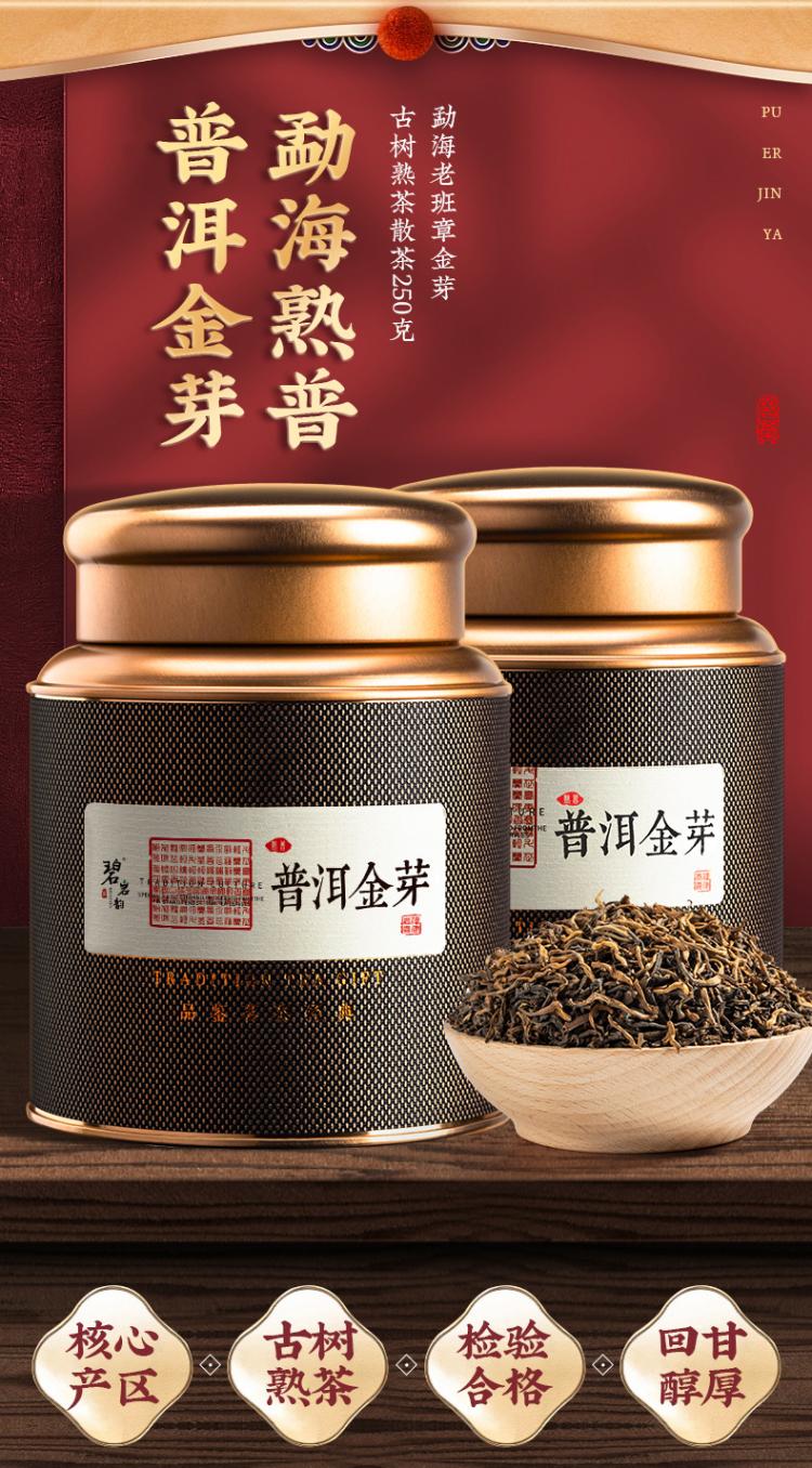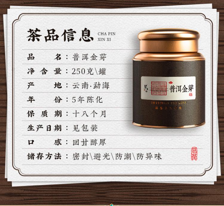 碧岩韵茶黑罐普洱金芽250g礼袋装