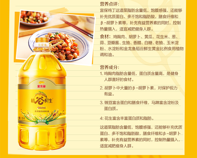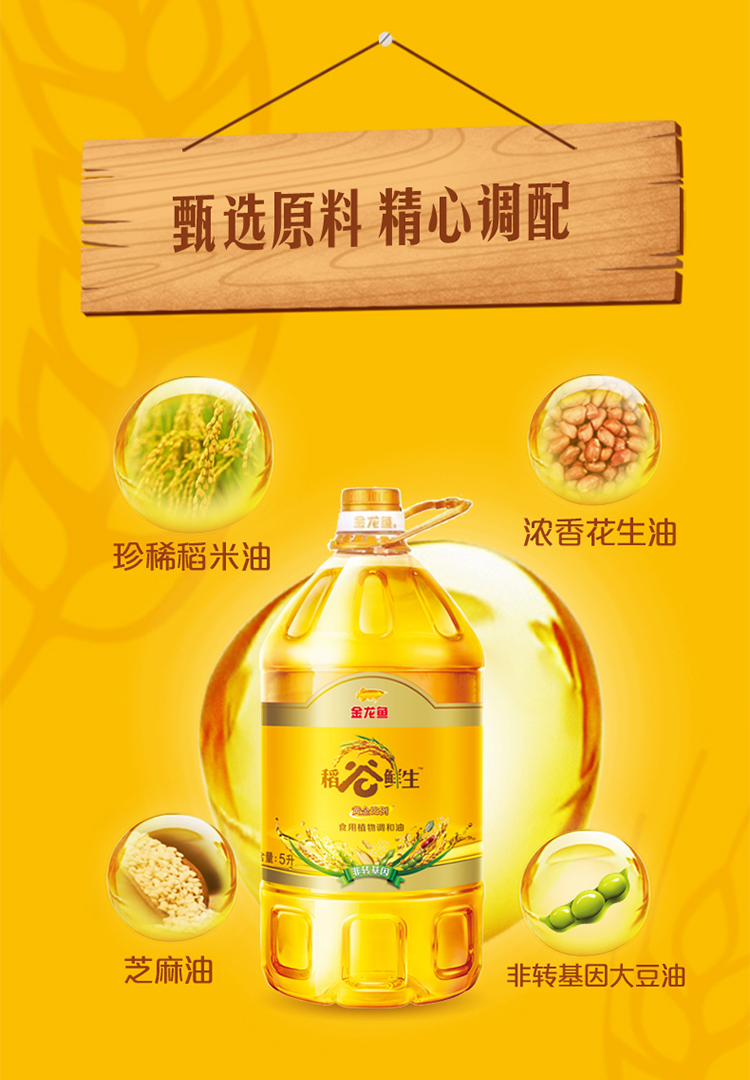 金龙鱼稻谷鲜生黄金比例食用植物调和油5L