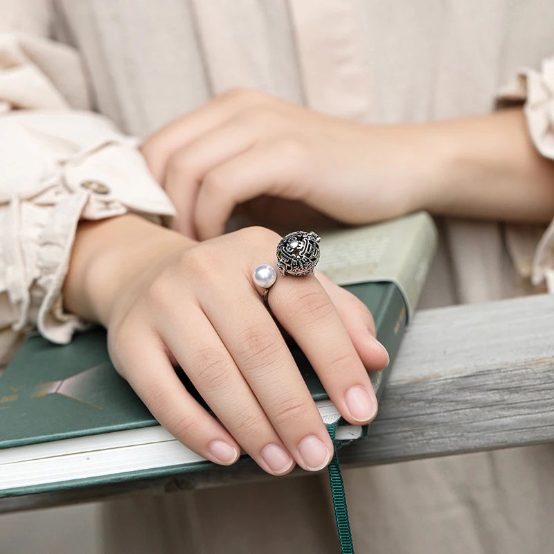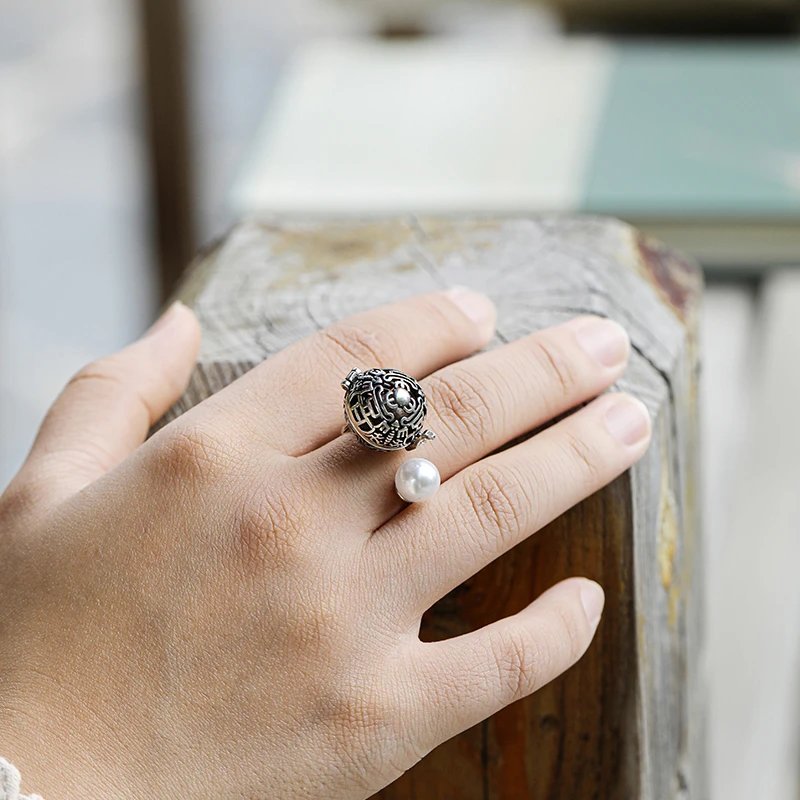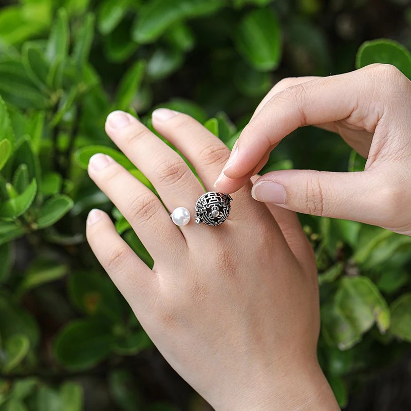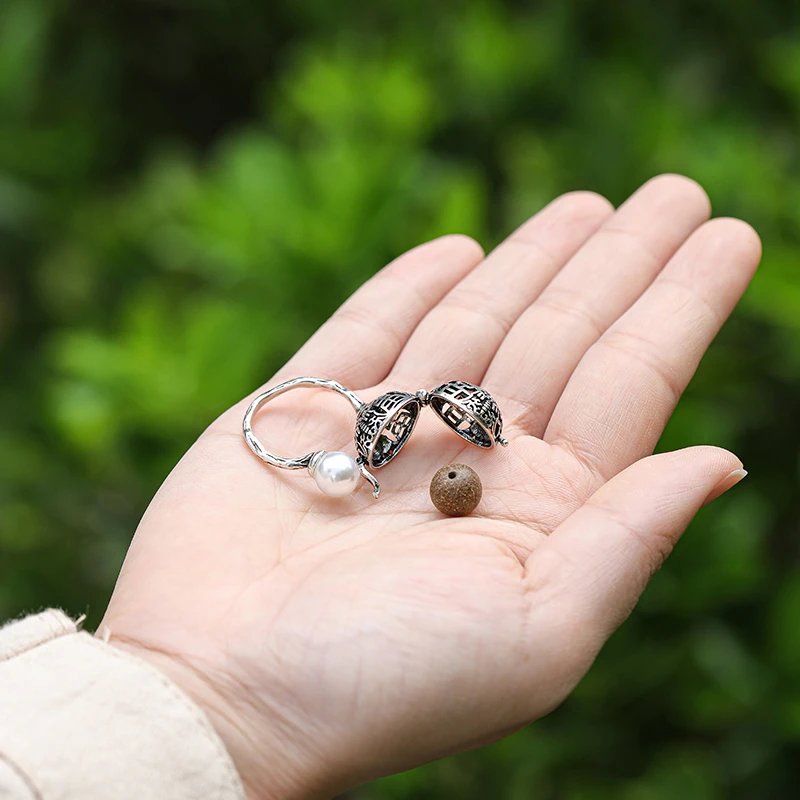 圆满镂空可替换香珠戒指 开口调节设计 (多款香味可选择 )个性小众指环 随身便携香薰礼物送女友