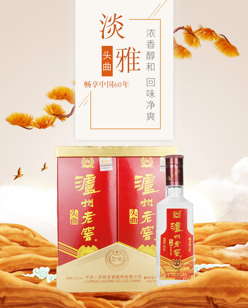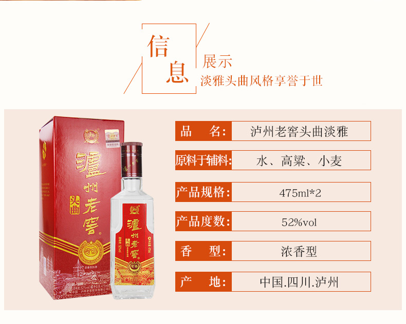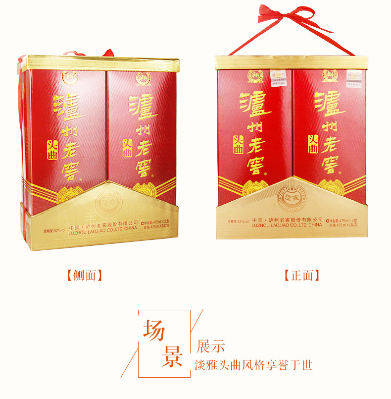 不可销售 52度 泸州老窖 头曲淡雅 礼盒装 475ml*2*3 泸州老窖官方旗舰店