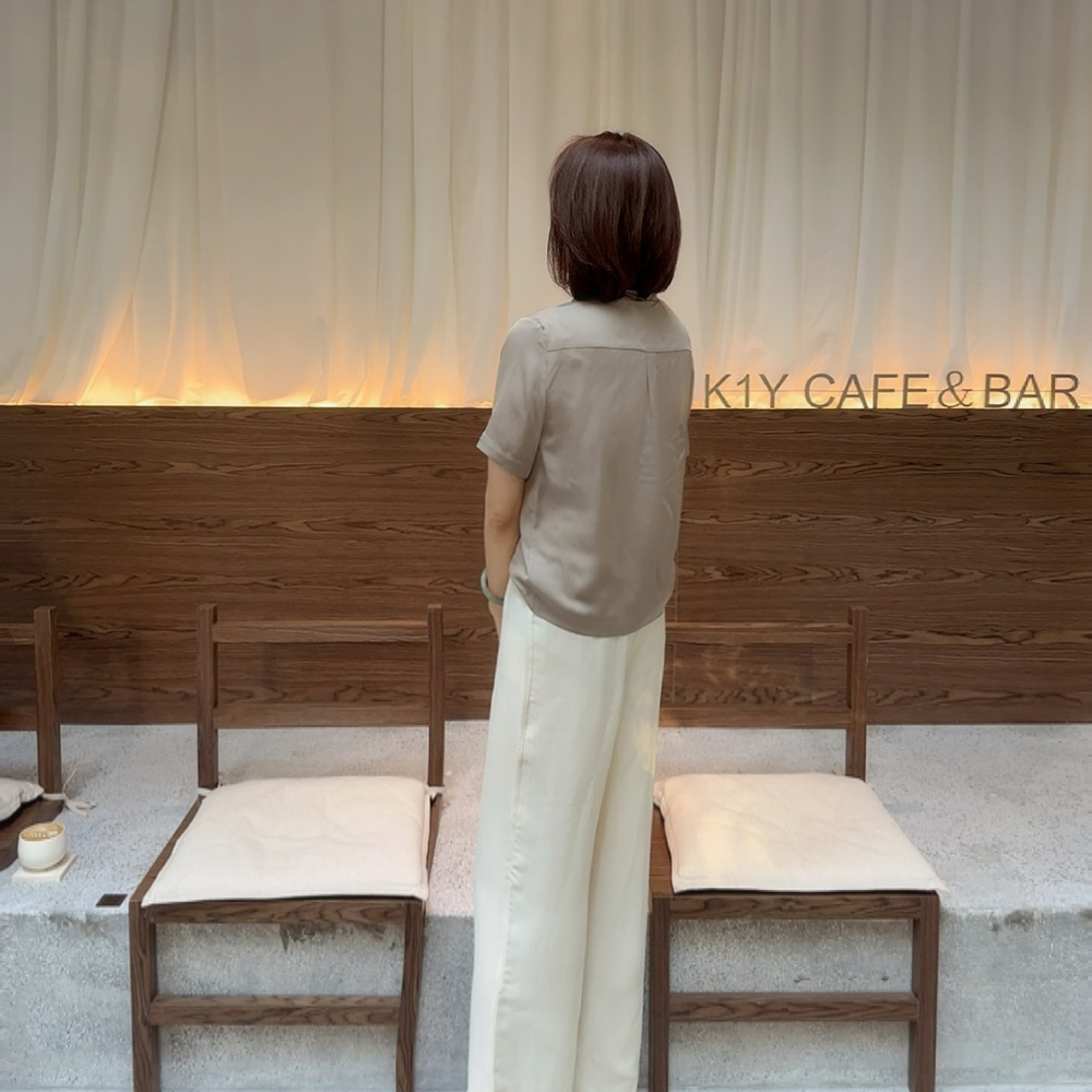 火桐hooton高定系列 重磅23姆米乔缎飘带短袖YT3030