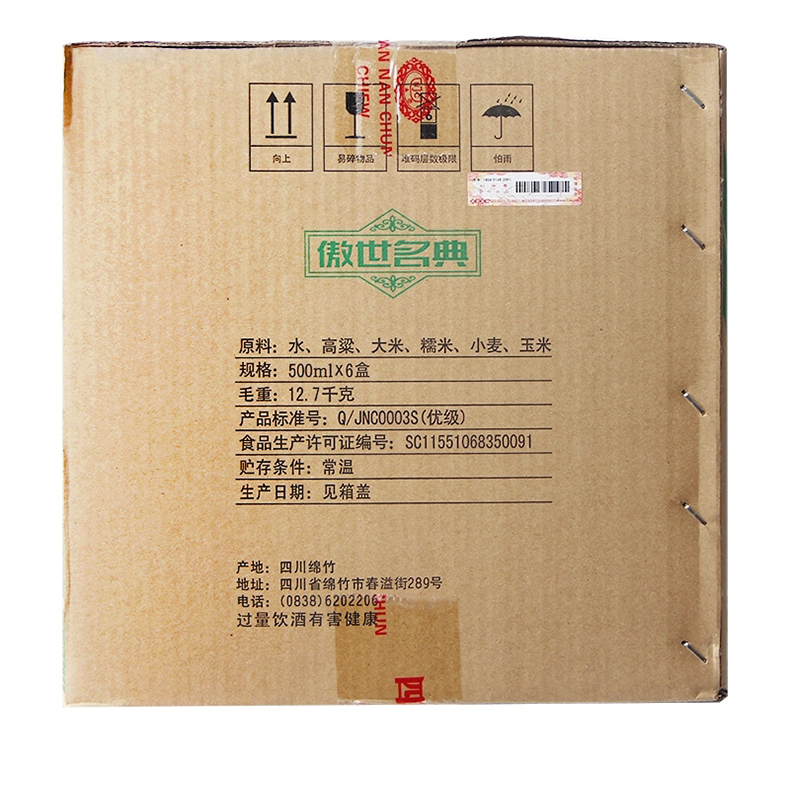 剑南老窖荷花傲世名典 52度浓香型白酒 整箱6瓶*500ml包邮