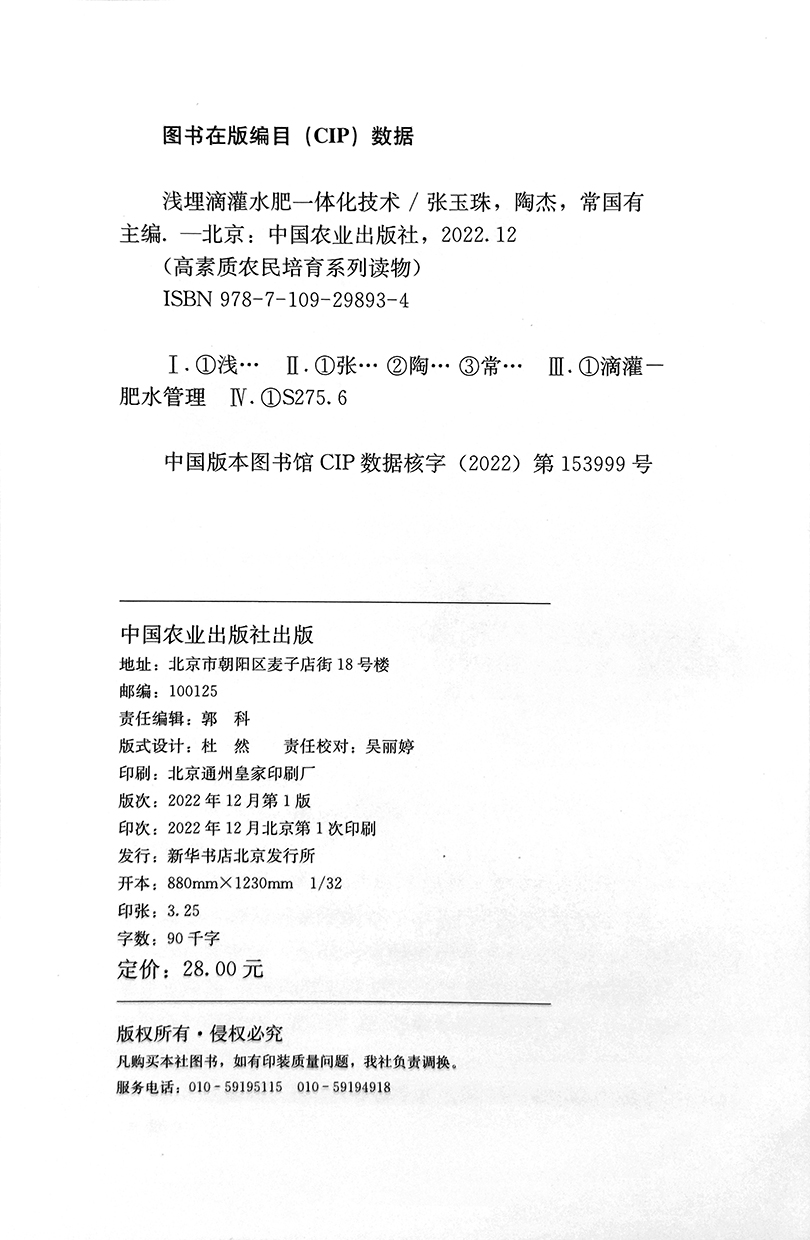 浅埋滴灌水肥一体化技术 张玉珠,陶杰,常国有 高素质农民培育系列读物 肥水管理 29893
