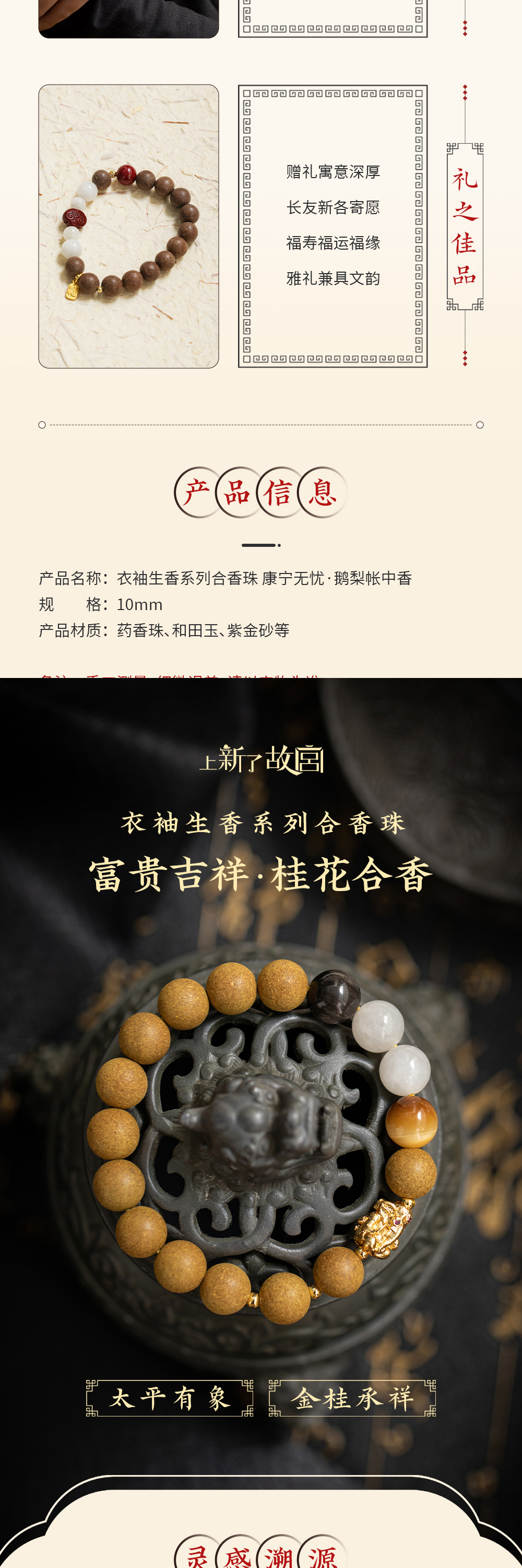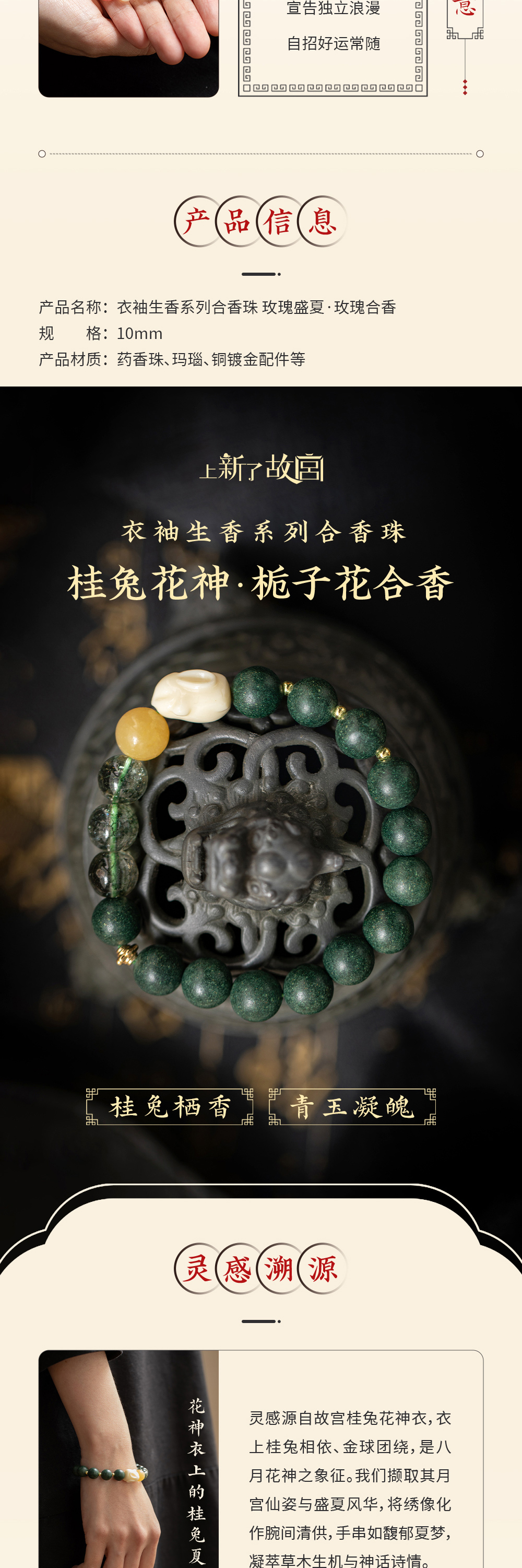 上新了故宫·衣袖生香系列合香珠,举手飘香,风雅极了!既是美物,亦是“腕间香水”!【赠送马年纸雕画已送完】【G】