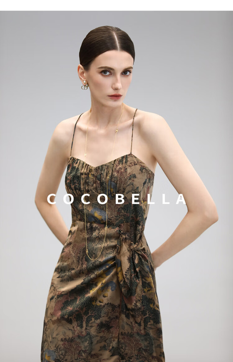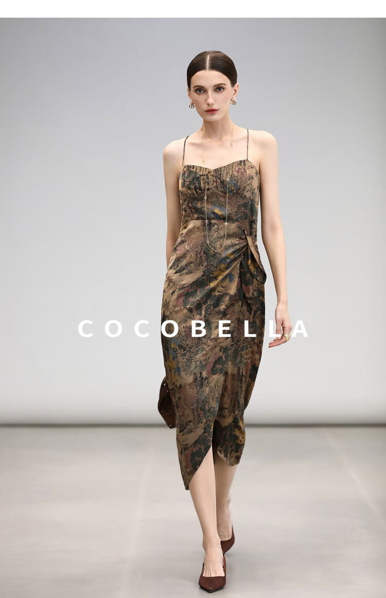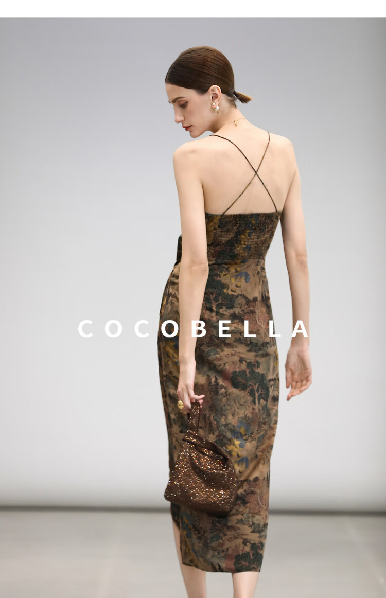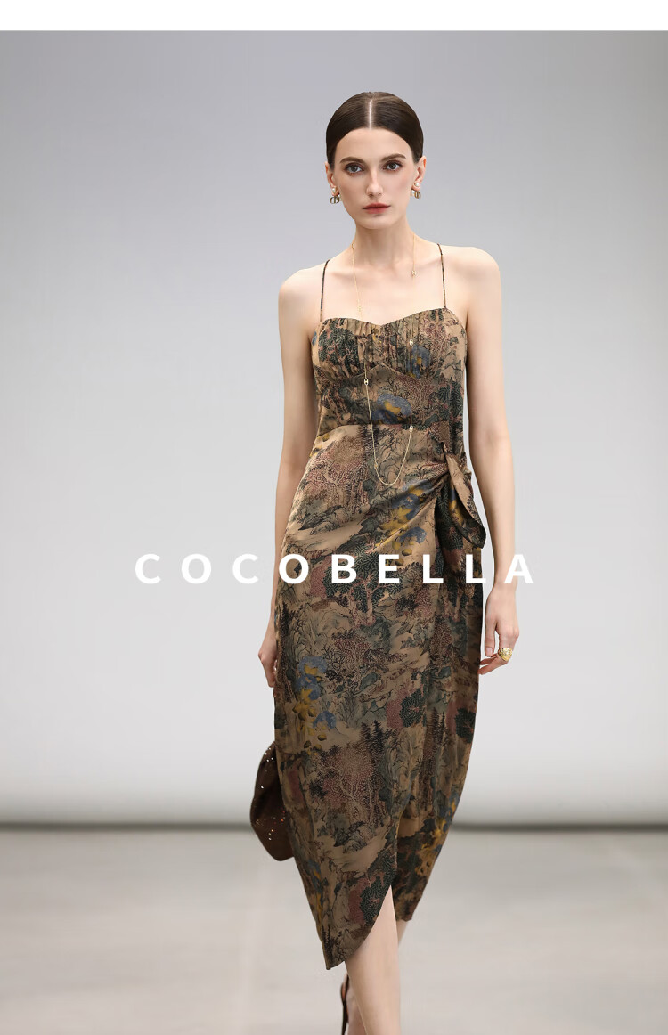 【限时秒杀】COCOBELLA[清平乐]新中式缎面印花吊带裙夏国风连衣裙FR0012