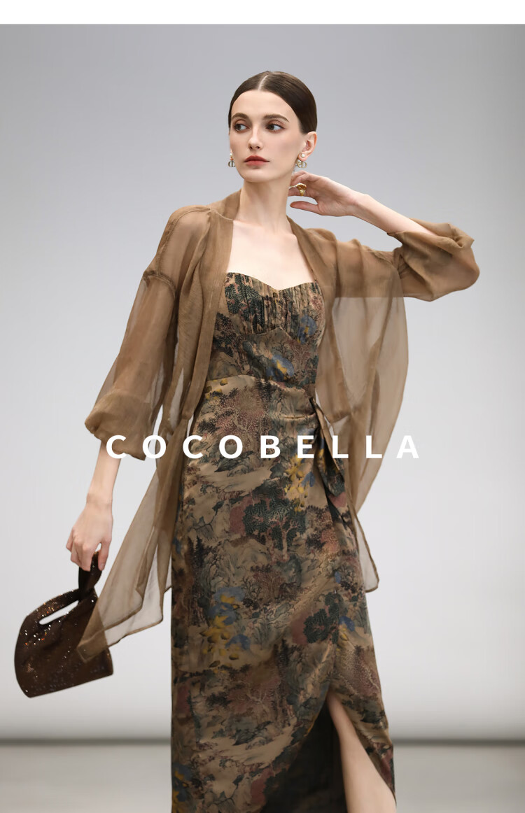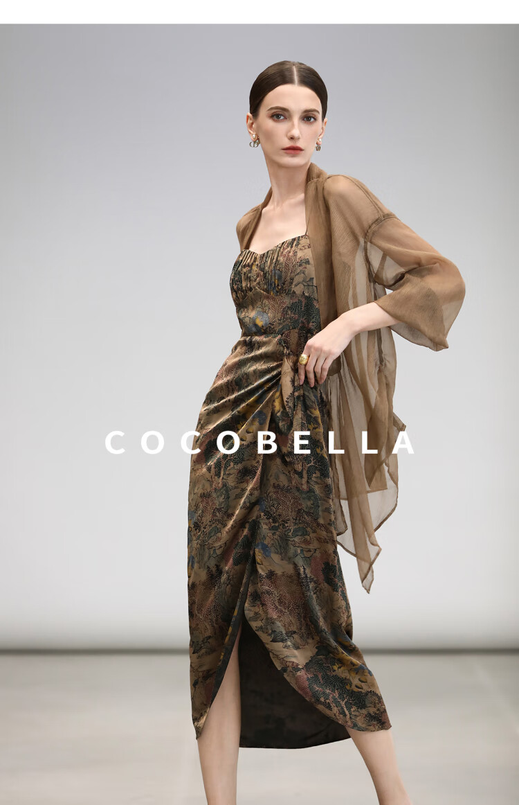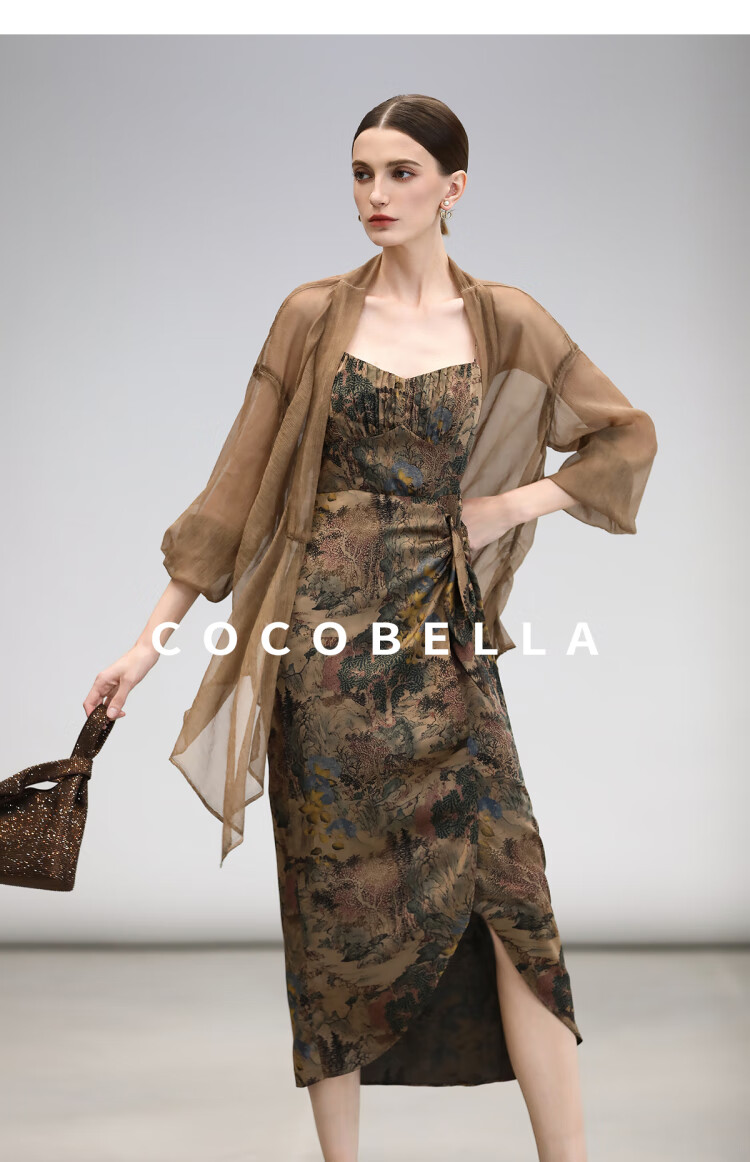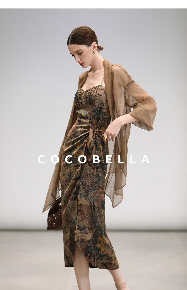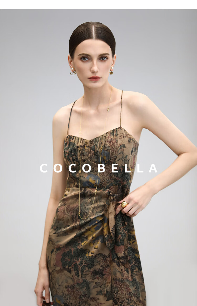 【限时秒杀】COCOBELLA[清平乐]新中式缎面印花吊带裙夏国风连衣裙FR0012