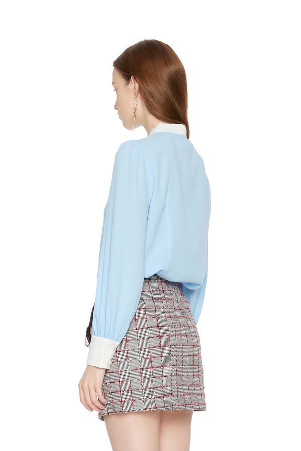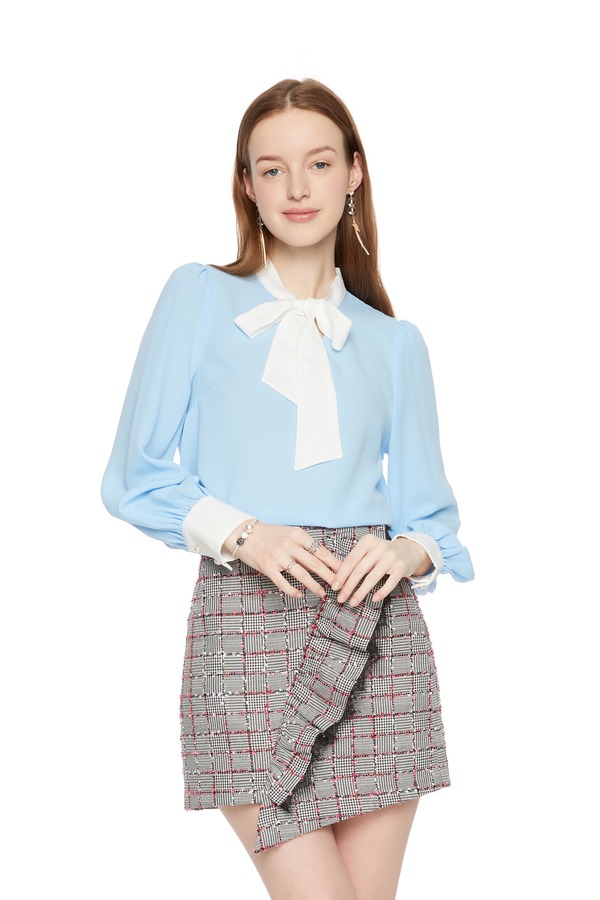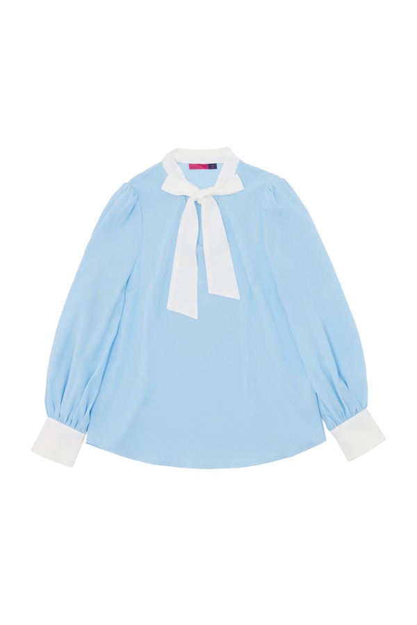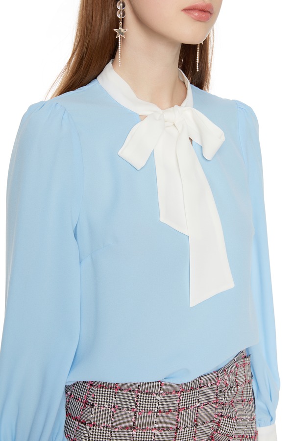 AVA 蓝白拼色系带上衣 6046