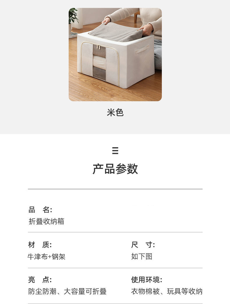 【超值4个装】汇奇宜 2件装牛津布大容量收纳箱66L 简约风 承重强 防尘加厚