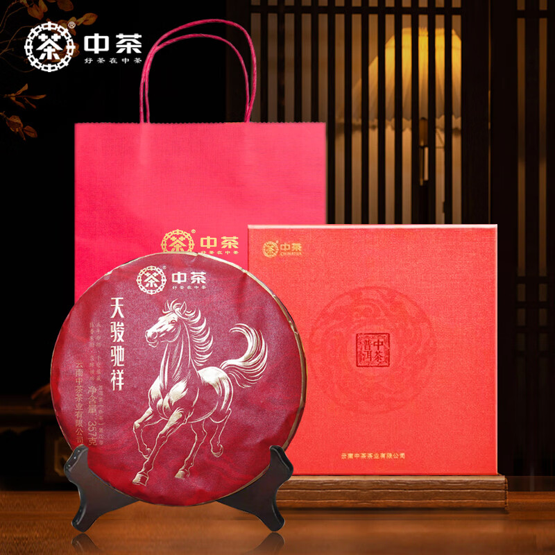 中粮-中茶2026年中茶天骏驰祥马年生肖普洱茶熟茶357克/饼(不带礼盒)