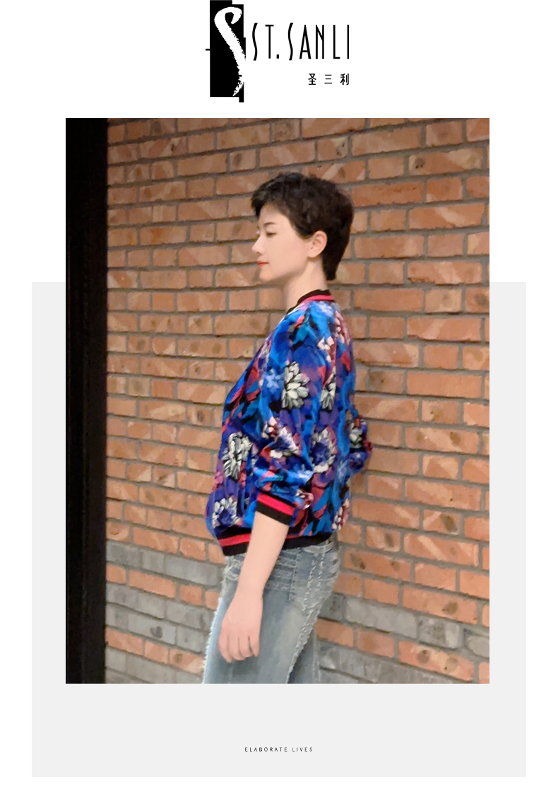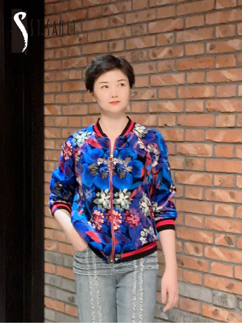 圣三利女装 新款时尚运动丝绒面卫衣外套拉链开衫SL1912103