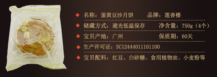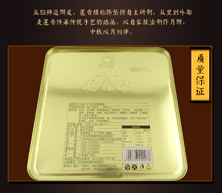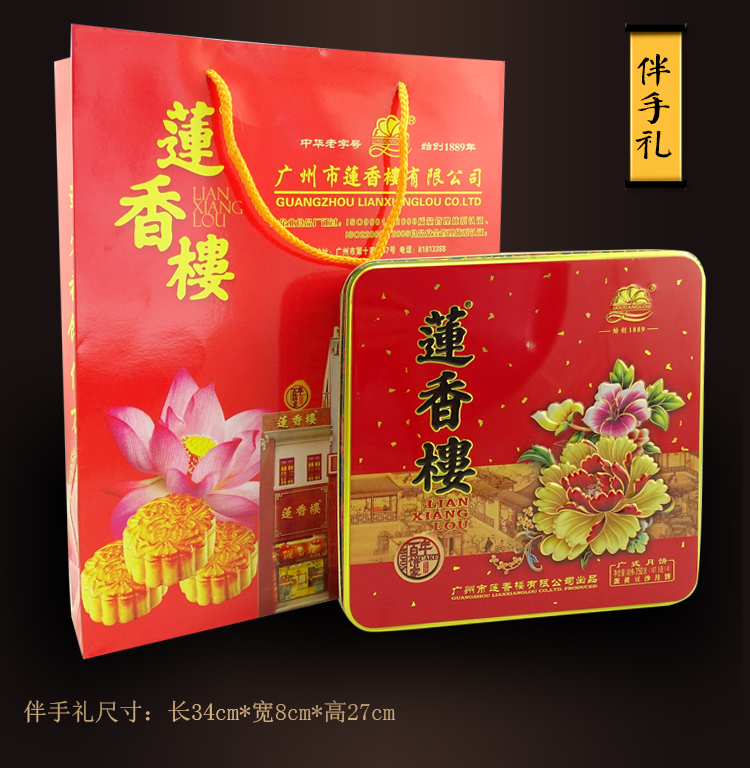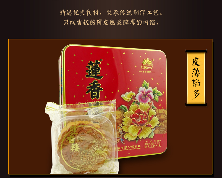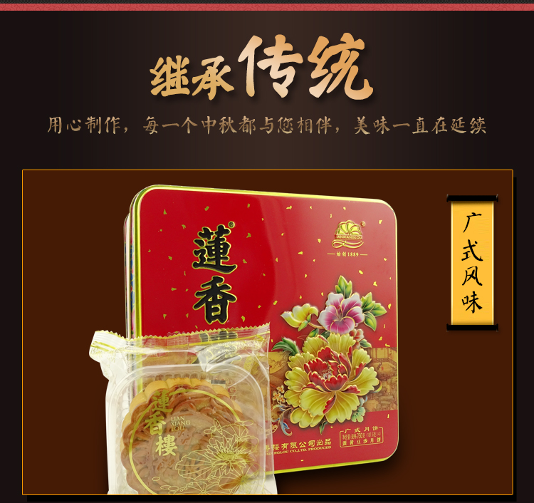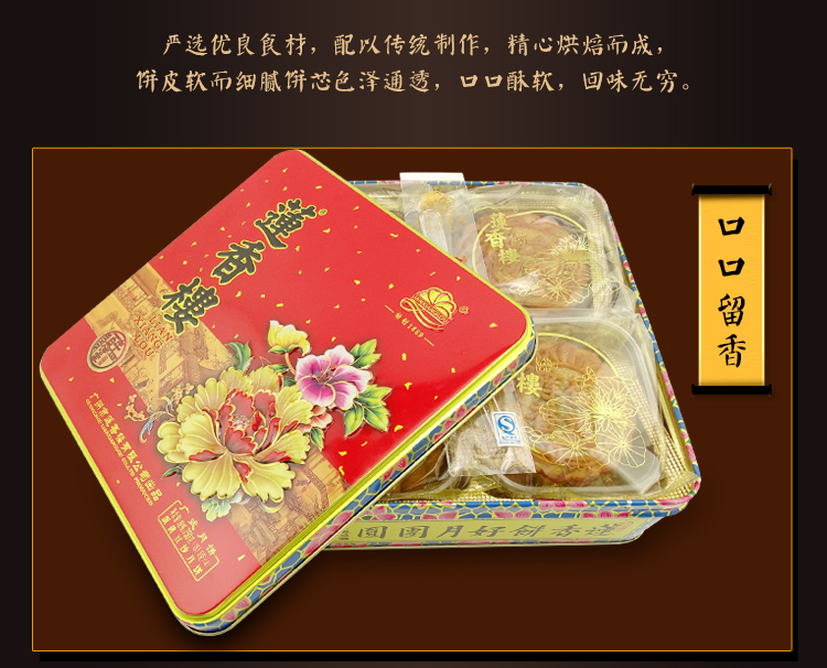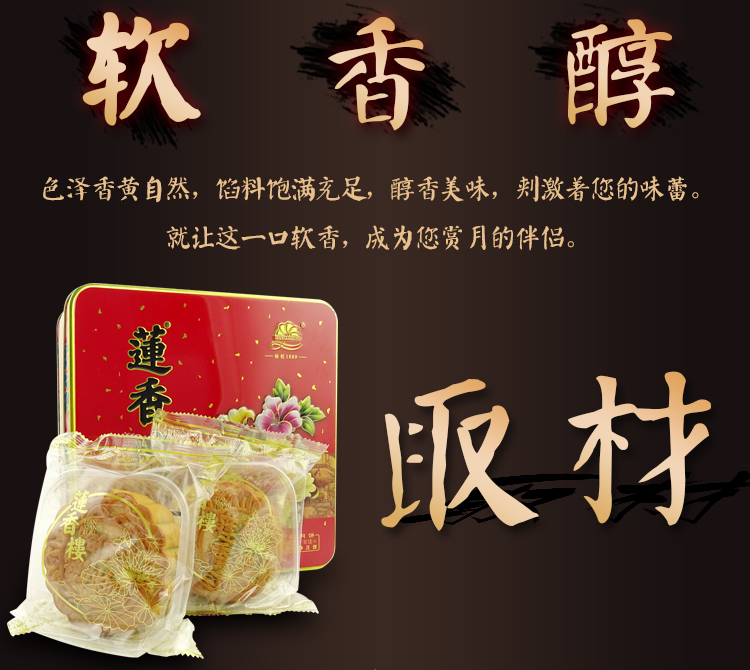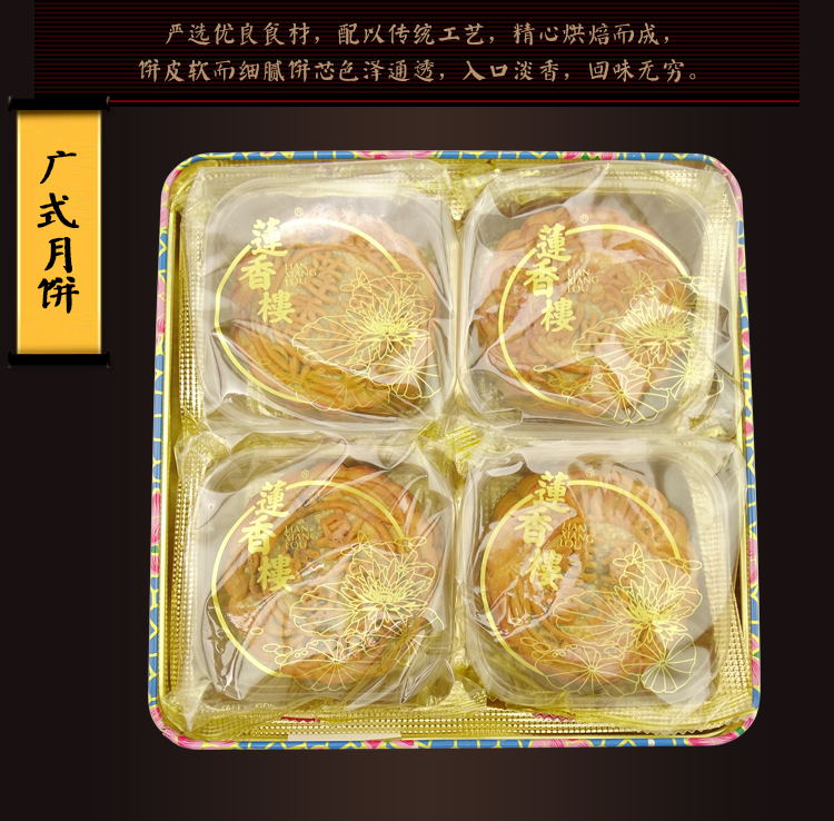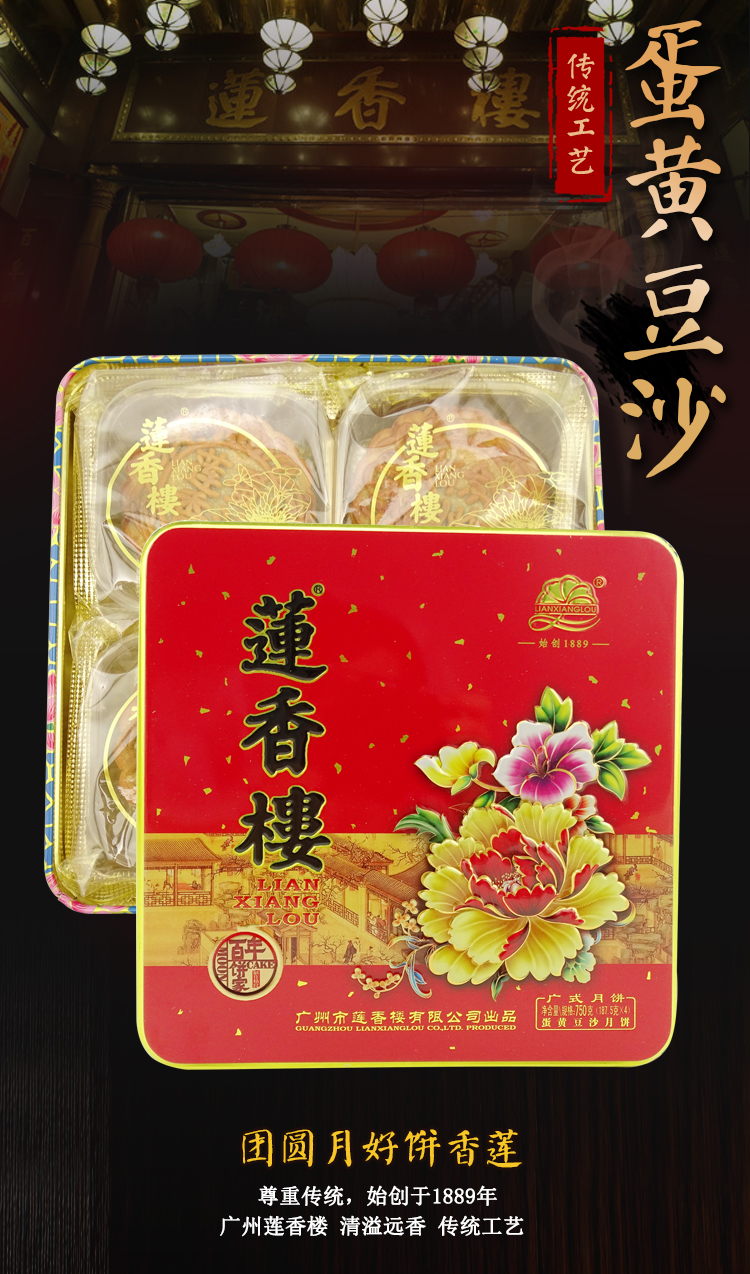 莲香楼经典款 | 蛋黄豆沙月饼187.5g*4粒铁盒装
