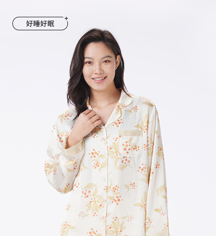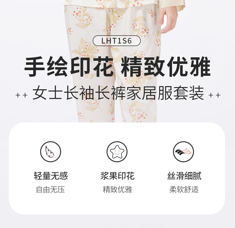 都市丽人睡衣好睡好眠长袖家居服冰雪丝提花薄女士丝质套装LHT1S6