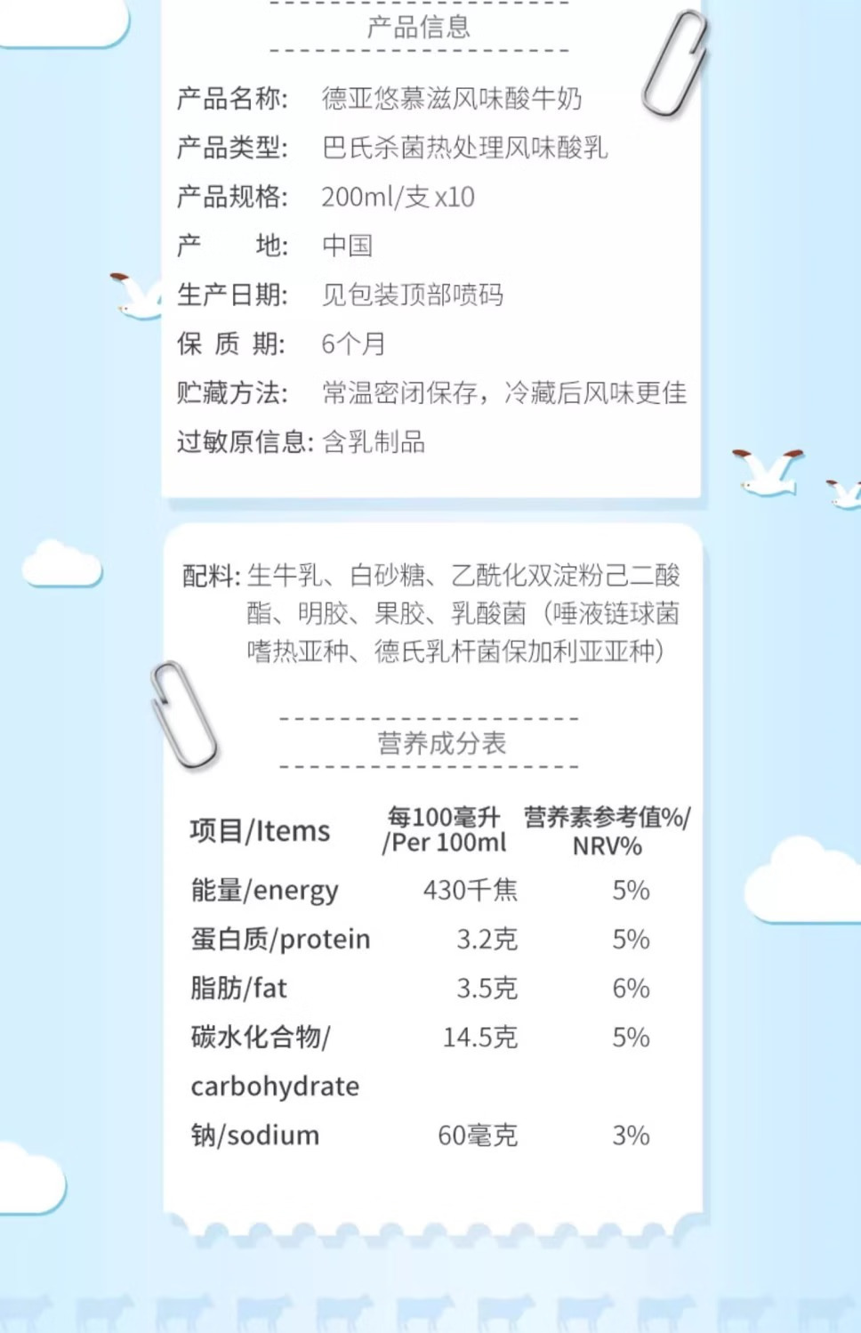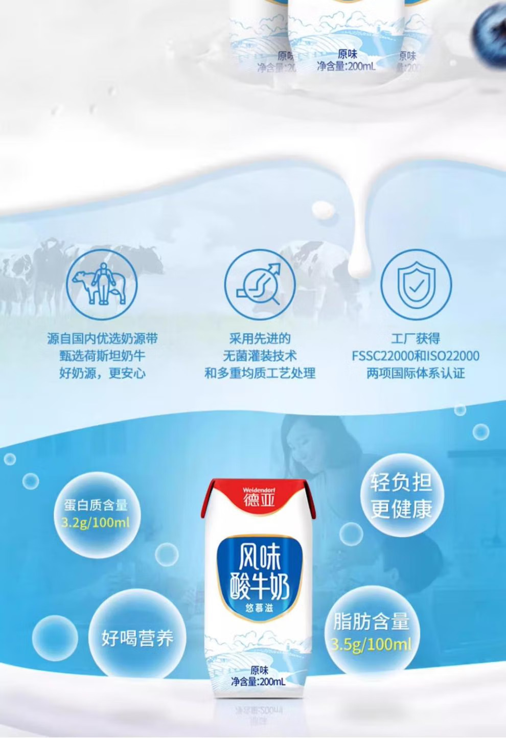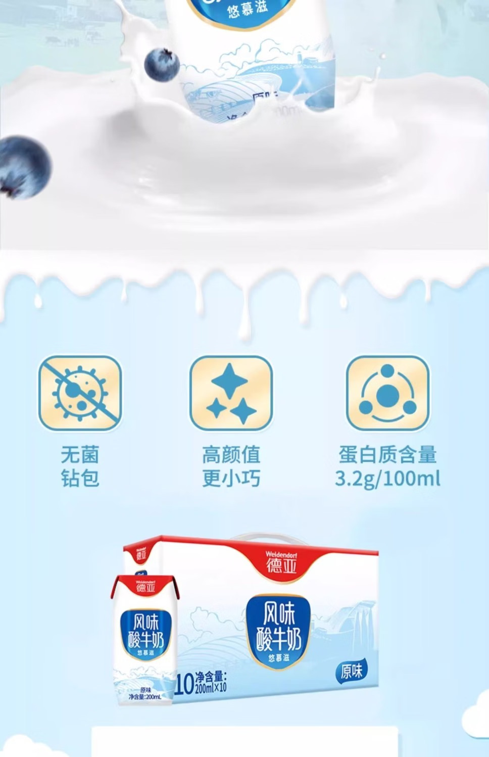 德亚(Weidendorf)【国产】常温原味酸牛奶200ml*10盒下午茶高端礼盒装送礼