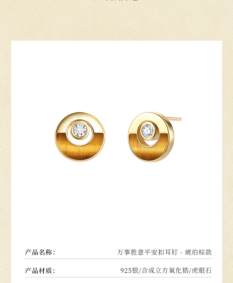 FANCI范琦x宫主 万事胜意平安扣耳钉琥珀棕女新款国风新中式轻奢送妈妈送女友