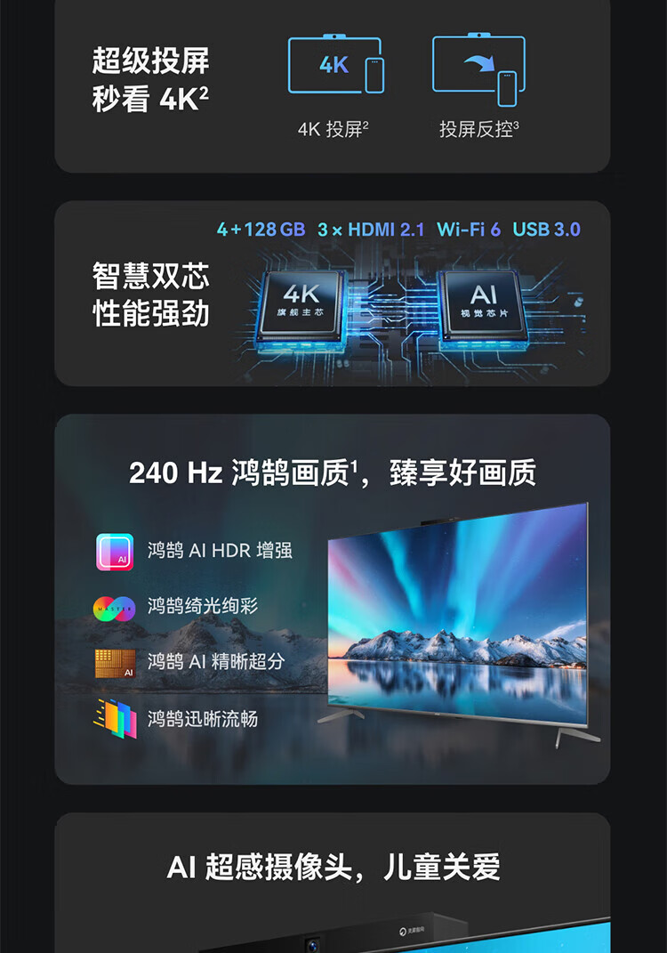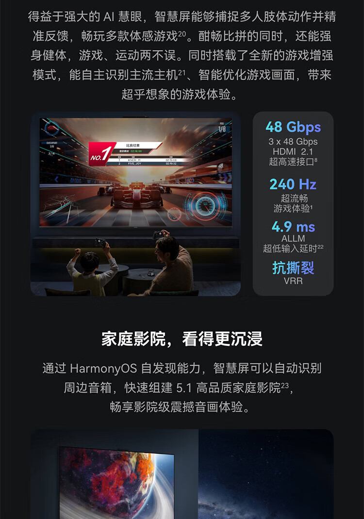 华为智慧屏 S5 Pro 65英寸 New 灵犀指向遥控 240Hz高刷 4K超高清液晶智能投屏平板电视机HD65WATN