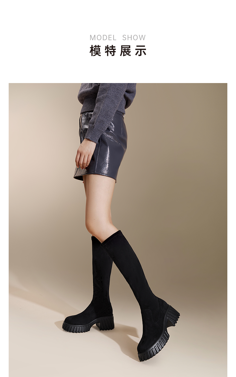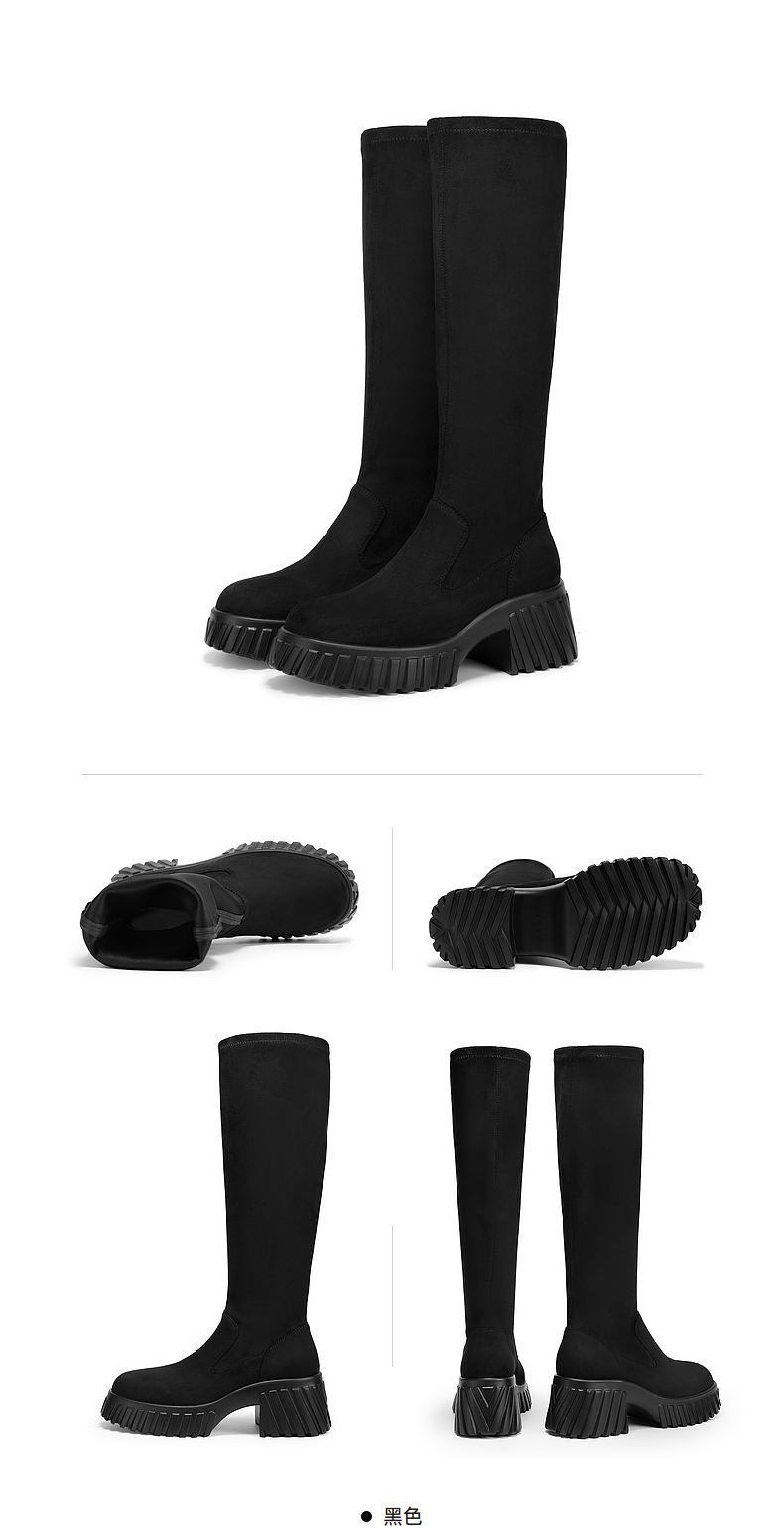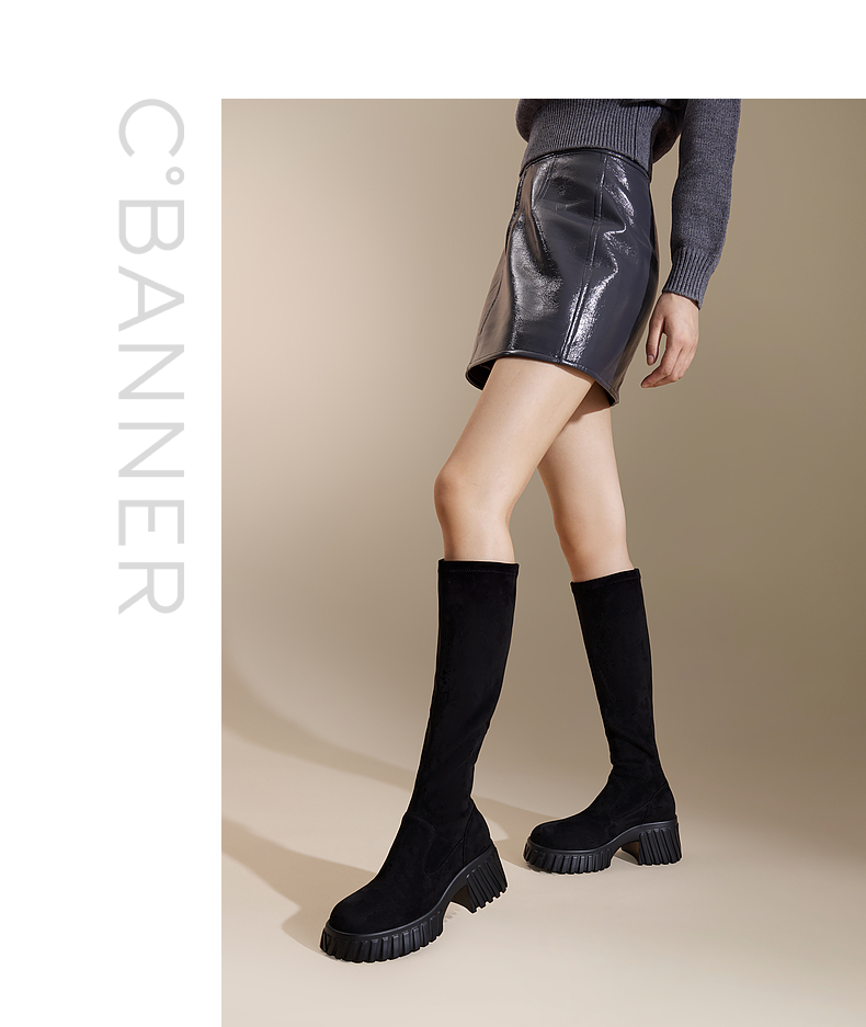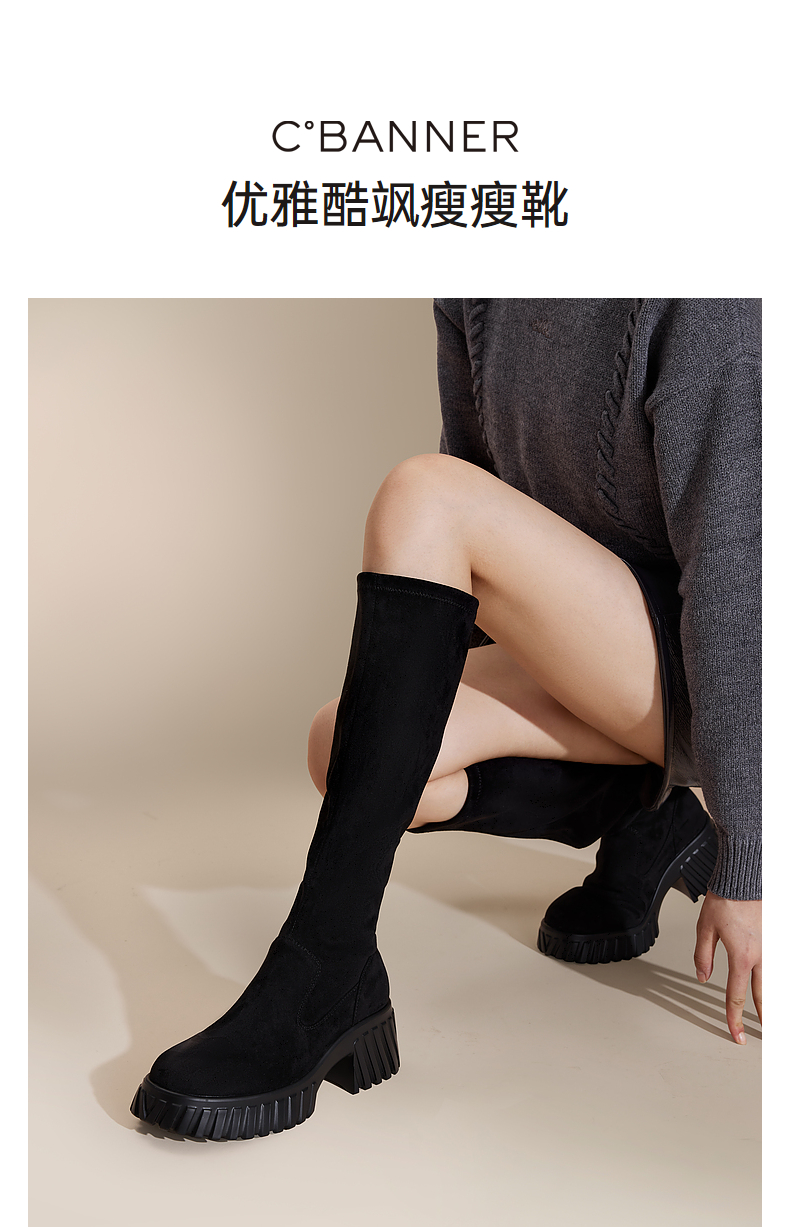 千百度厚底高筒弹力靴袜靴女冬季瘦瘦靴增高显瘦气质长靴A24506325