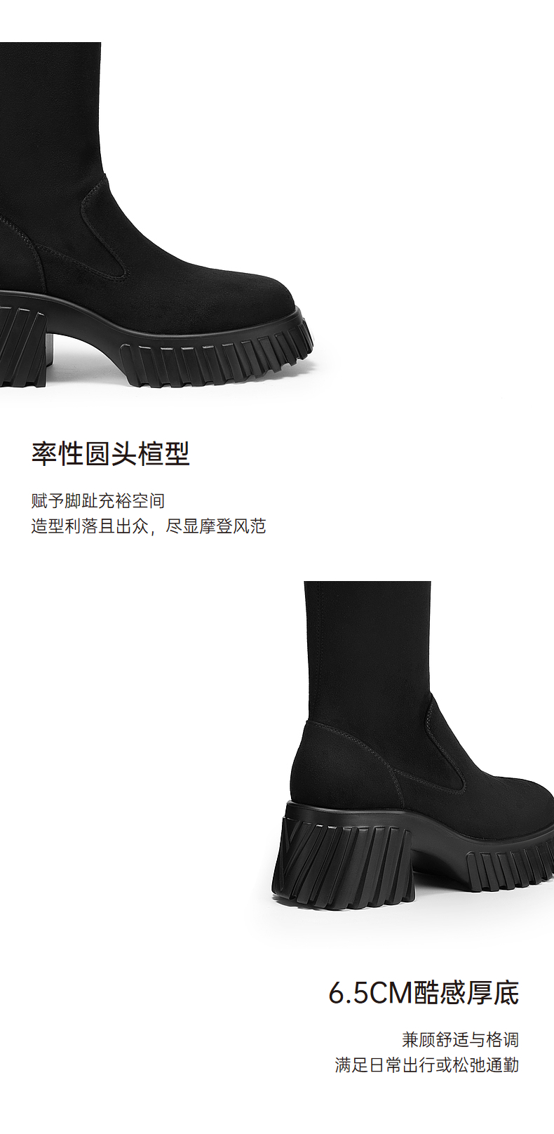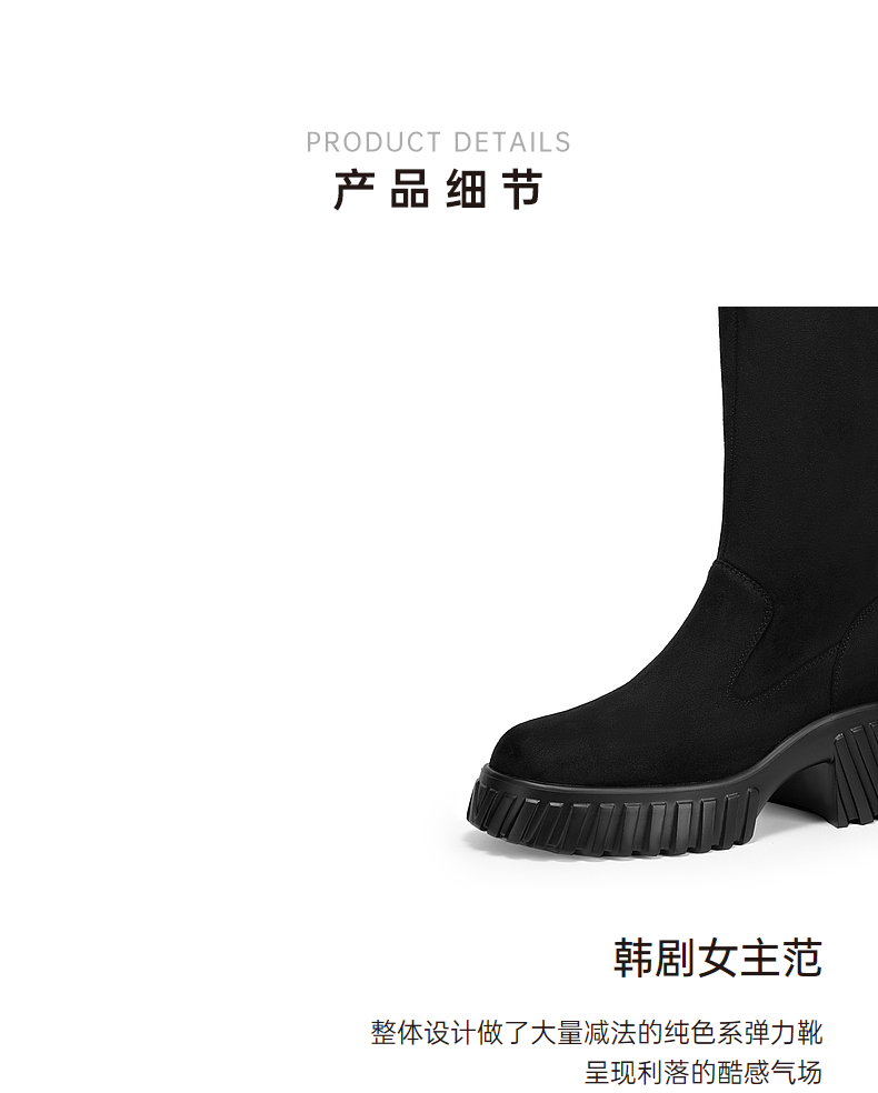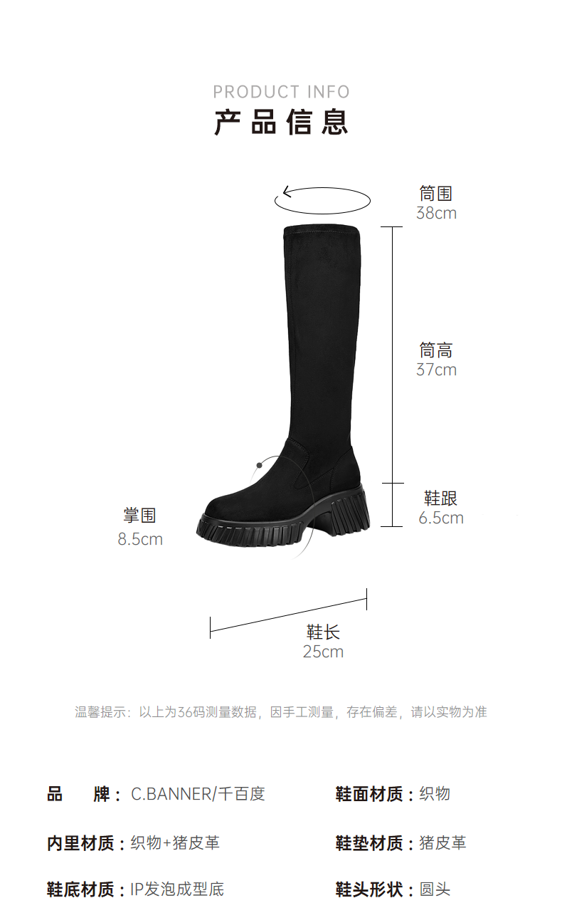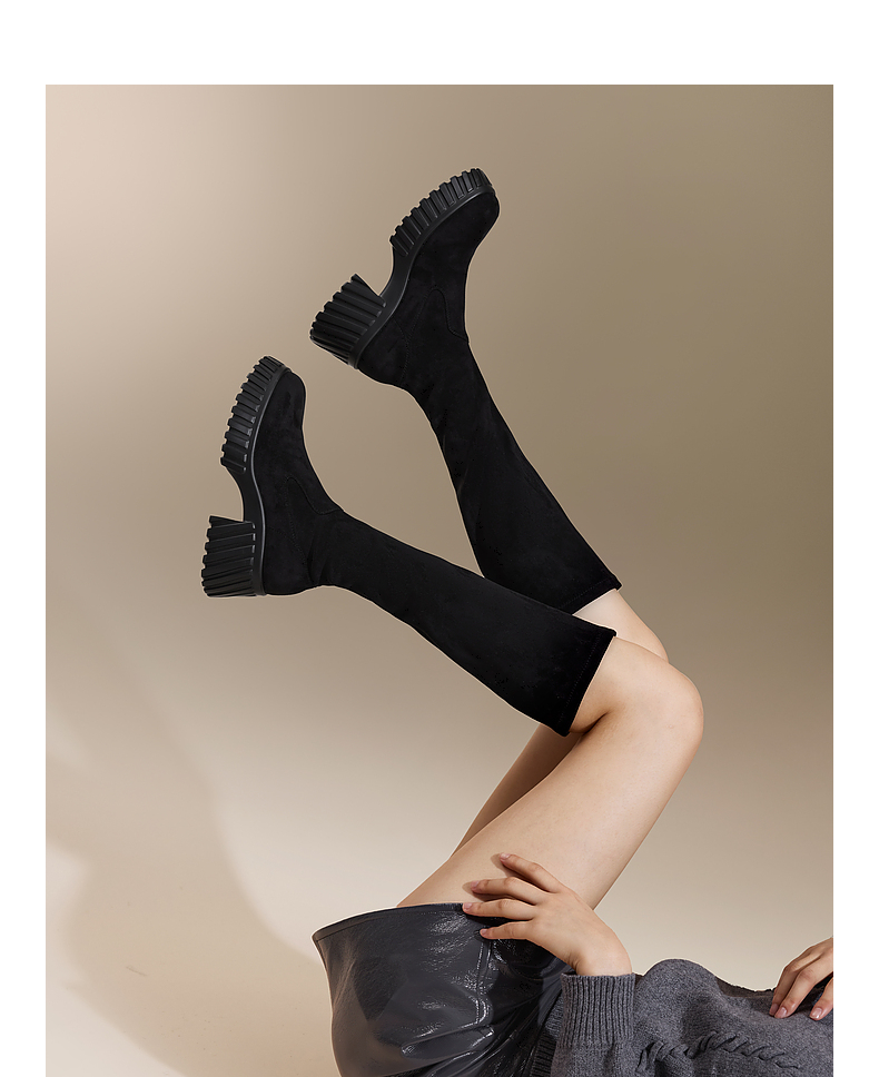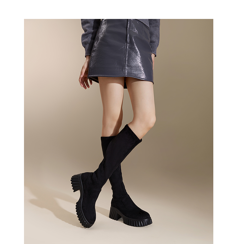 千百度厚底高筒弹力靴袜靴女冬季瘦瘦靴增高显瘦气质长靴A24506325