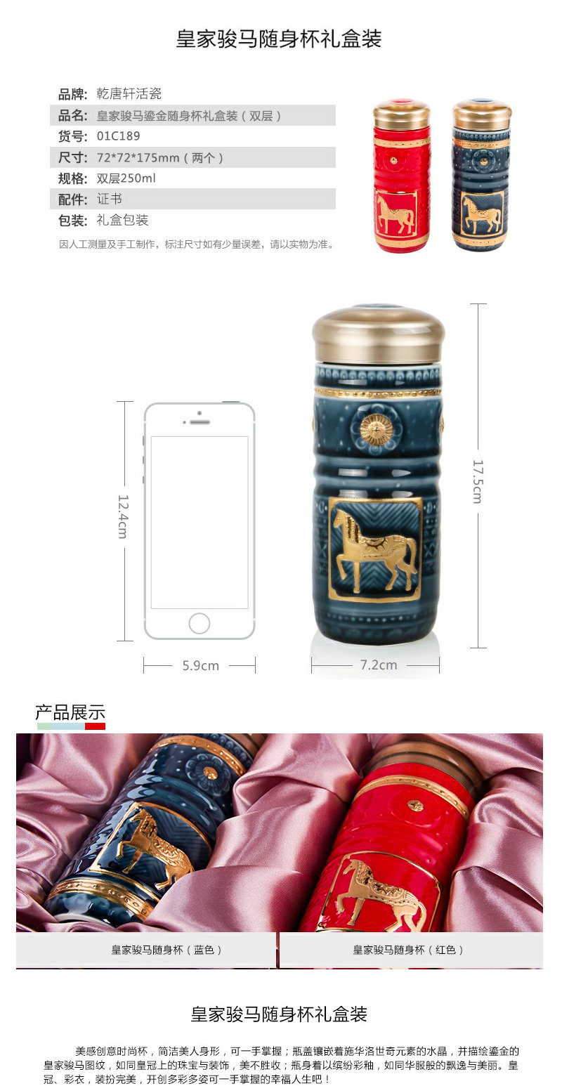乾唐轩皇家骏马礼盒装随身杯带金(兰+中国红)