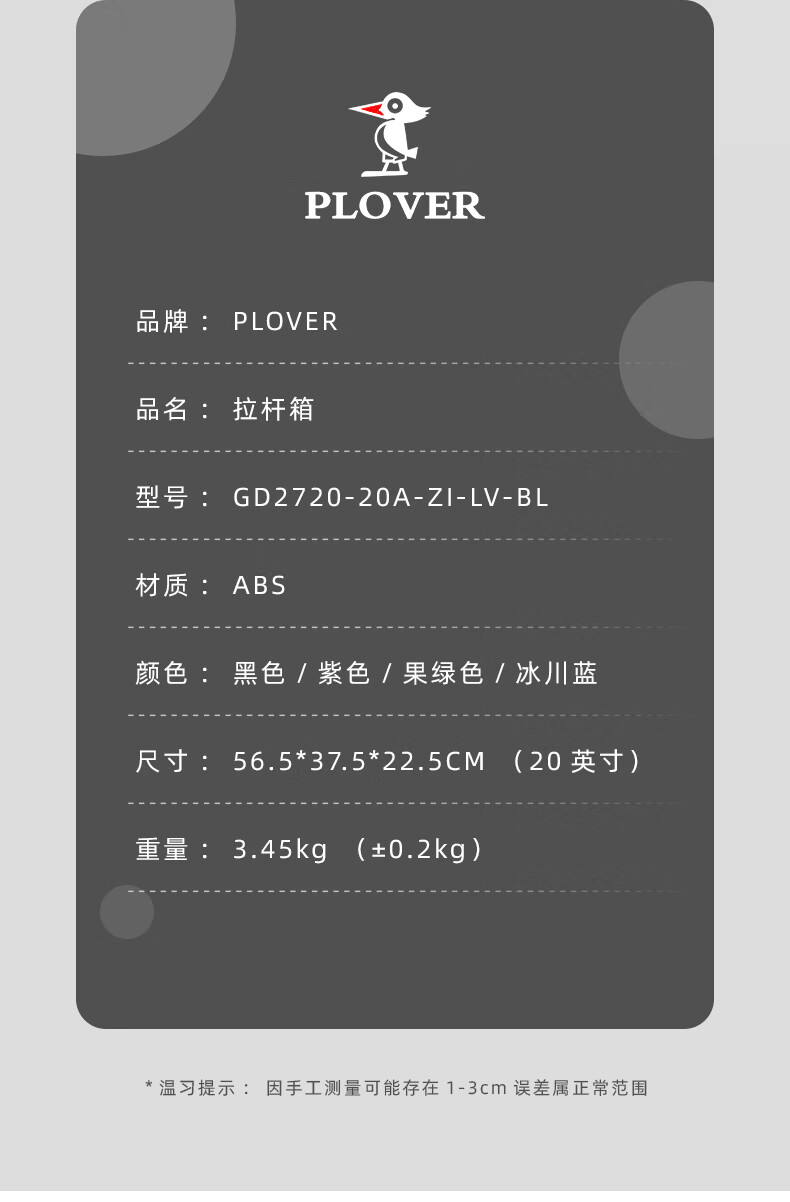 【多样屋专柜】PLOVER香港啄木鸟20英寸拉链款拉杆箱行李箱