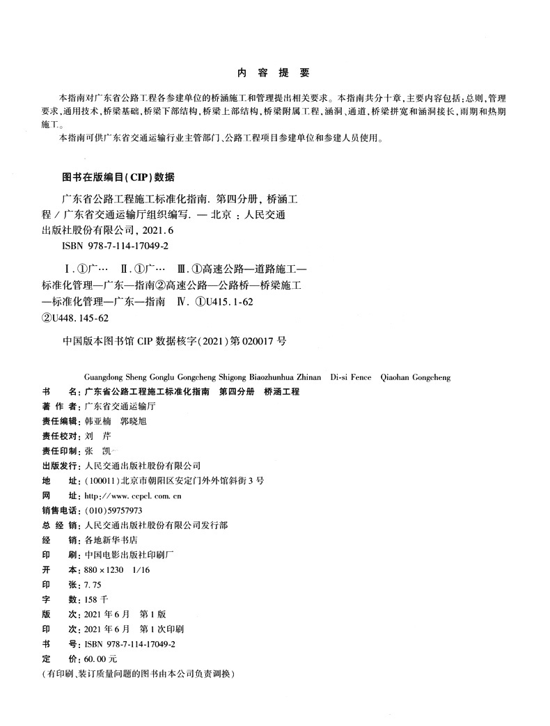 书名:广东省公路施工标准化指南 第四分册 桥涵工程