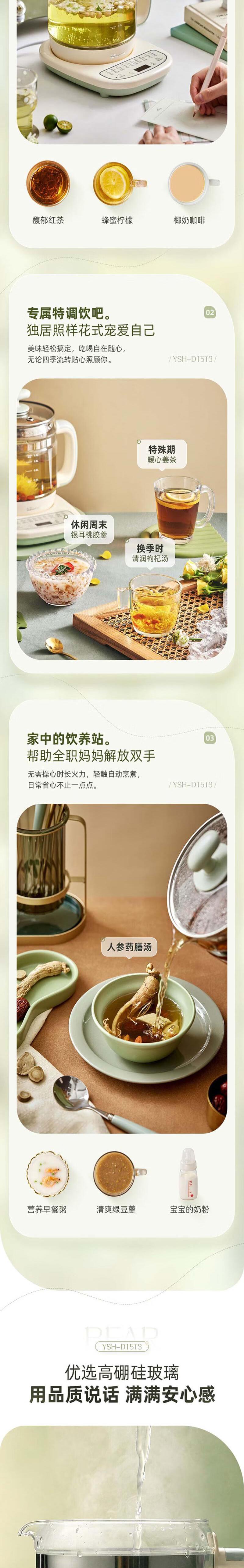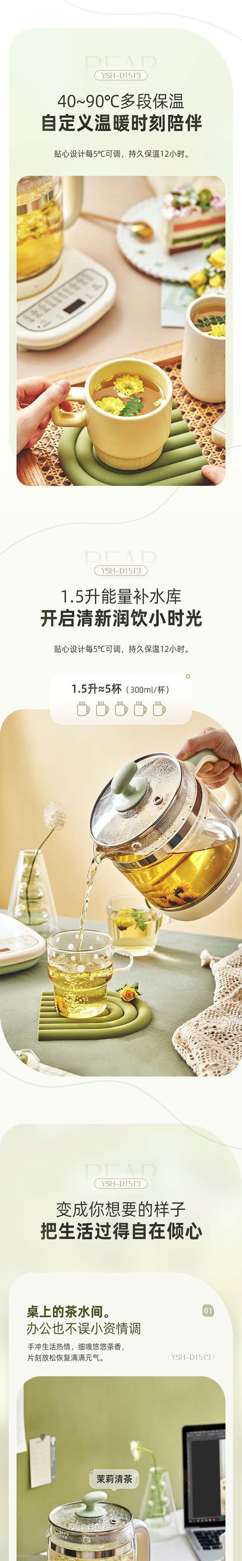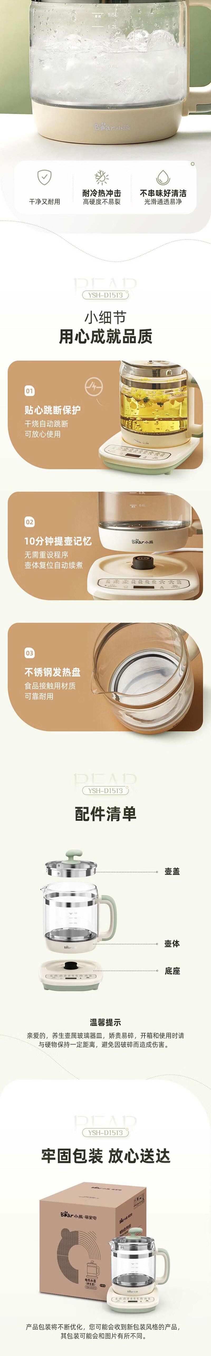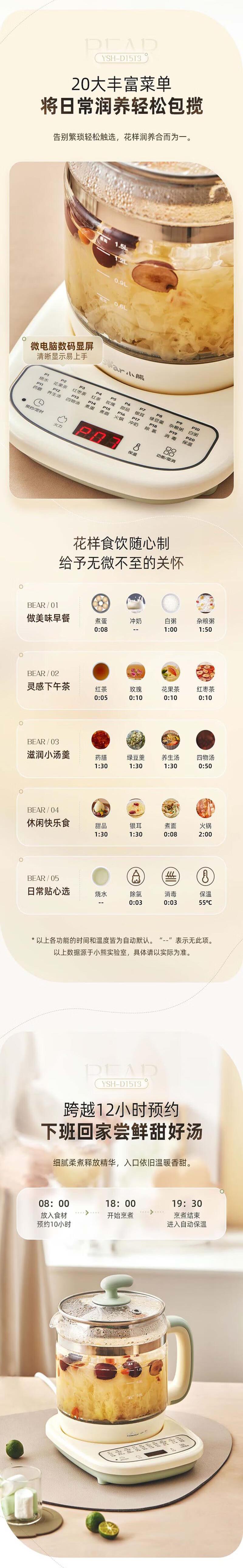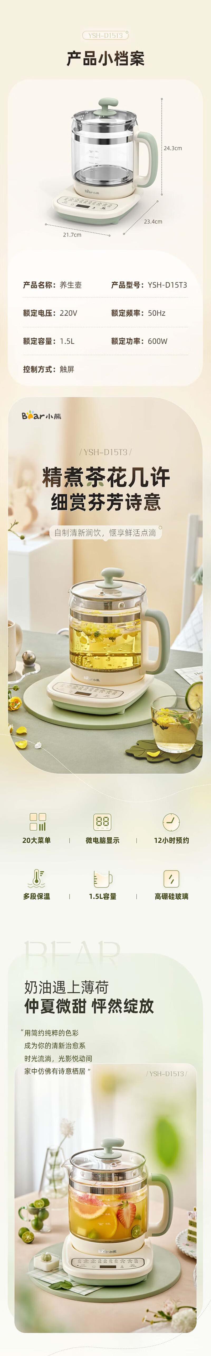 【自营】小熊(Bear)1.5L养生壶 YSH-D15T3 YSH-D15T3多功能炖煮保温预约定时花茶药膳全自动