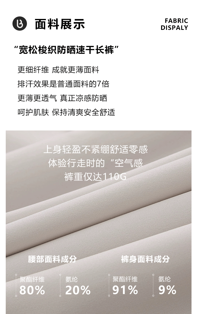 beemen夏季高腰薄款 直筒阔腿宽松长裤 速干轻薄 防晒清凉丝滑垂感 、轻盈透气