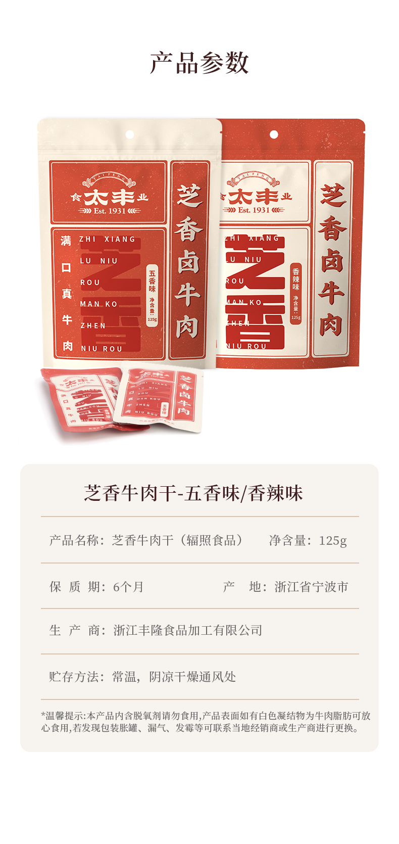 太丰·芝香牛肉干(香辣味) 125g