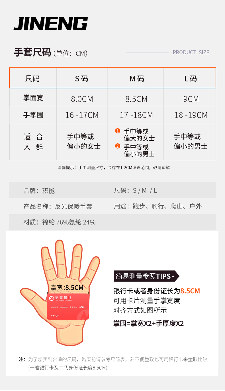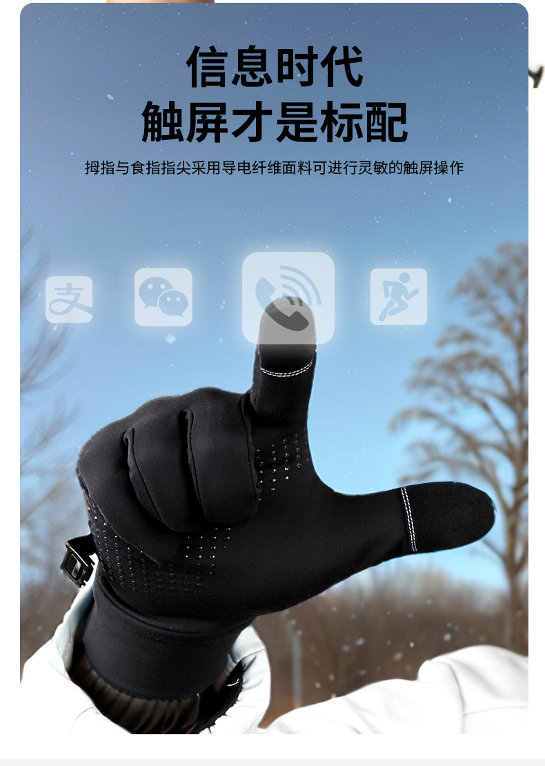 积能新款秋冬跑步运动户外男女通用保暖手套加绒触屏手套