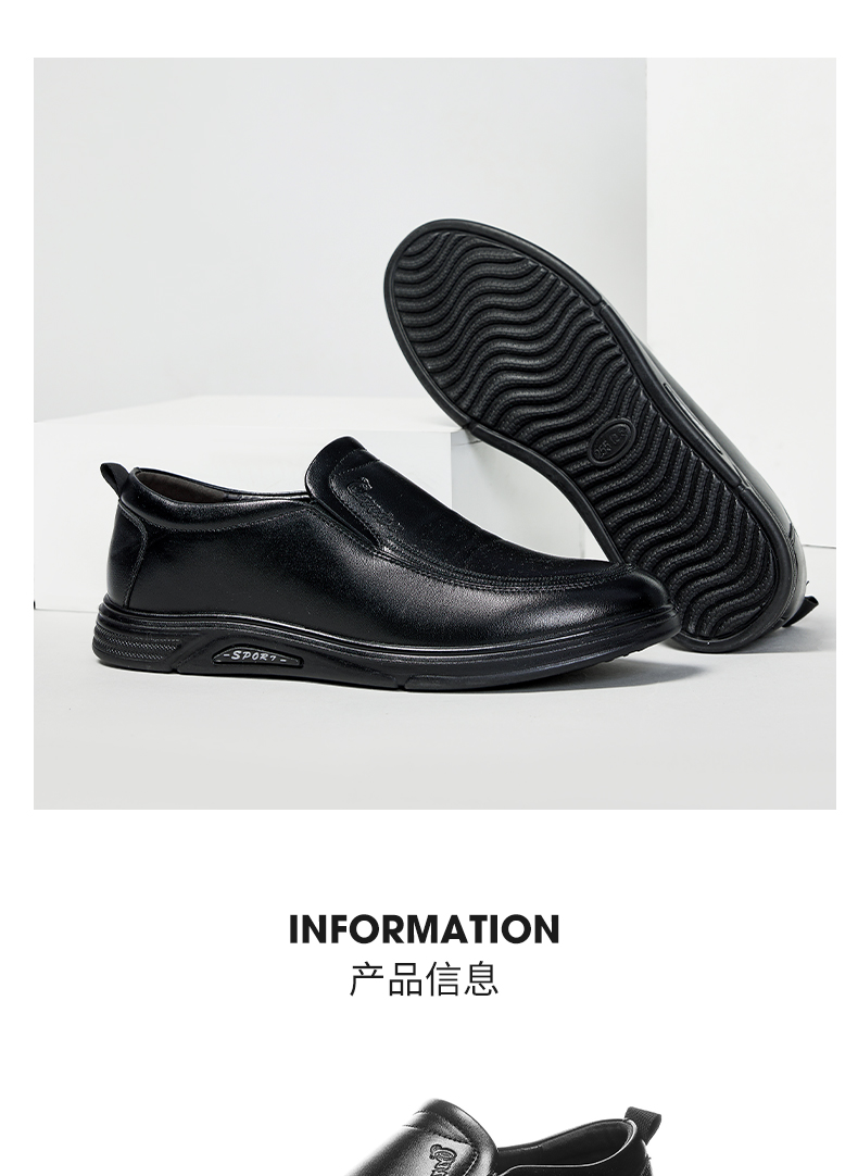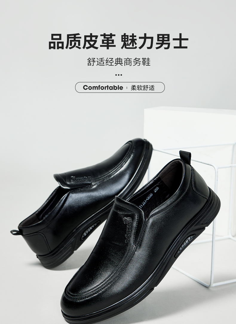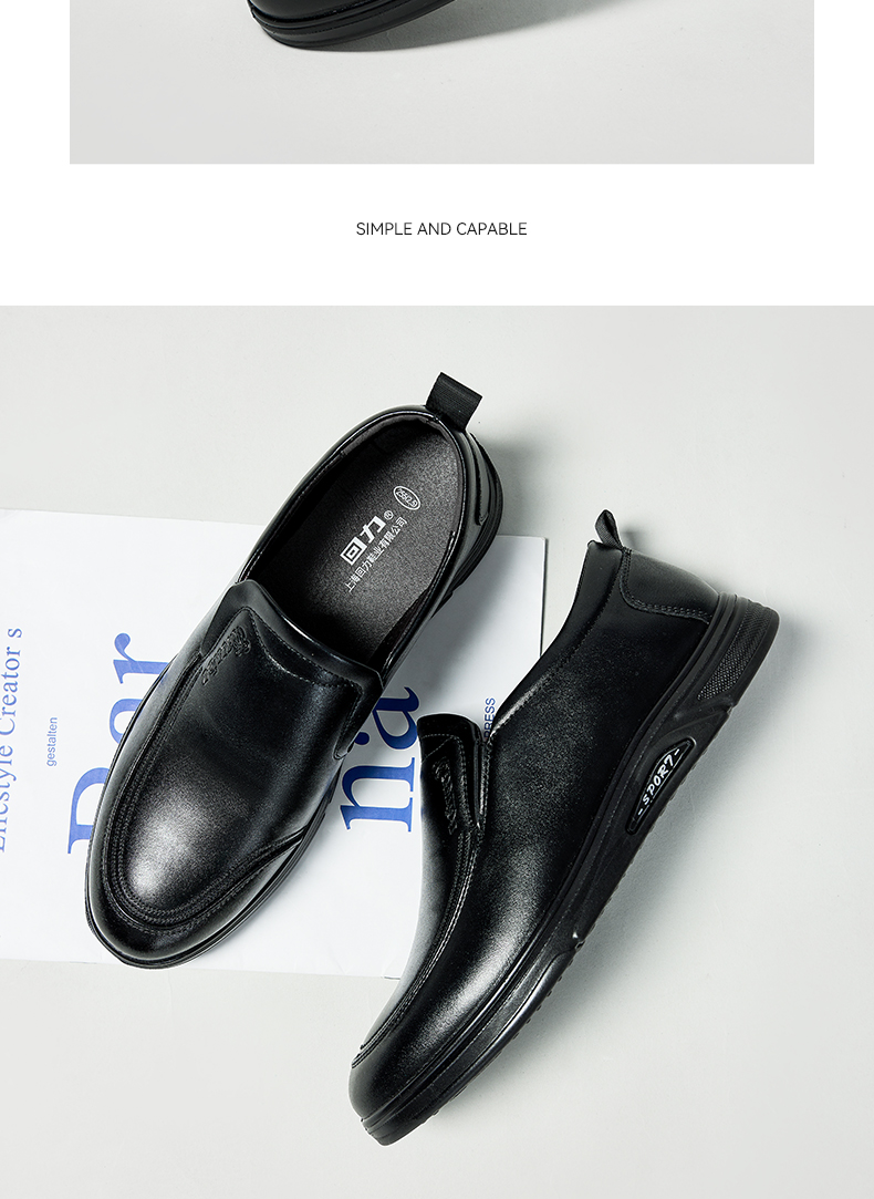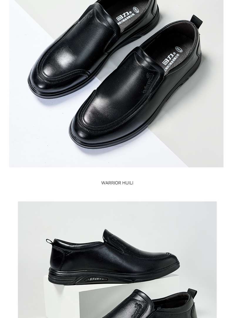 回力皮鞋男士2023新款一脚蹬懒人工作鞋软皮软底黑色商务休闲男鞋0035