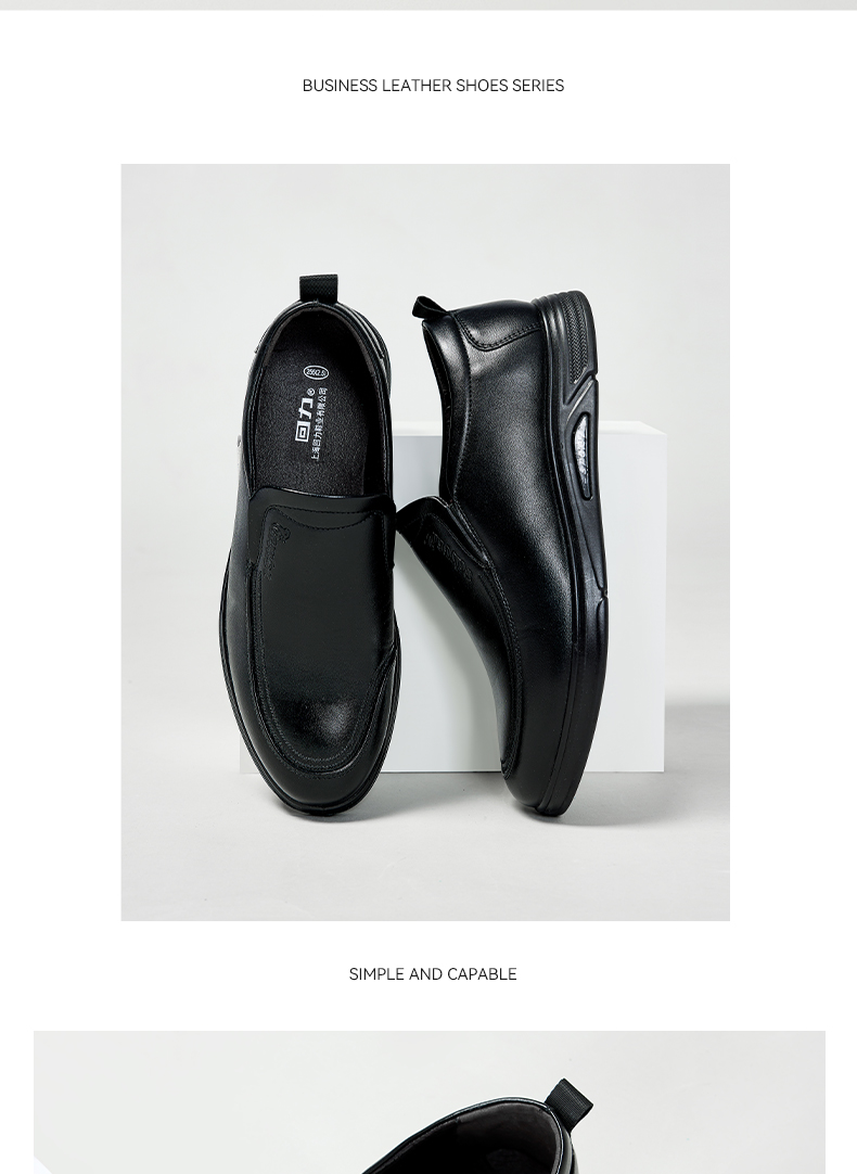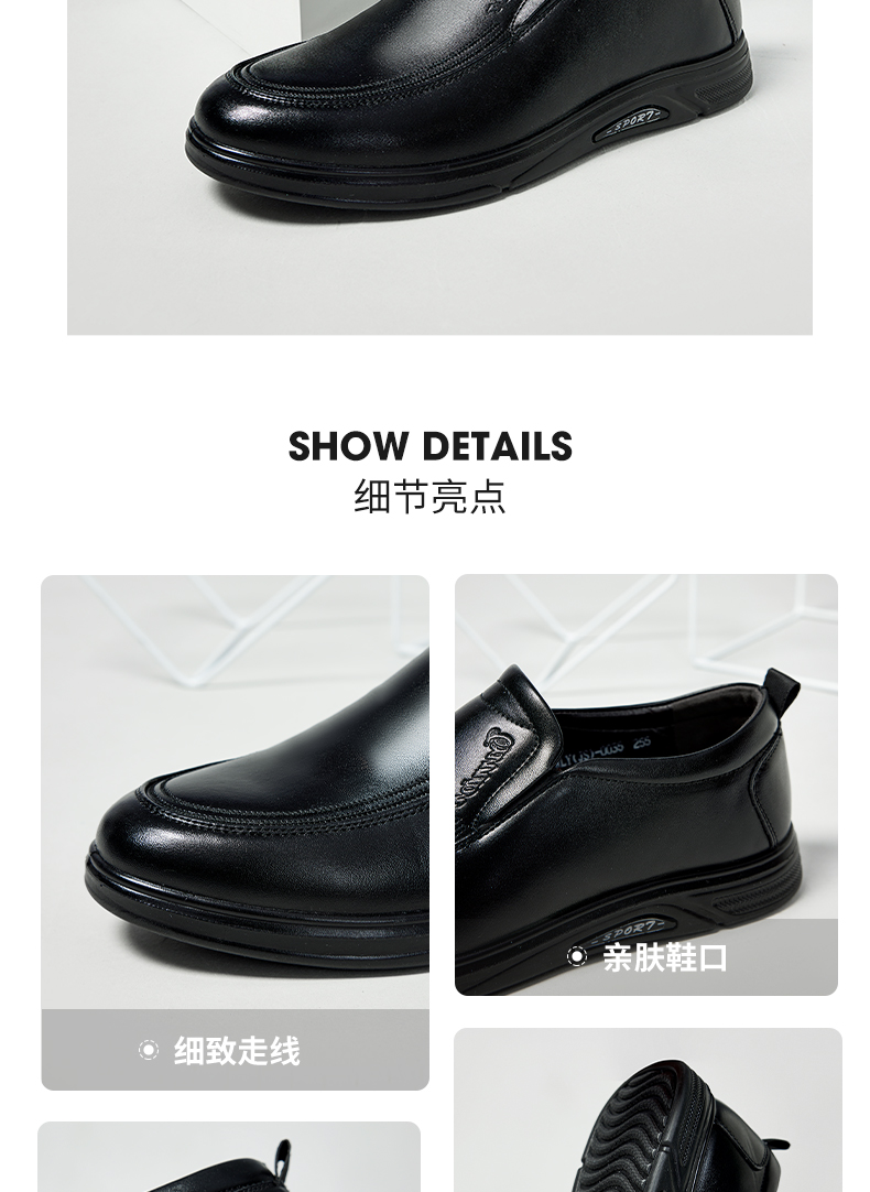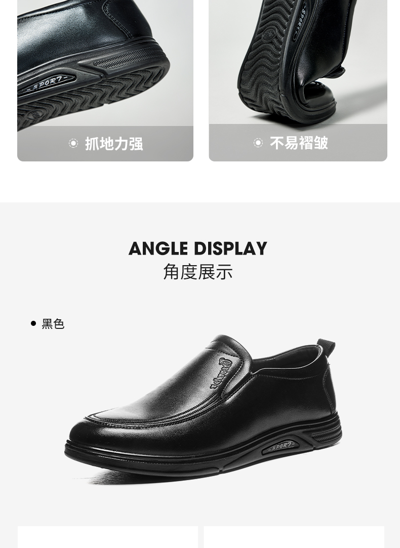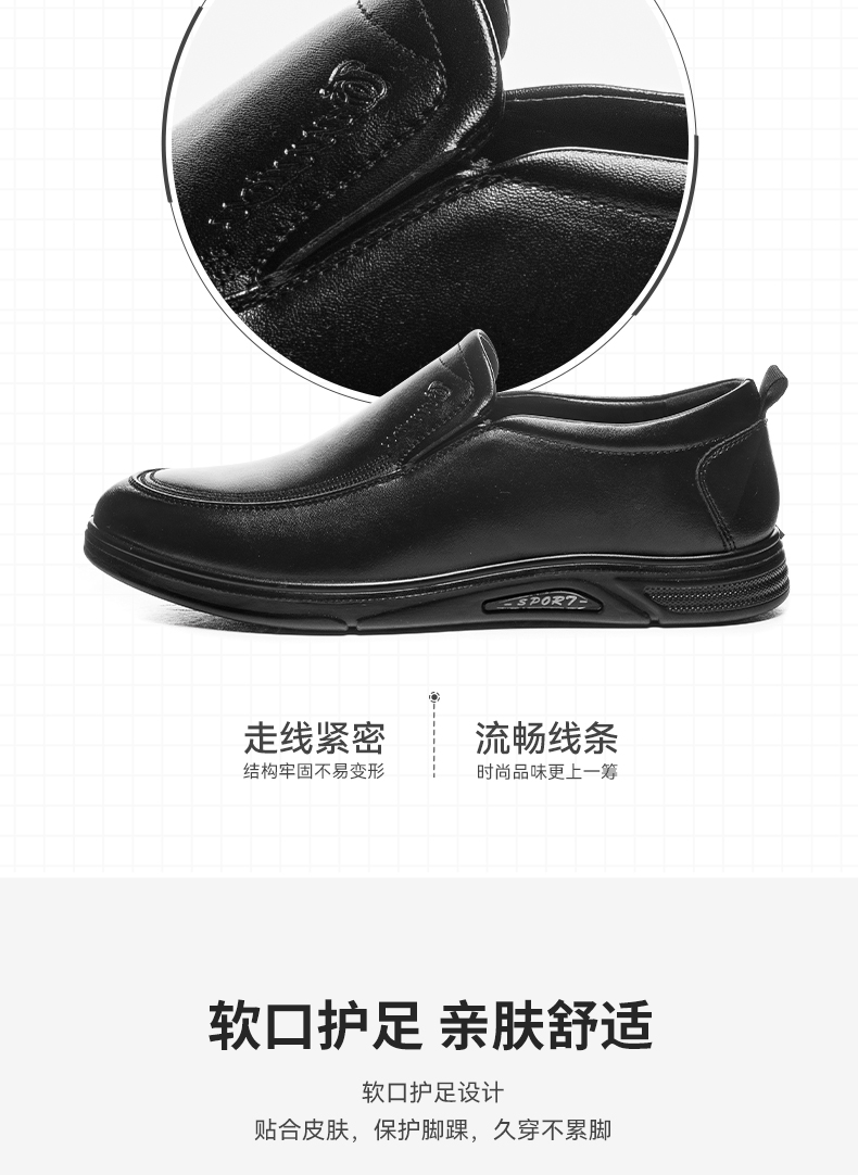 回力皮鞋男士2023新款一脚蹬懒人工作鞋软皮软底黑色商务休闲男鞋0035
