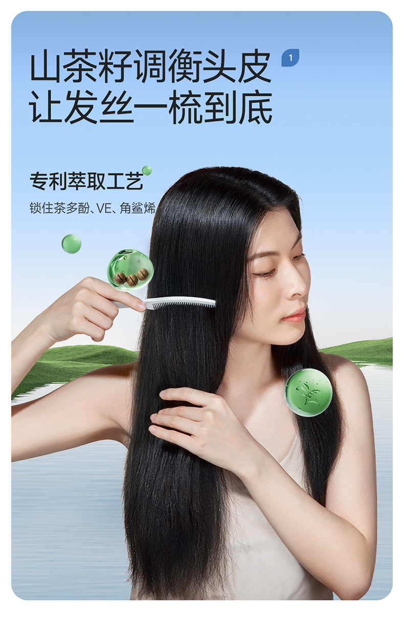 荷馨白参菌洗发露+荷馨发膜+梳子 增发密发固发修护滋养强韧蓬松-sy