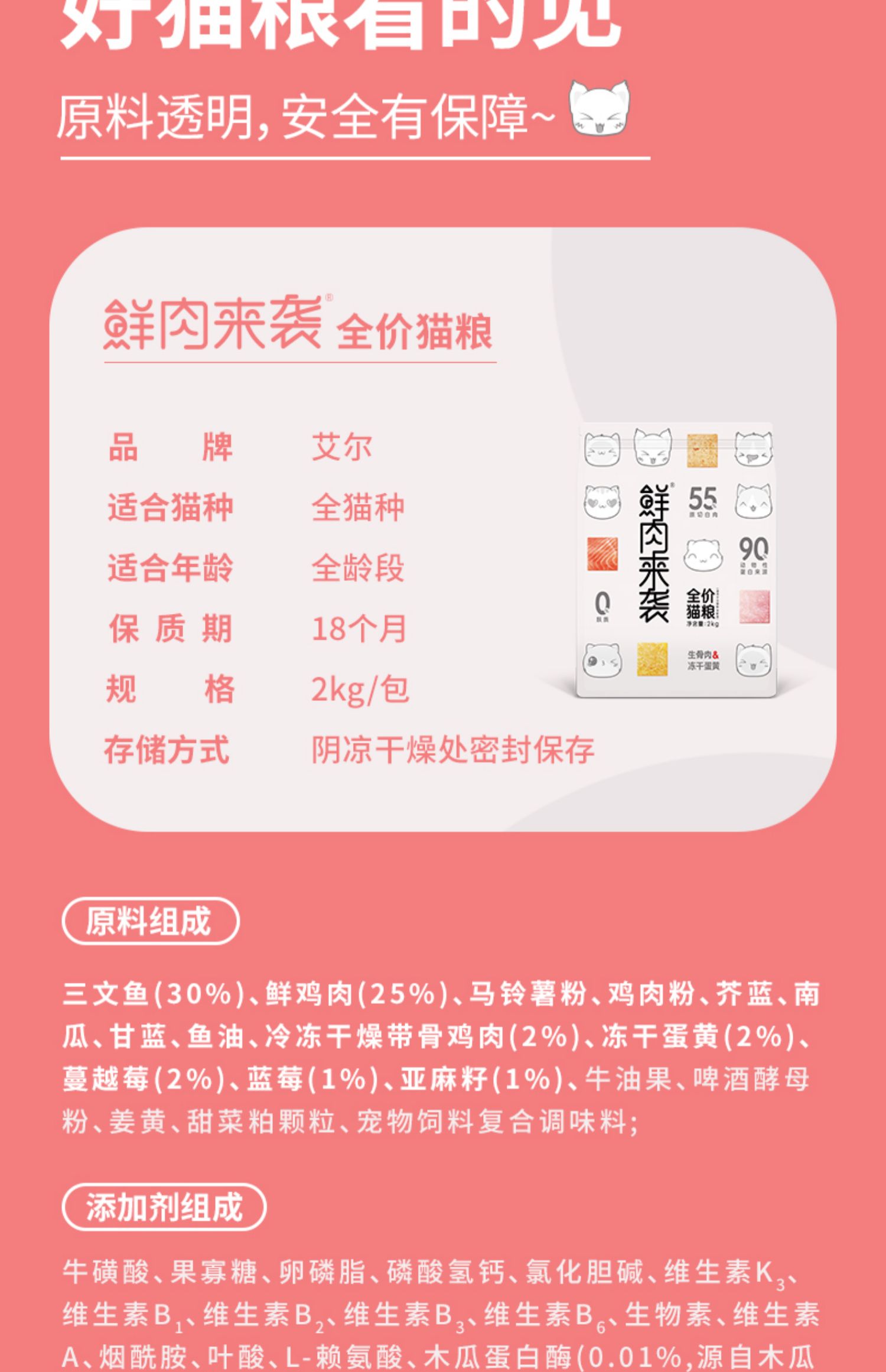 艾尔鲜肉来袭猫粮2kg 生骨肉蛋黄冻干双拼猫粮 成幼通用型猫粮4斤
