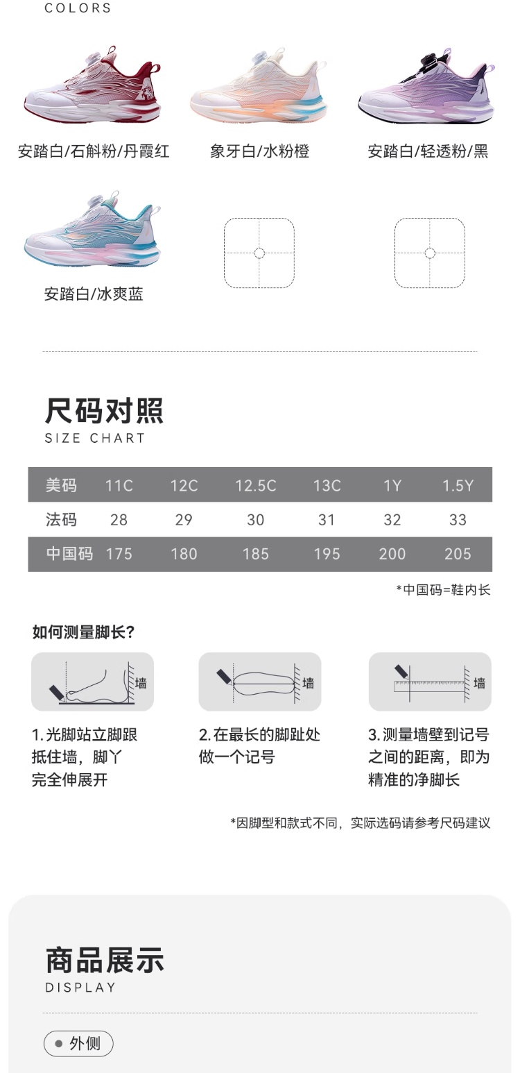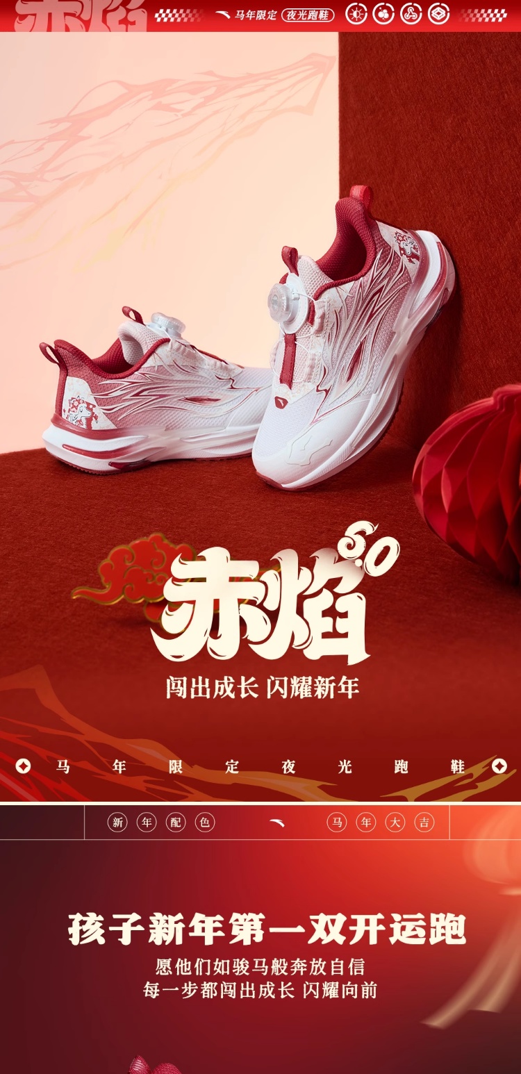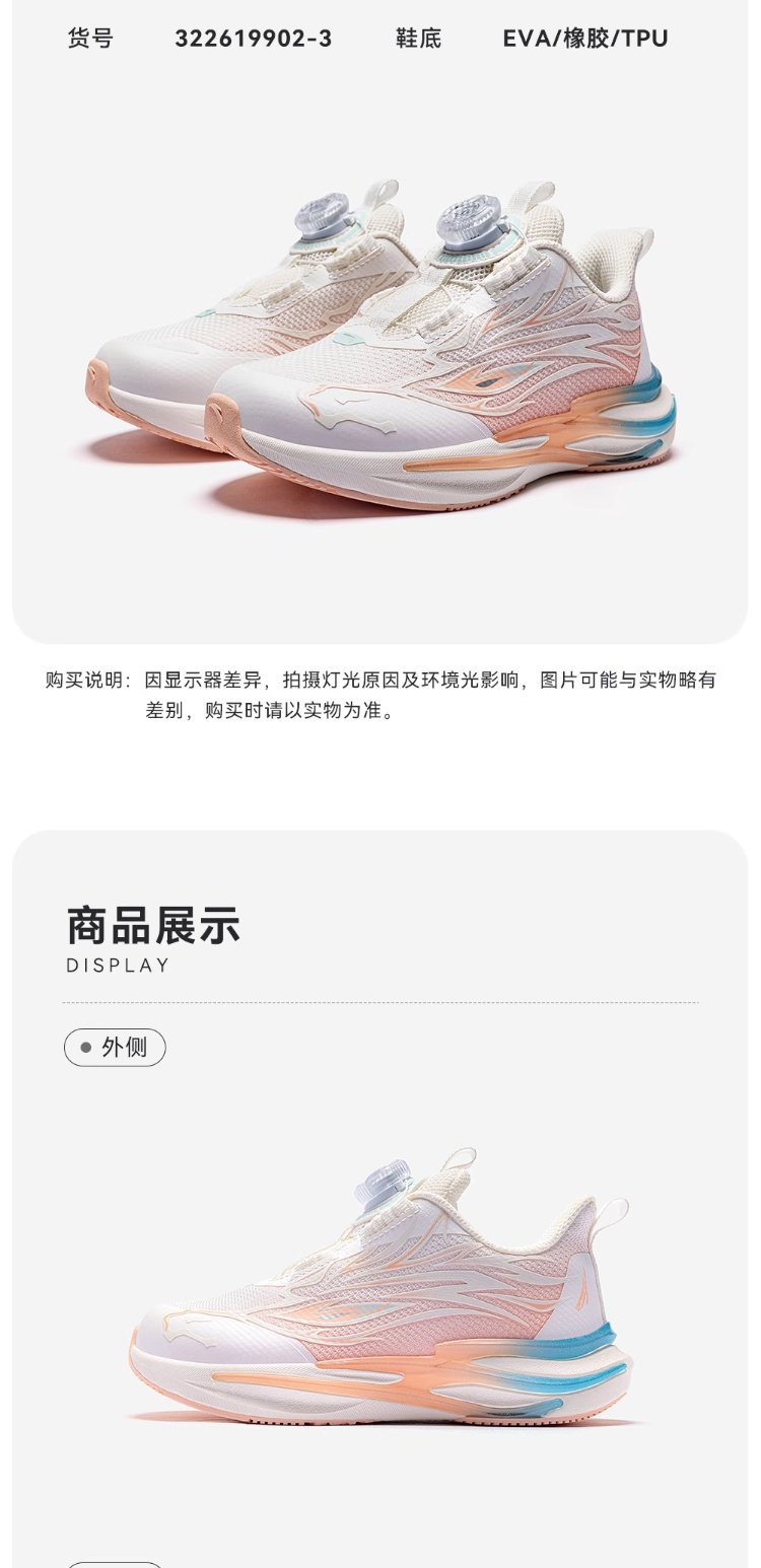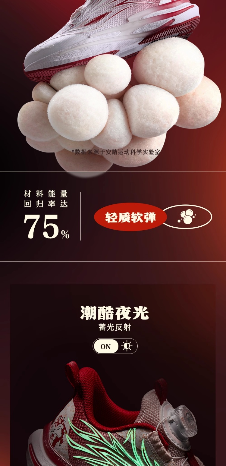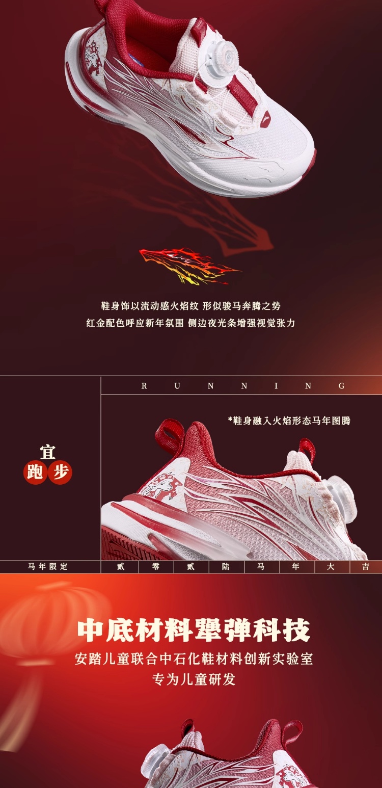 安踏童鞋2026新年赤焰6女小童冬季跑鞋儿童旋钮犟弹夜光跑步鞋322619902