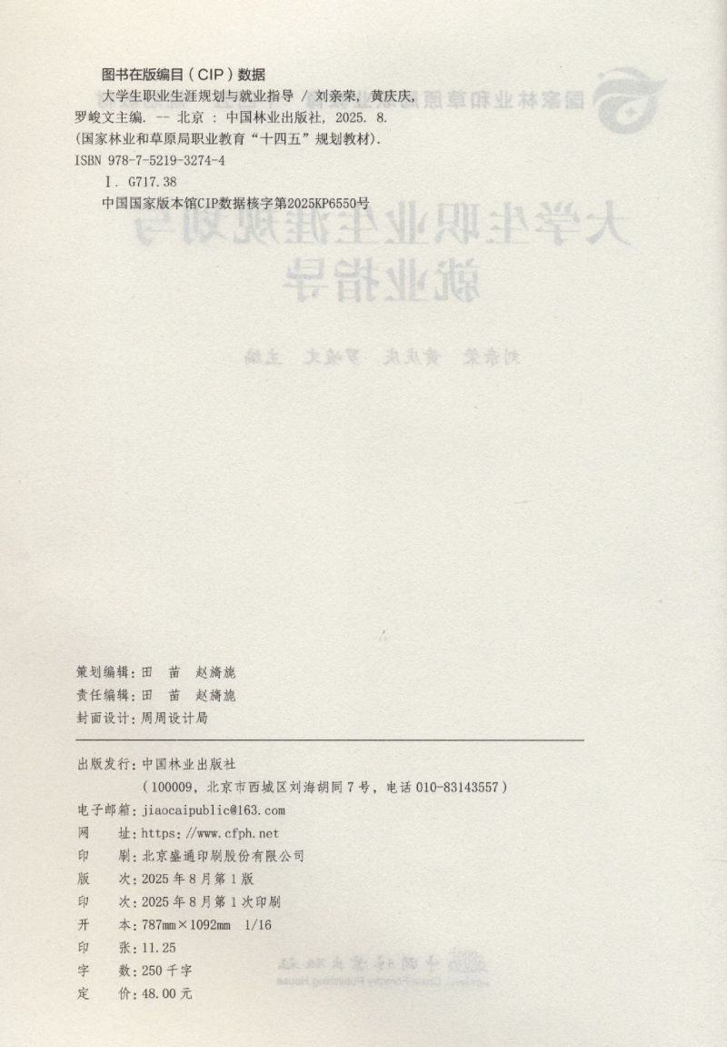 E大学生职业生涯规划与就业指导 &3274 国家林业和草原局职业教育十四五规划教材 大学生职业生涯规划与就业指导 刘亲荣等主编 含求职技巧/权益保护 高校毕业生适用 就业指导参考用书