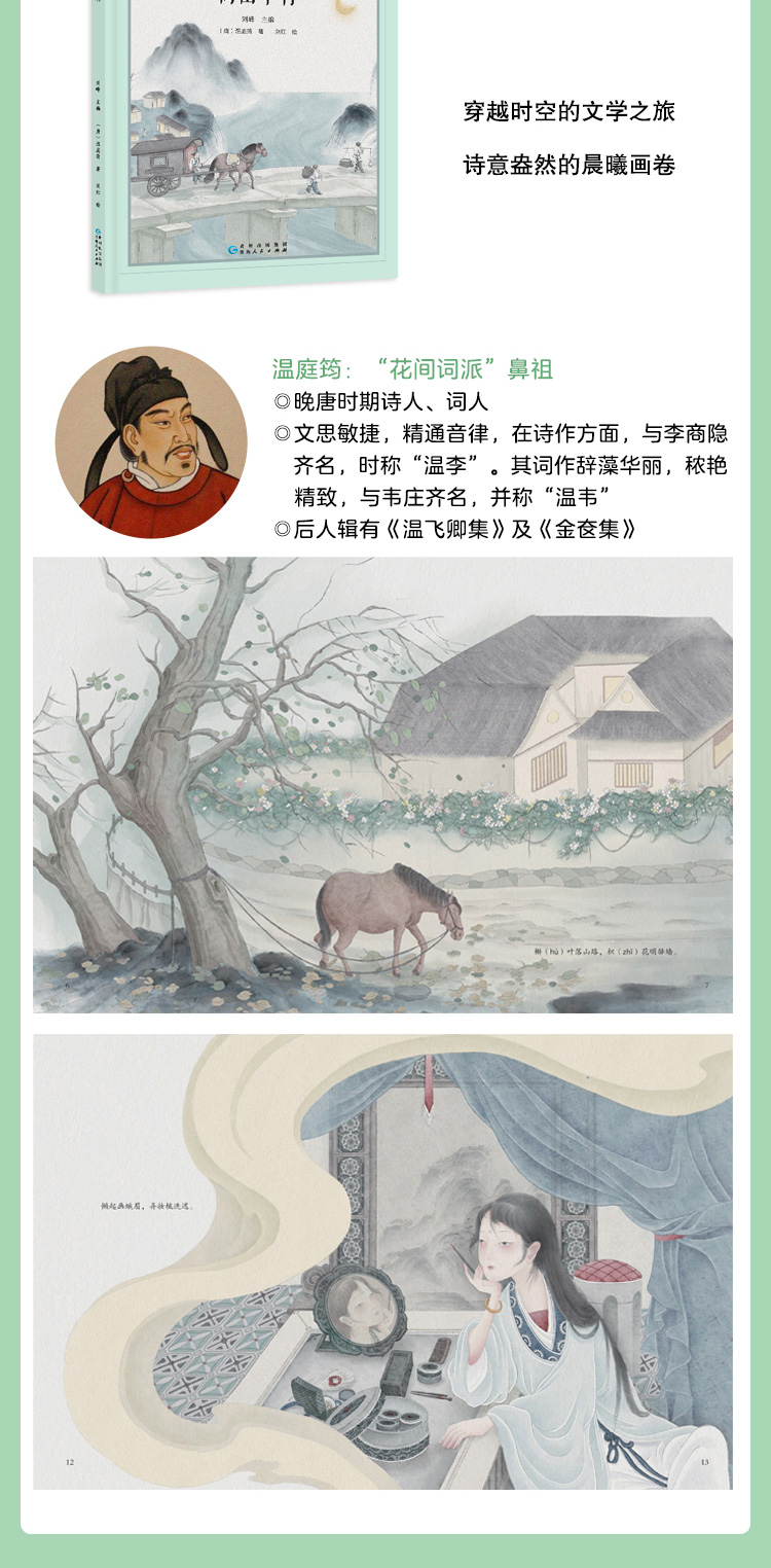 温庭筠曾在唐朝末年离开繁华的长安,踏上前往襄阳的旅程。途中,他经过商山,清晨早行时,被眼前的景色深深打动,于是写下了《商山早行》这首诗。诗中,他描绘了商山清晨的寂静与清冷:茅店外的鸡鸣与残月,板桥上的白霜与人迹,还有槲叶飘落的驿路,凫雁满塘的池塘,都显得那么孤寂而美丽。这些景象不仅展现了商山的自然之美,更寄托了温庭筠深深的思乡之情,让读者仿佛能感受到他旅途中那份淡淡的哀愁与无奈。